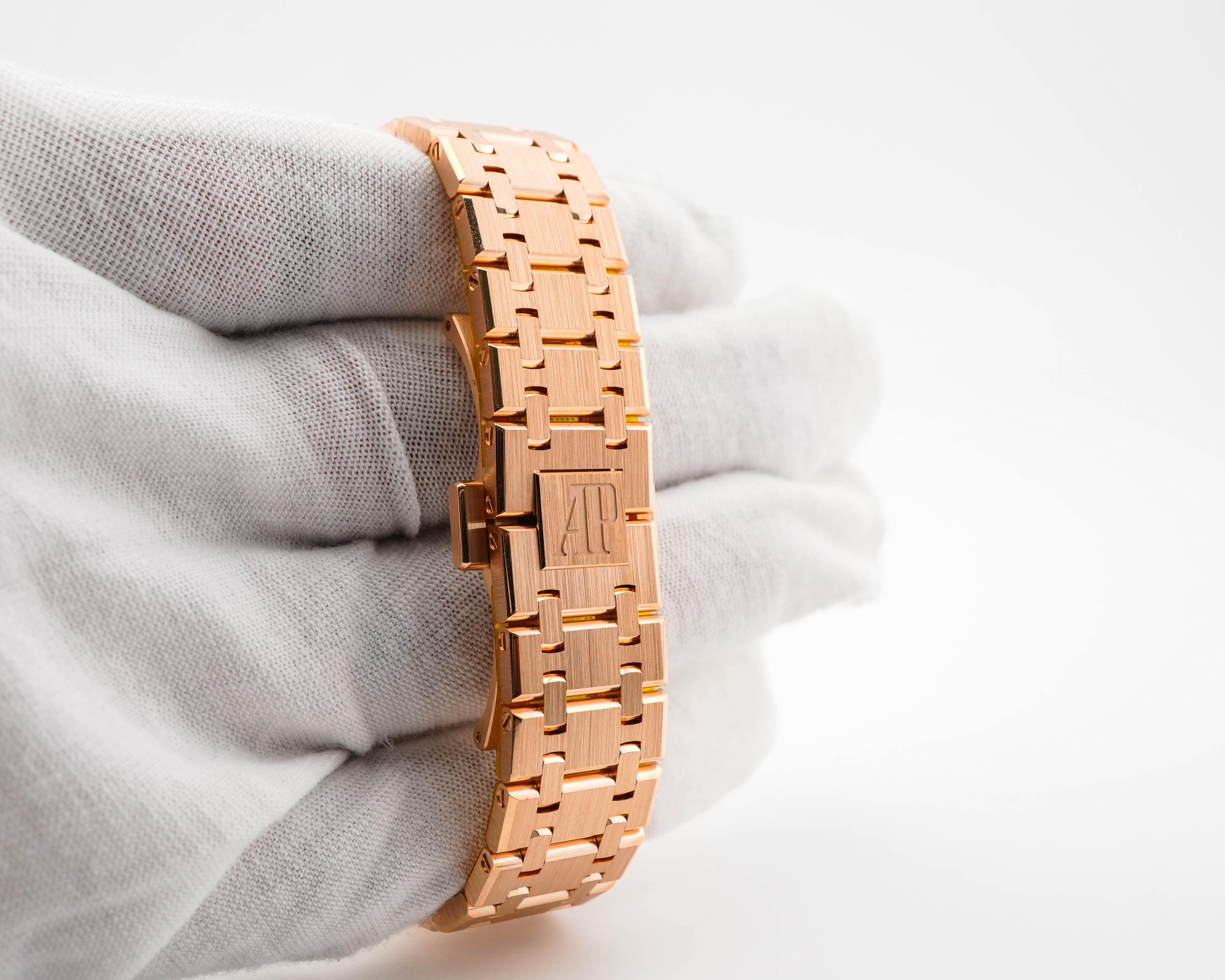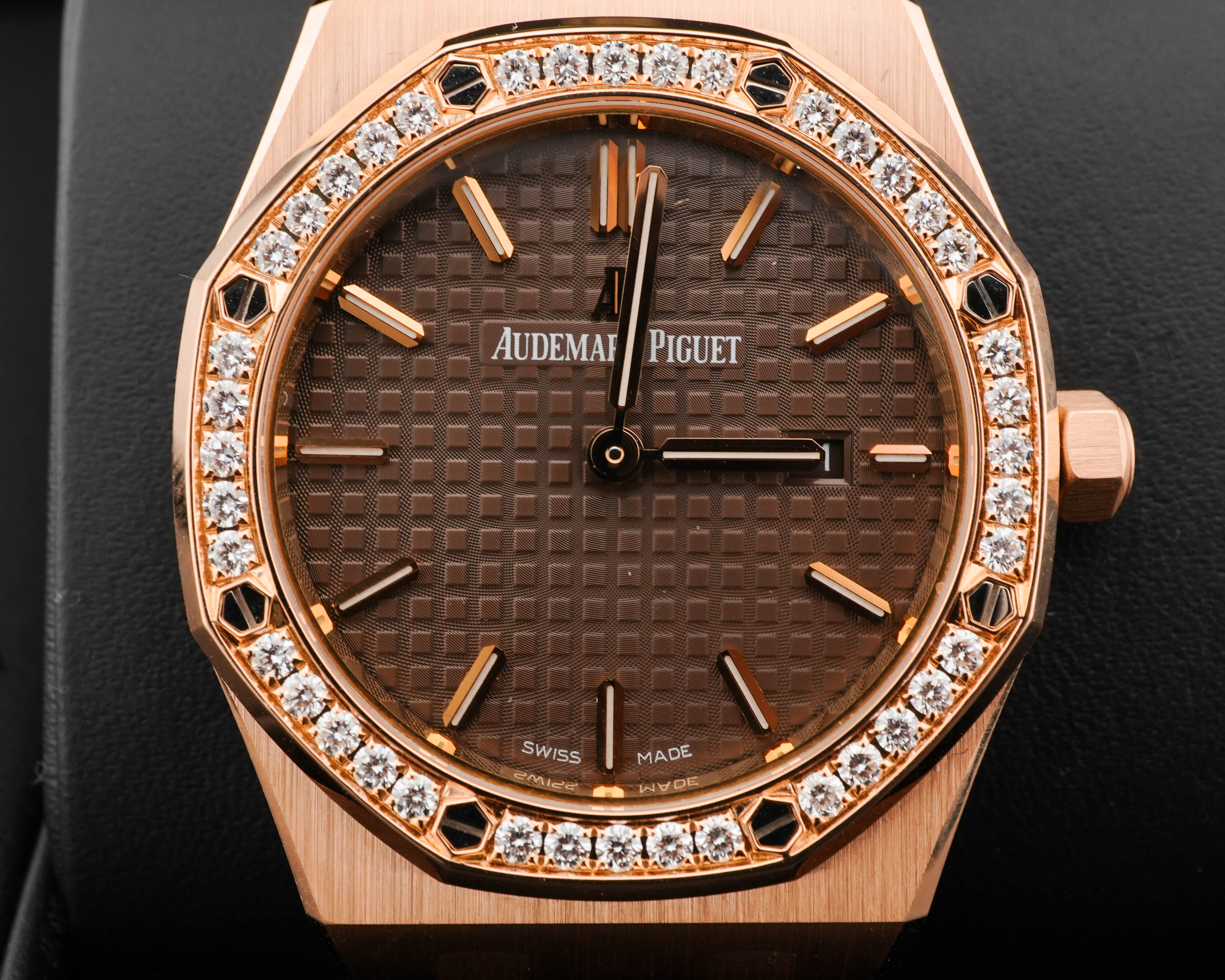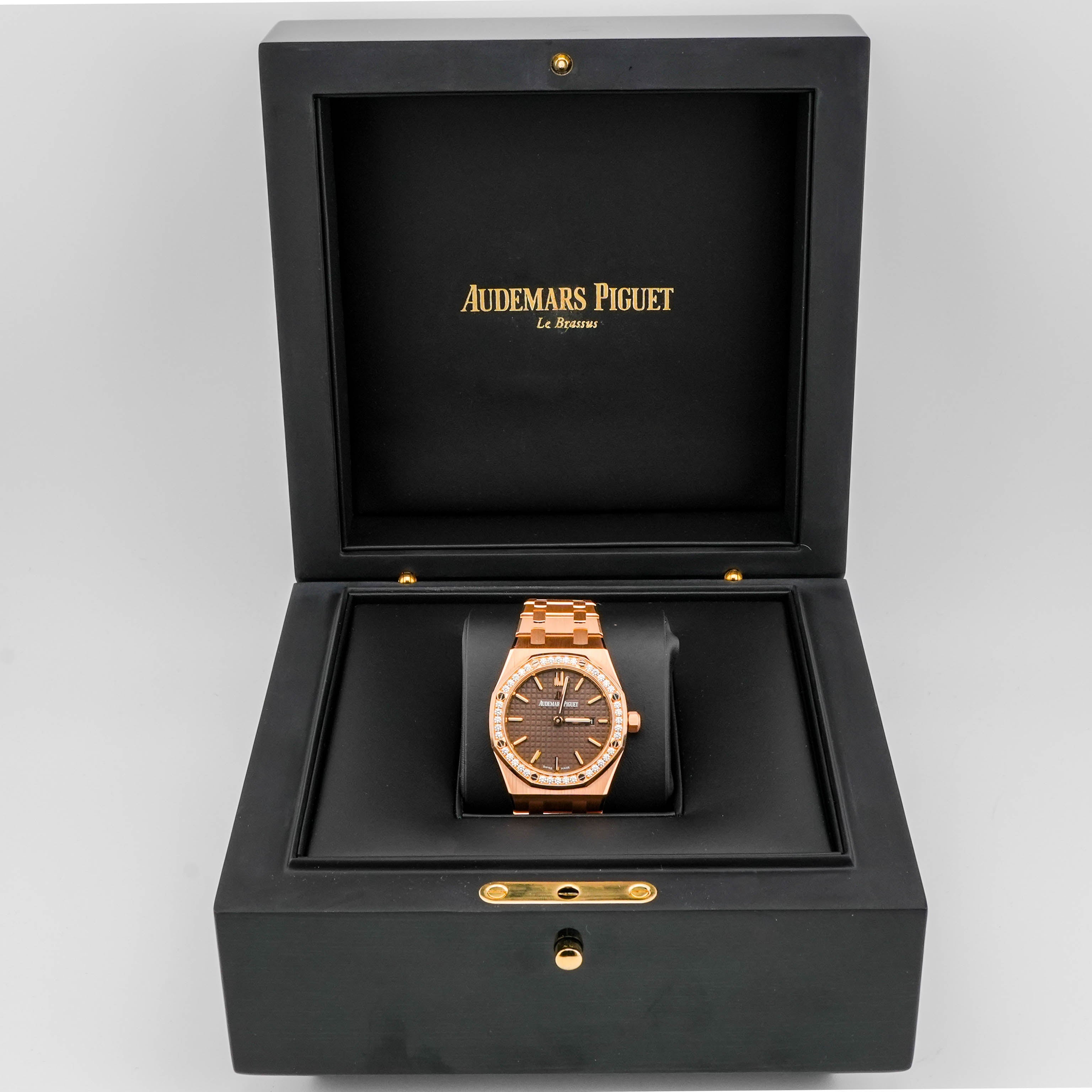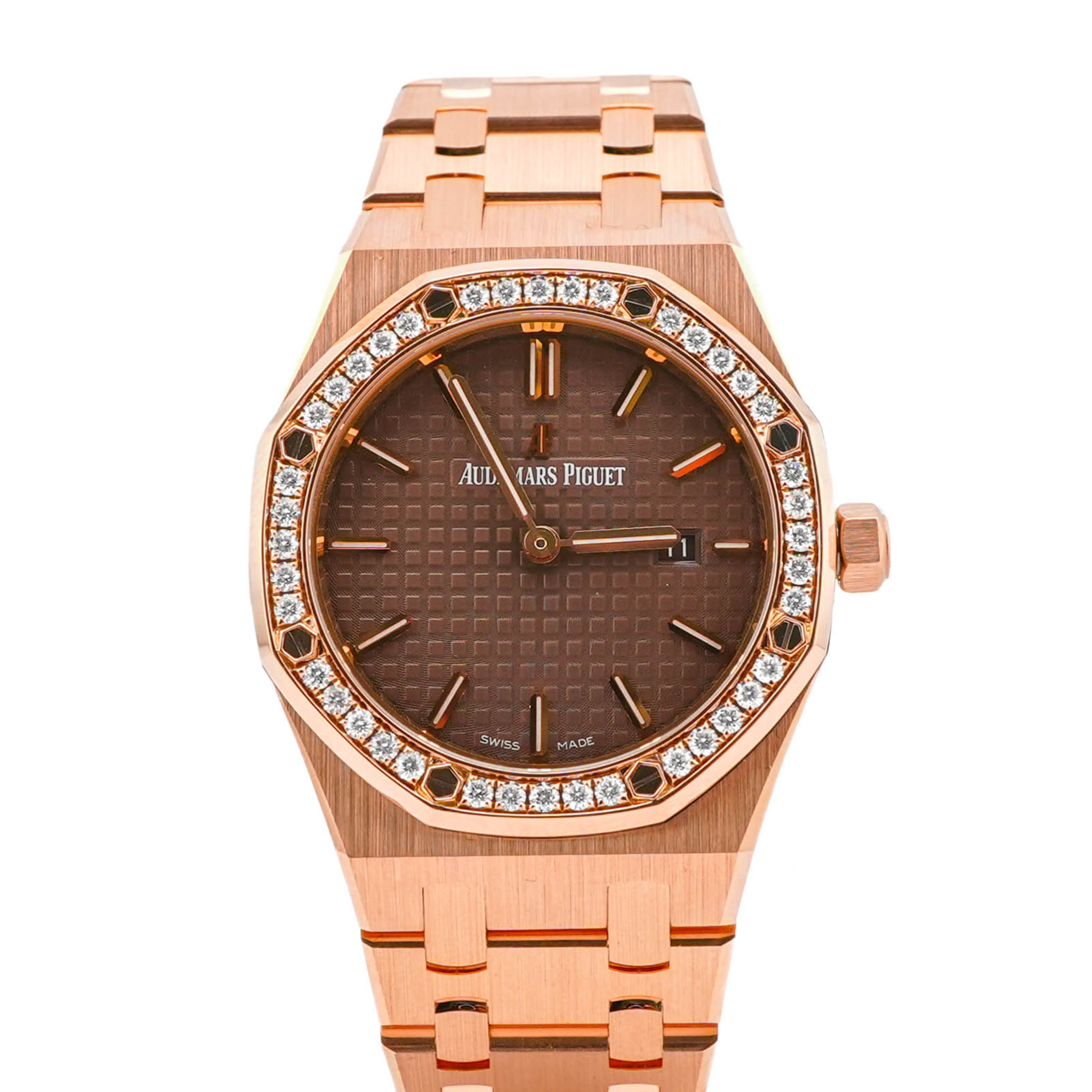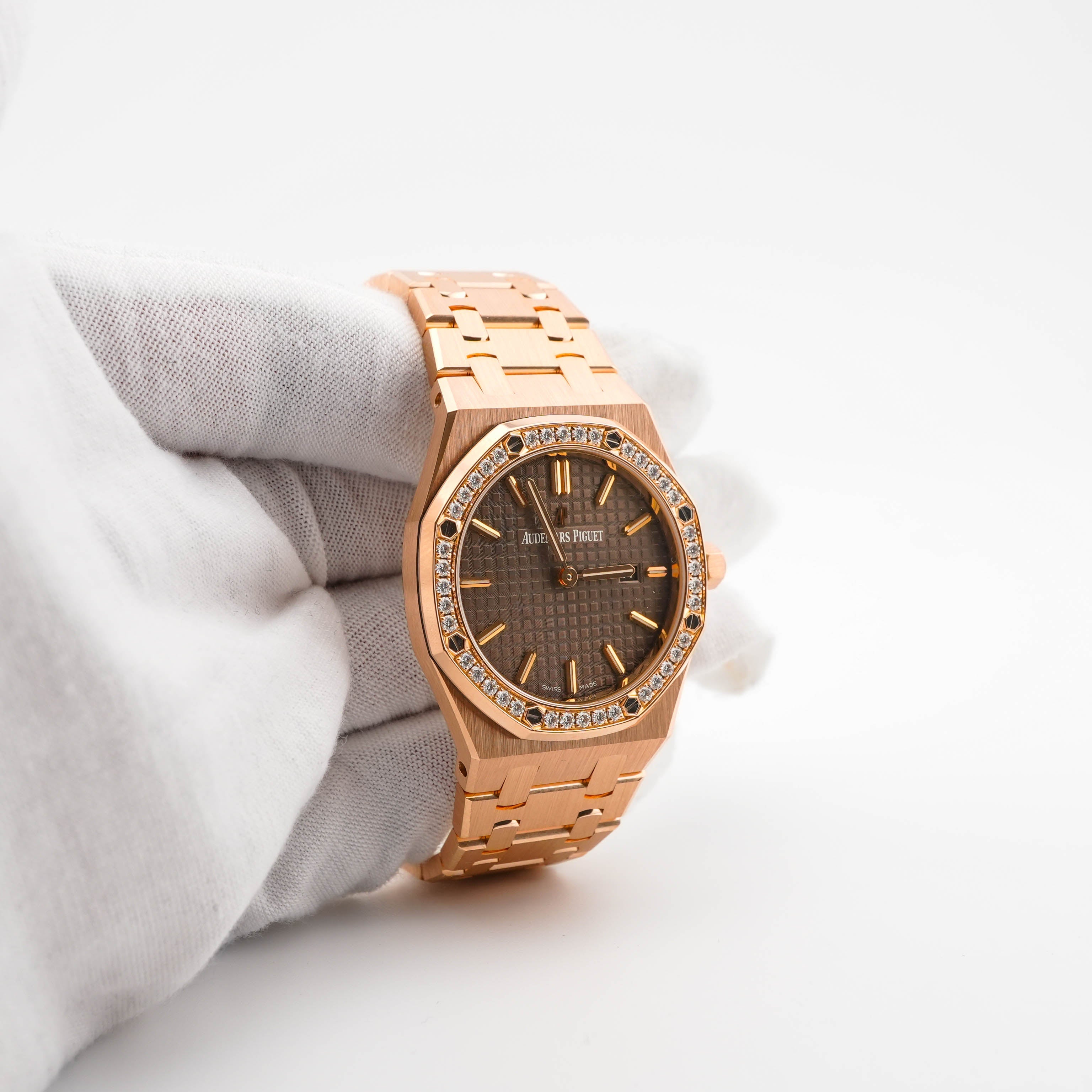 Audemars Piguet 67651OR.ZZ.D080CA.01 Royal Oak 33 mm 18K Rose Gold Diamond Bezel Brown Dial Box 2016
