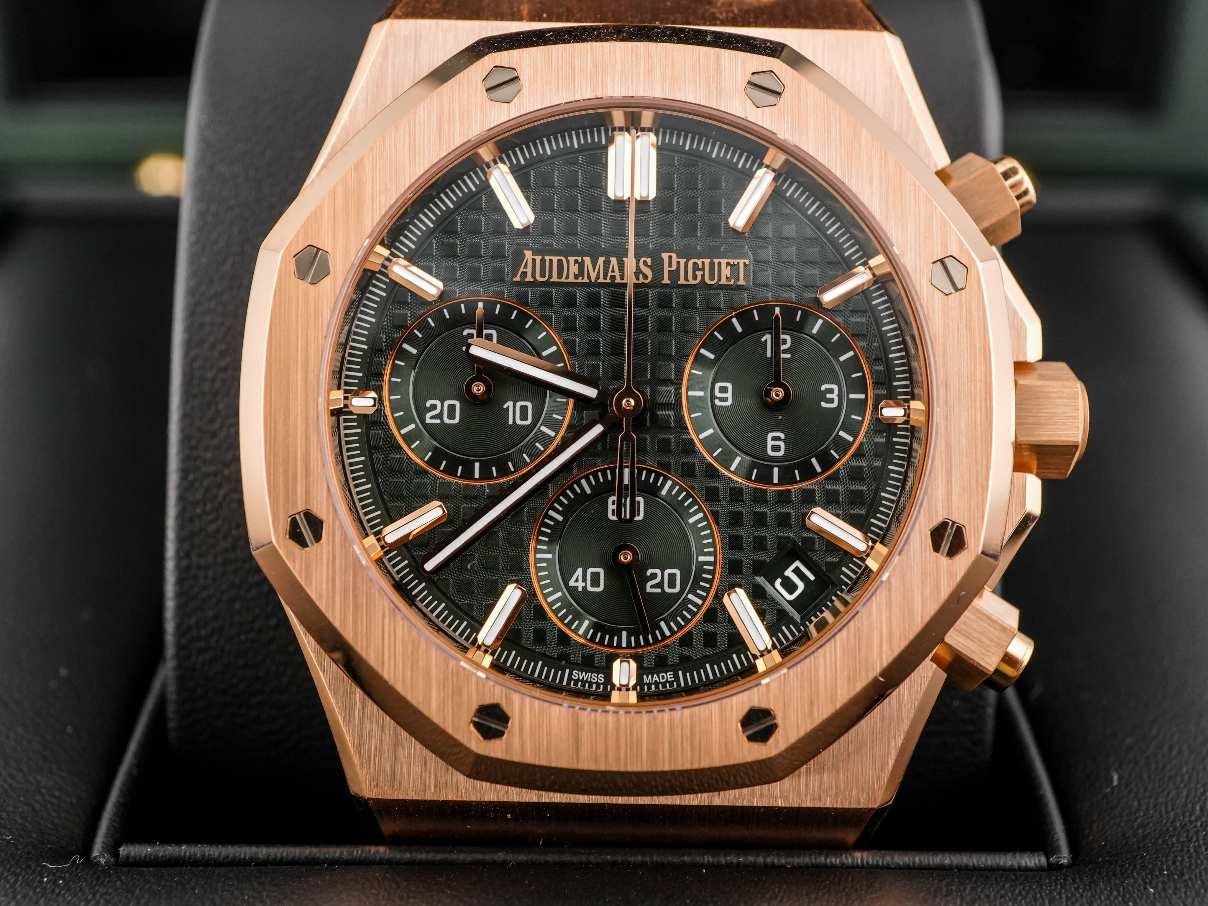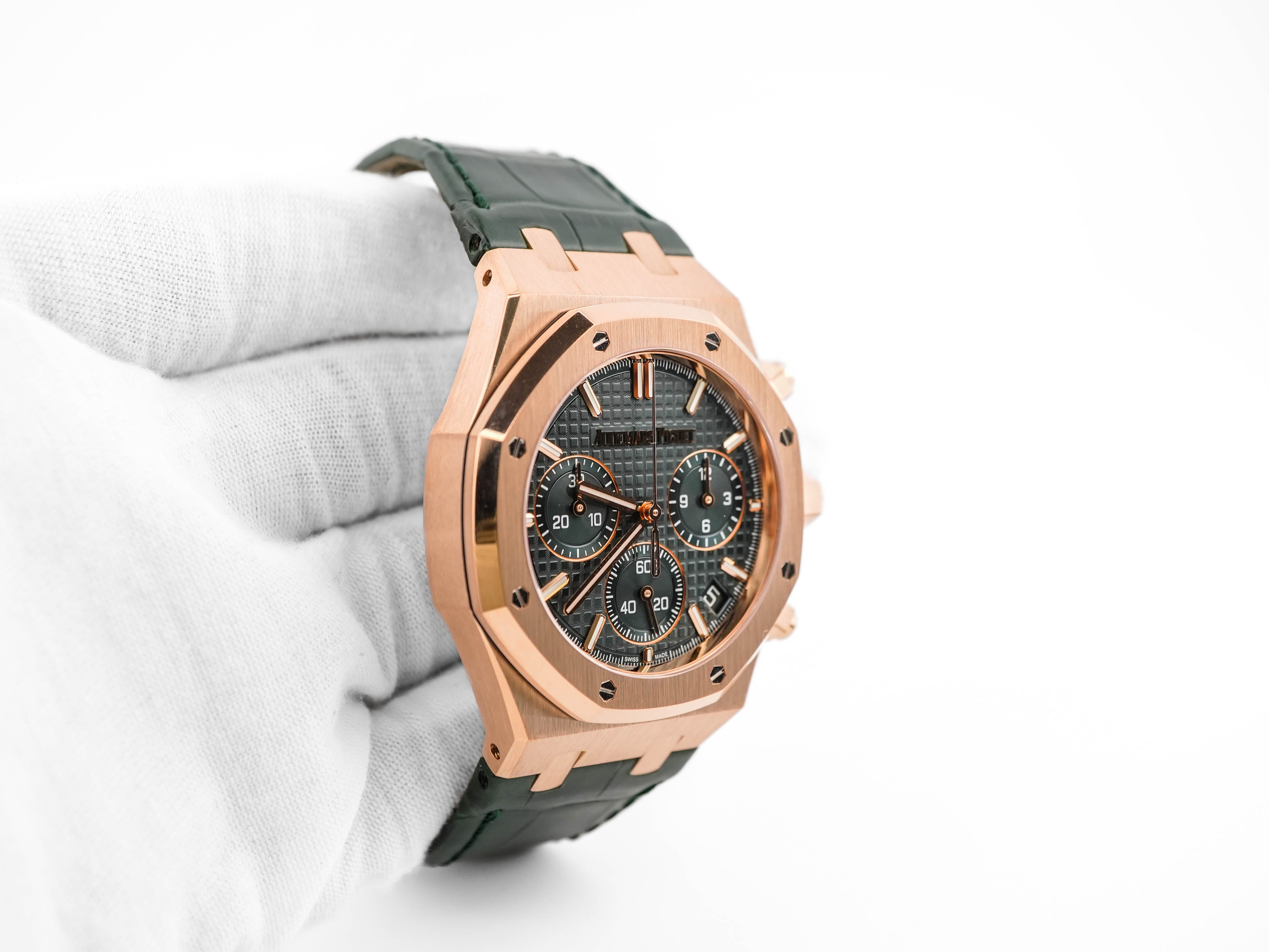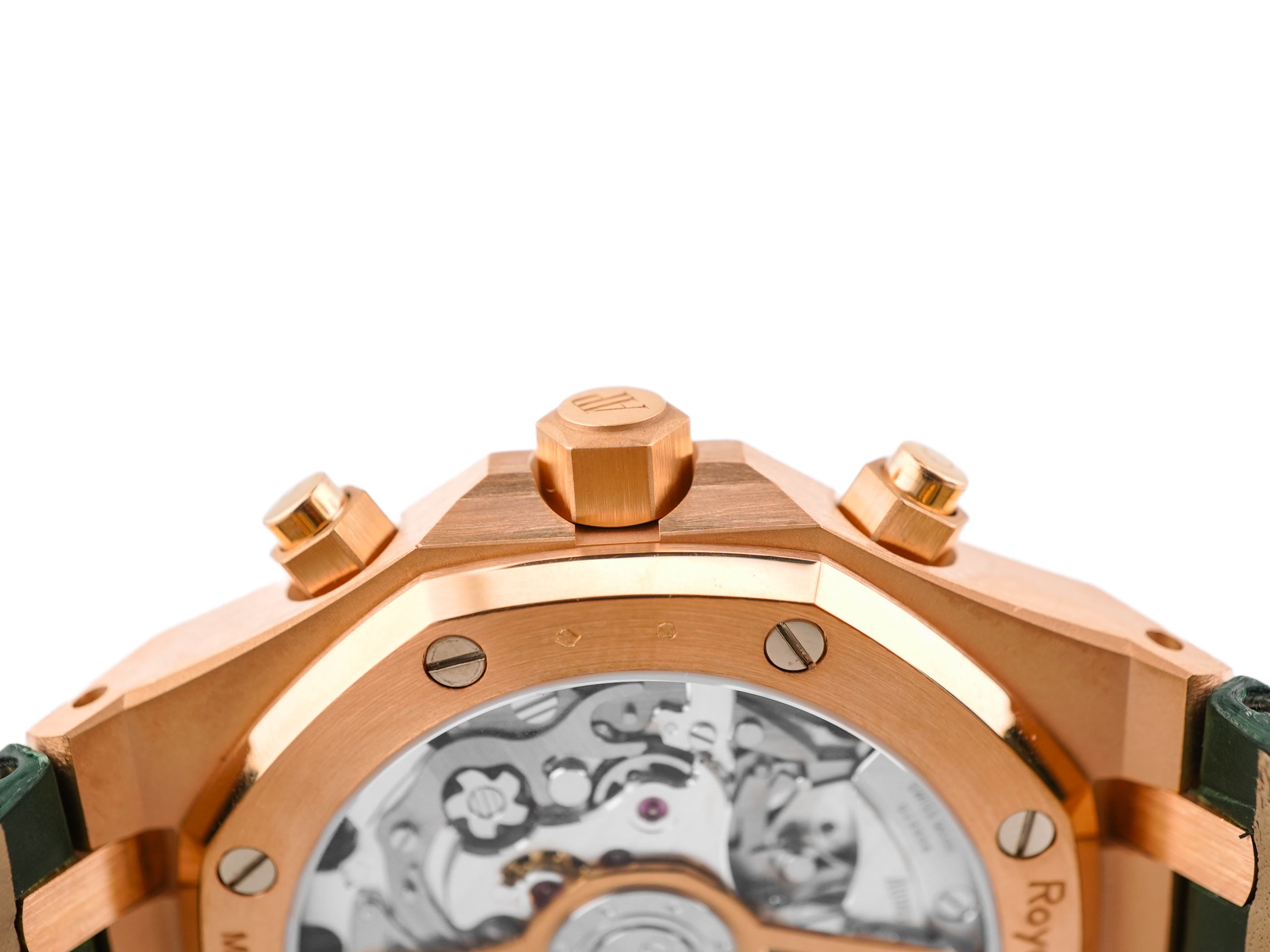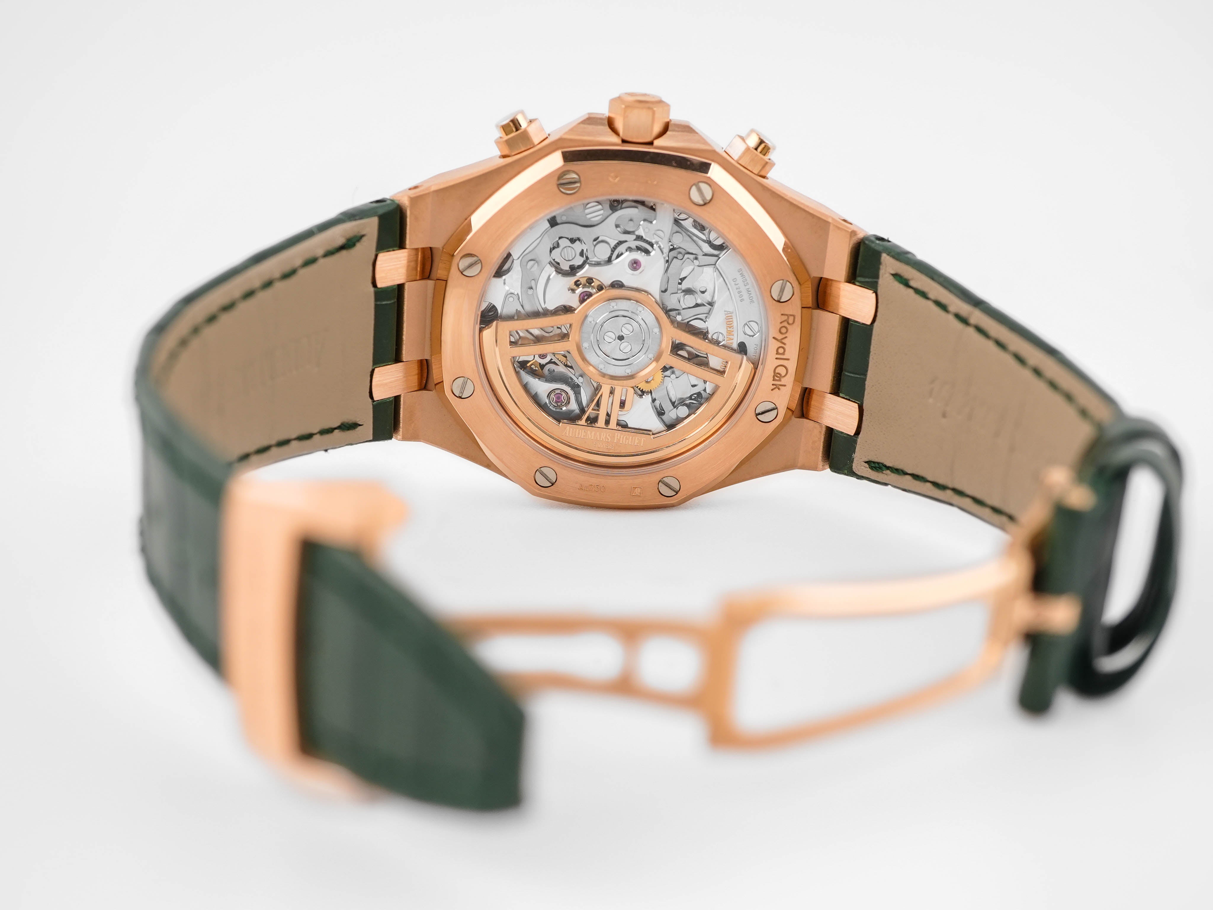 Audemars Piguet Royal Oak Chronograph 18K Rose Gold Green Dial Green Leather Strap Box and Papers 2024