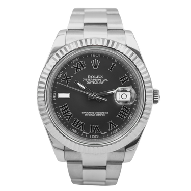 Rolex 116334 Datejust II 41 mm Fluted Bezel Charcoal Dial Oyster Bracelet Box and Papers 2015
