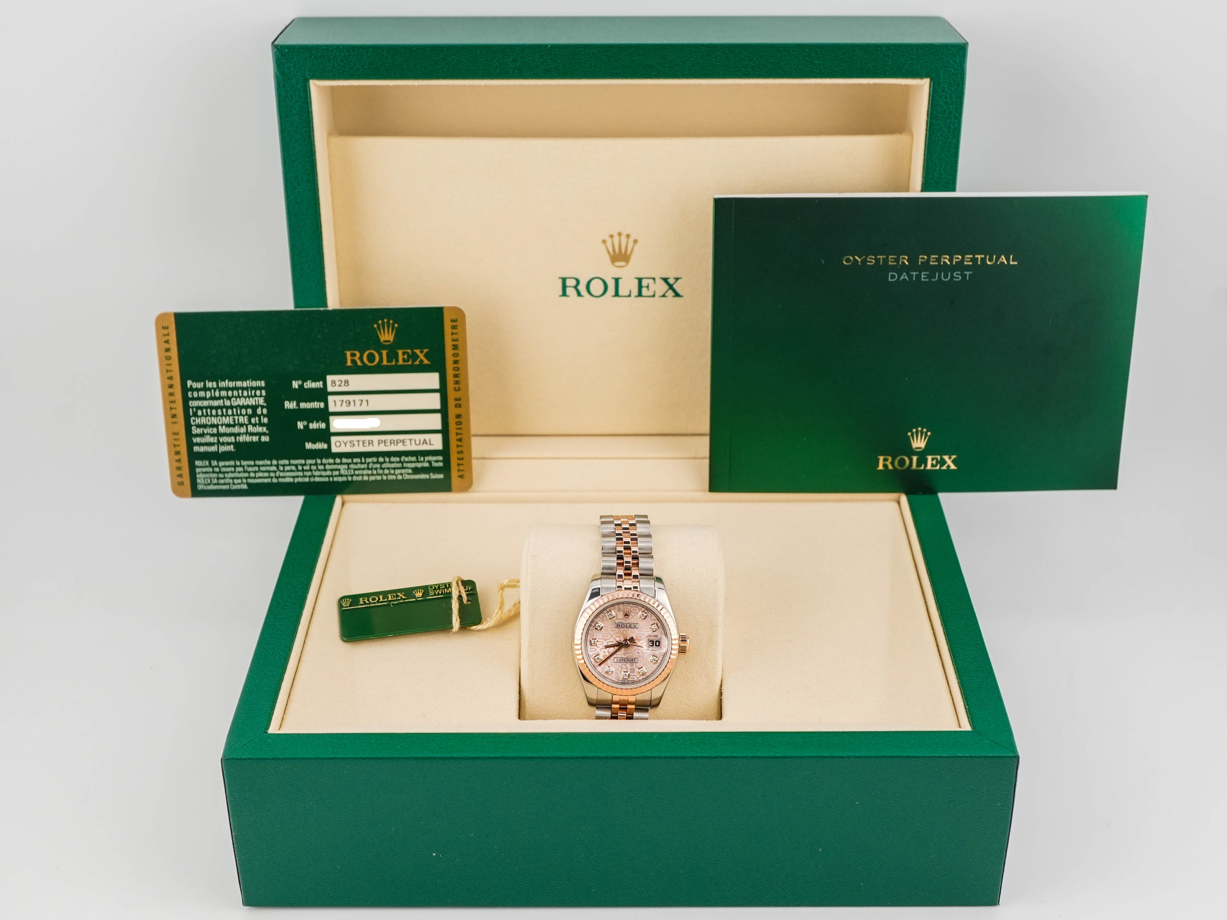 Rolex 179171 Lady-Datejust 26 mm Pink Jubilee Diamond Dial Jubilee Bracelet Box and Papers 2009