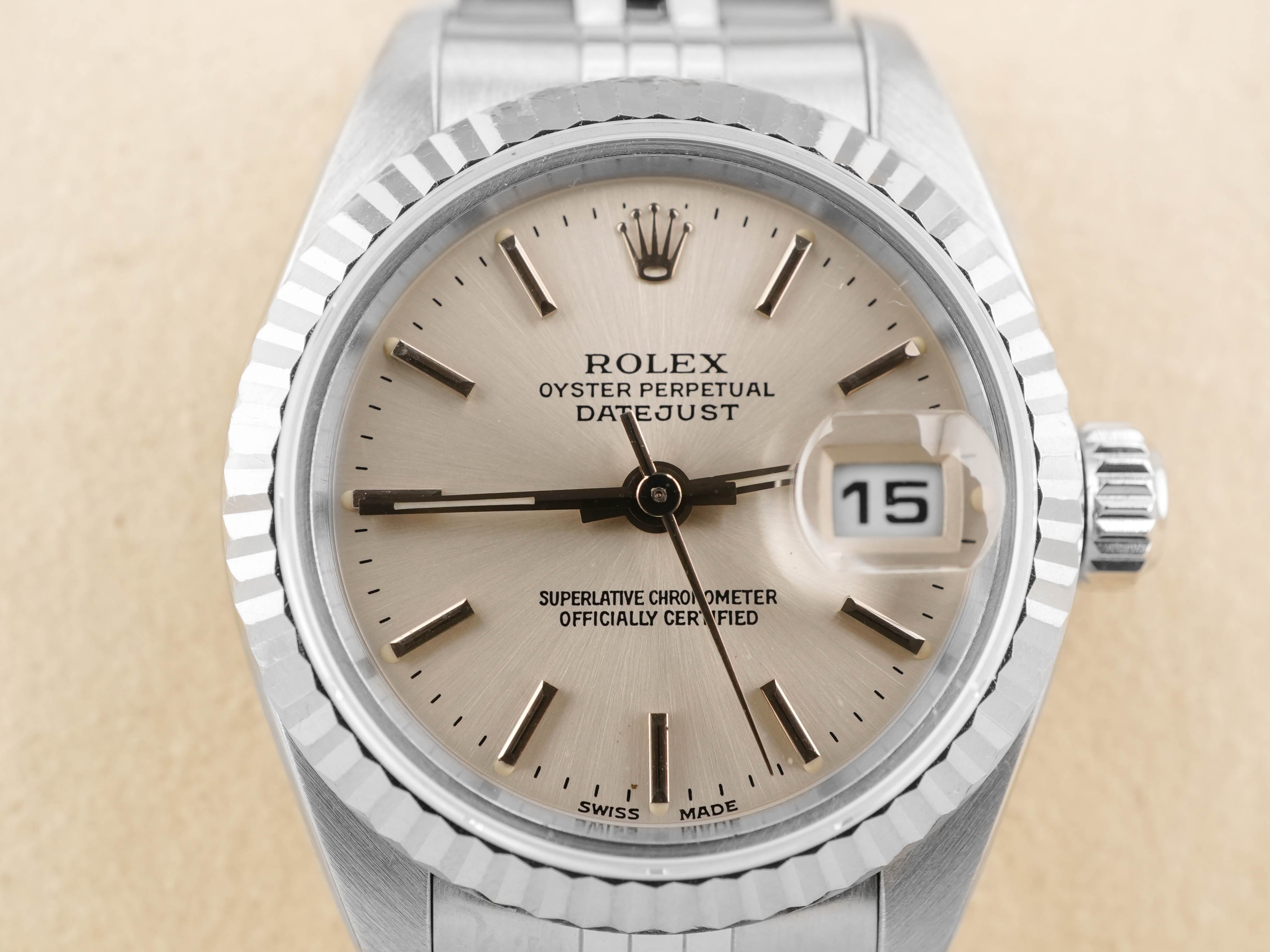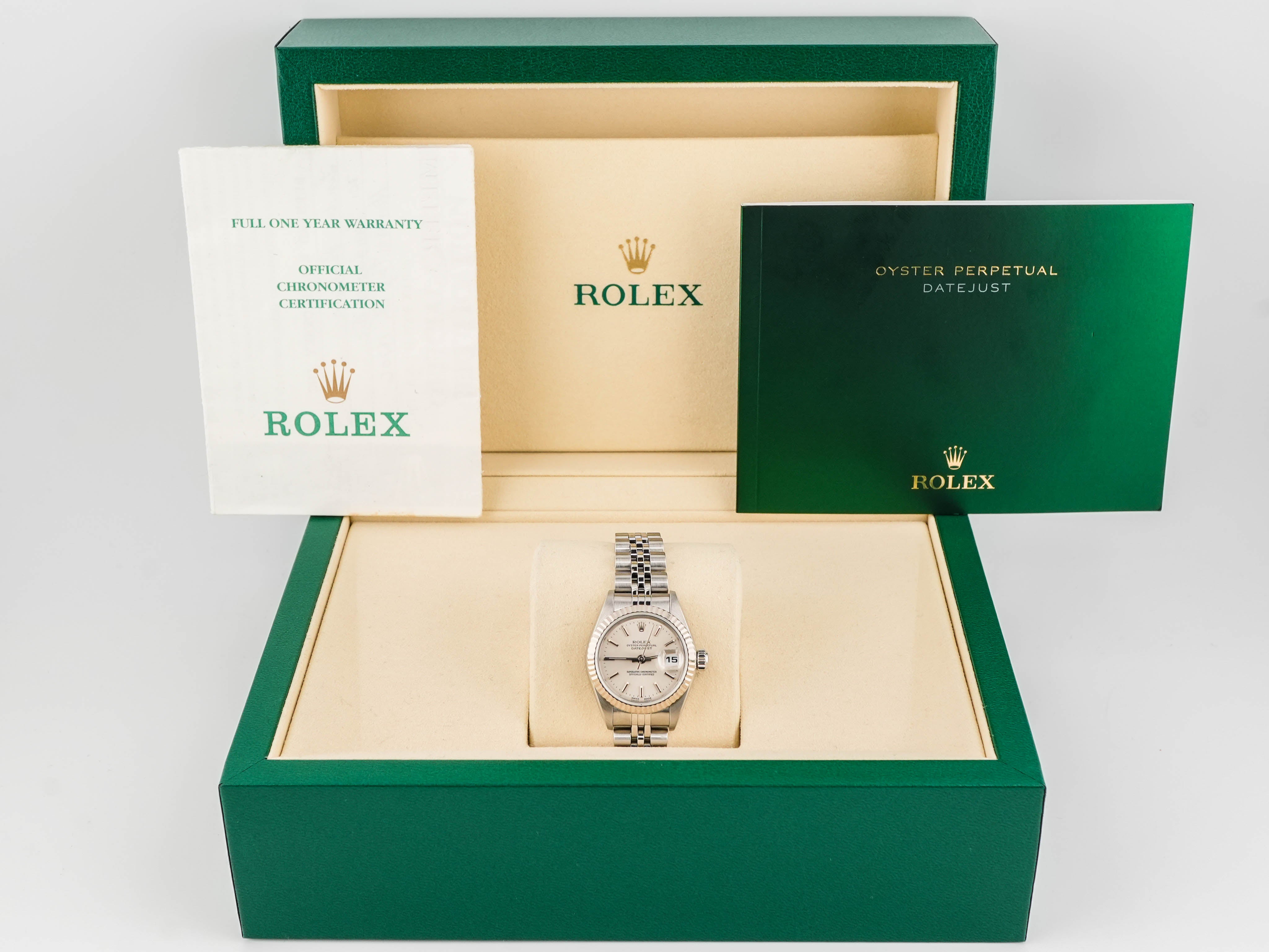Rolex 79174 Lady-Datejust 26 mm Fluted Bezel Silver Dial Jubilee Bracelet Box and Papers 2001
