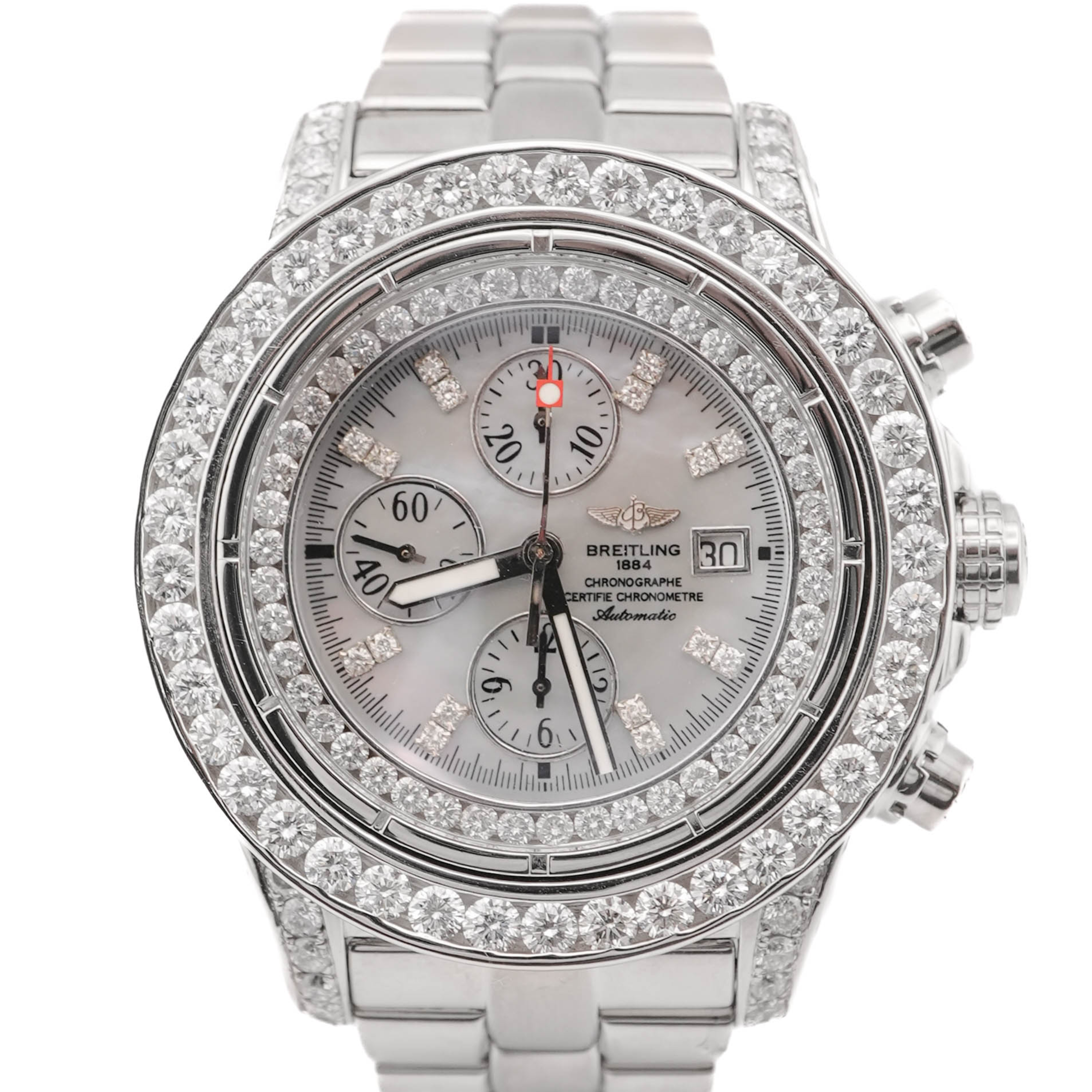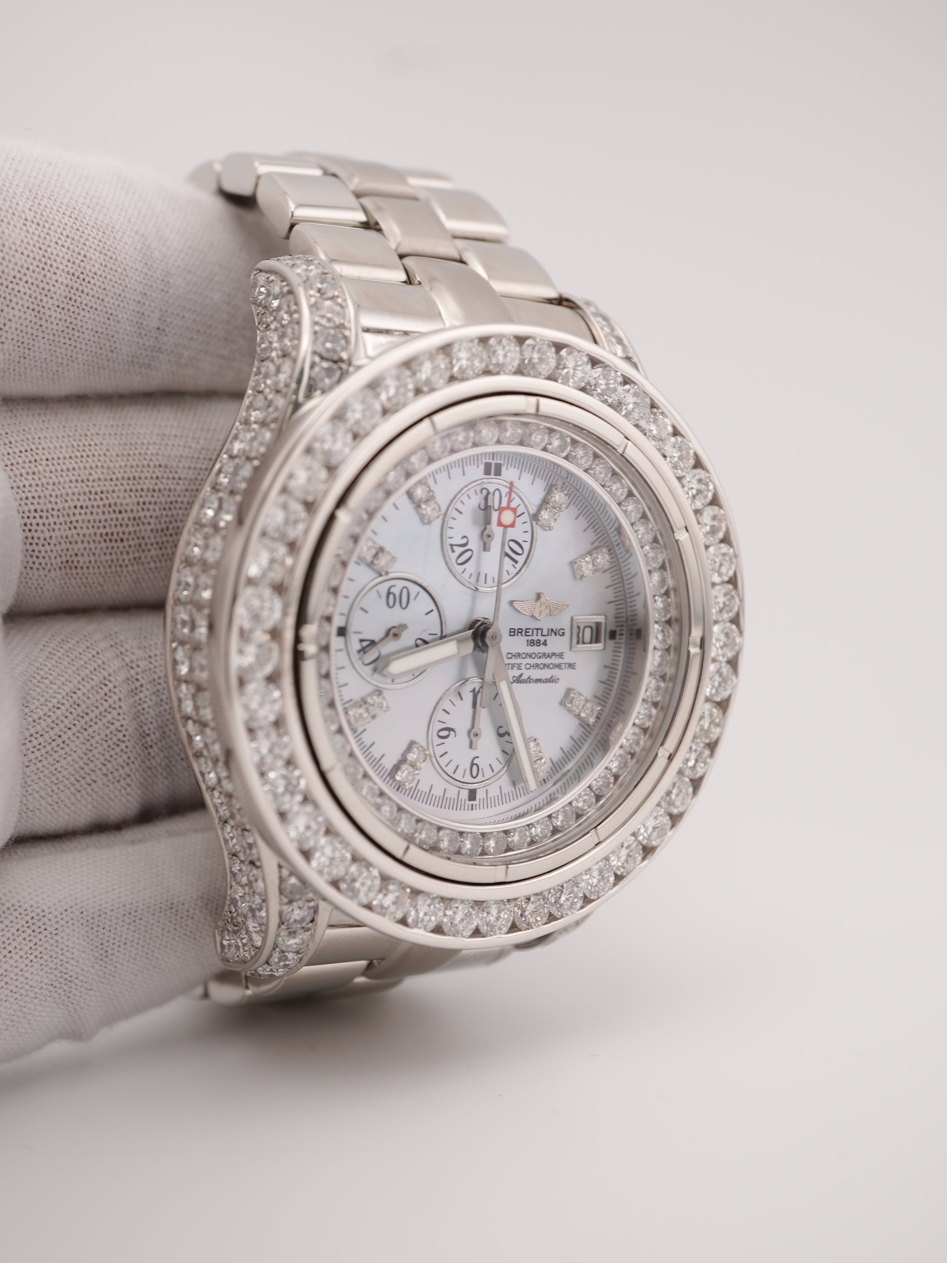 Breitling Super Avenger Chronograph 48 mm Custom Diamond Bezel Grey MOP Diamond Dial 2008