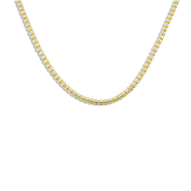 Elevate your style with our 14K Ice Link Chain 3.5 mm. Made with the finest quality 14K gold, this chain exudes elegance and luxury. Its 3.5 mm width adds a subtle yet eye-catching detail to any outfit. Upgrade your look and make a statement with this timeless and versatile accessory.