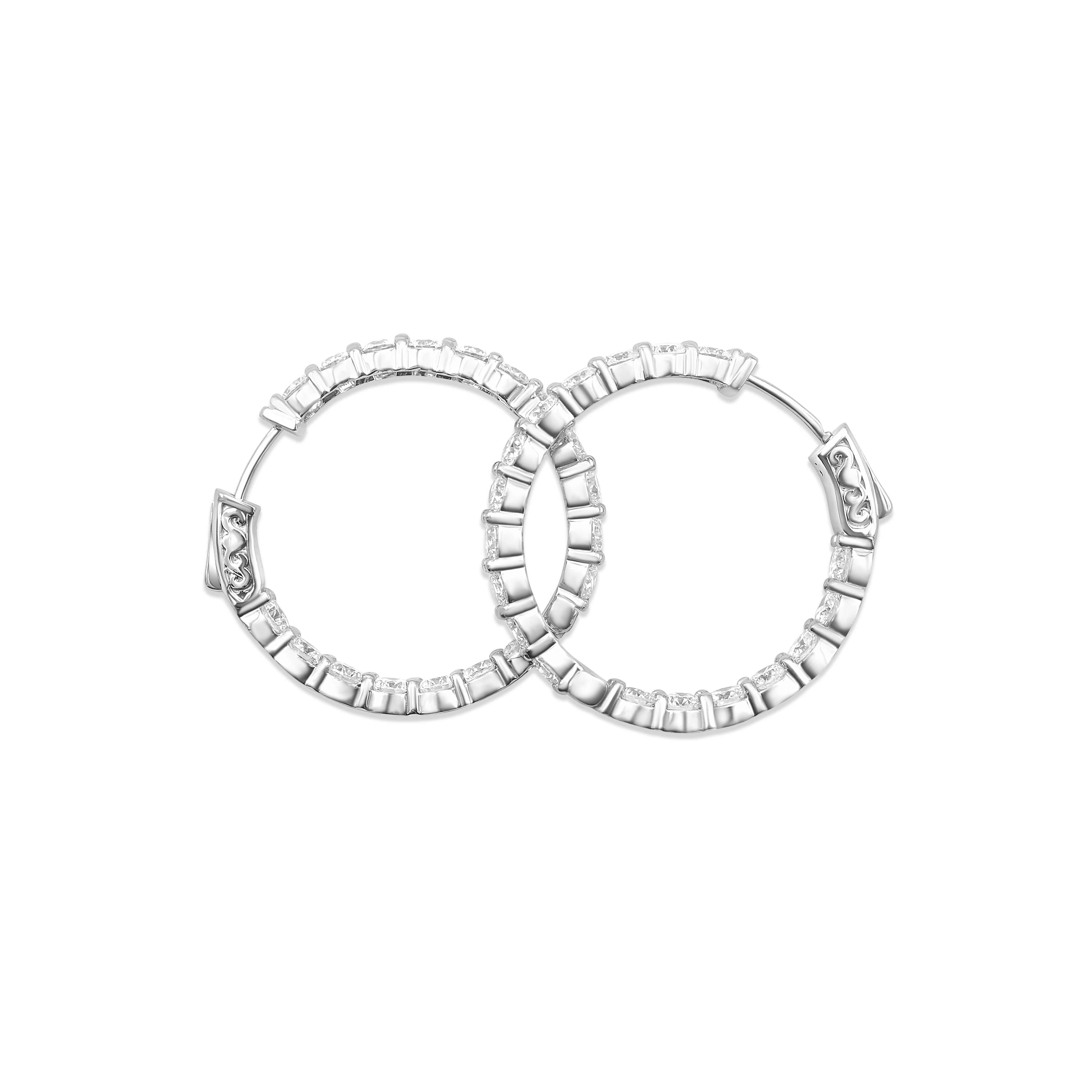 14K White Gold Diamond Hoop Earrings 5.19 CT
