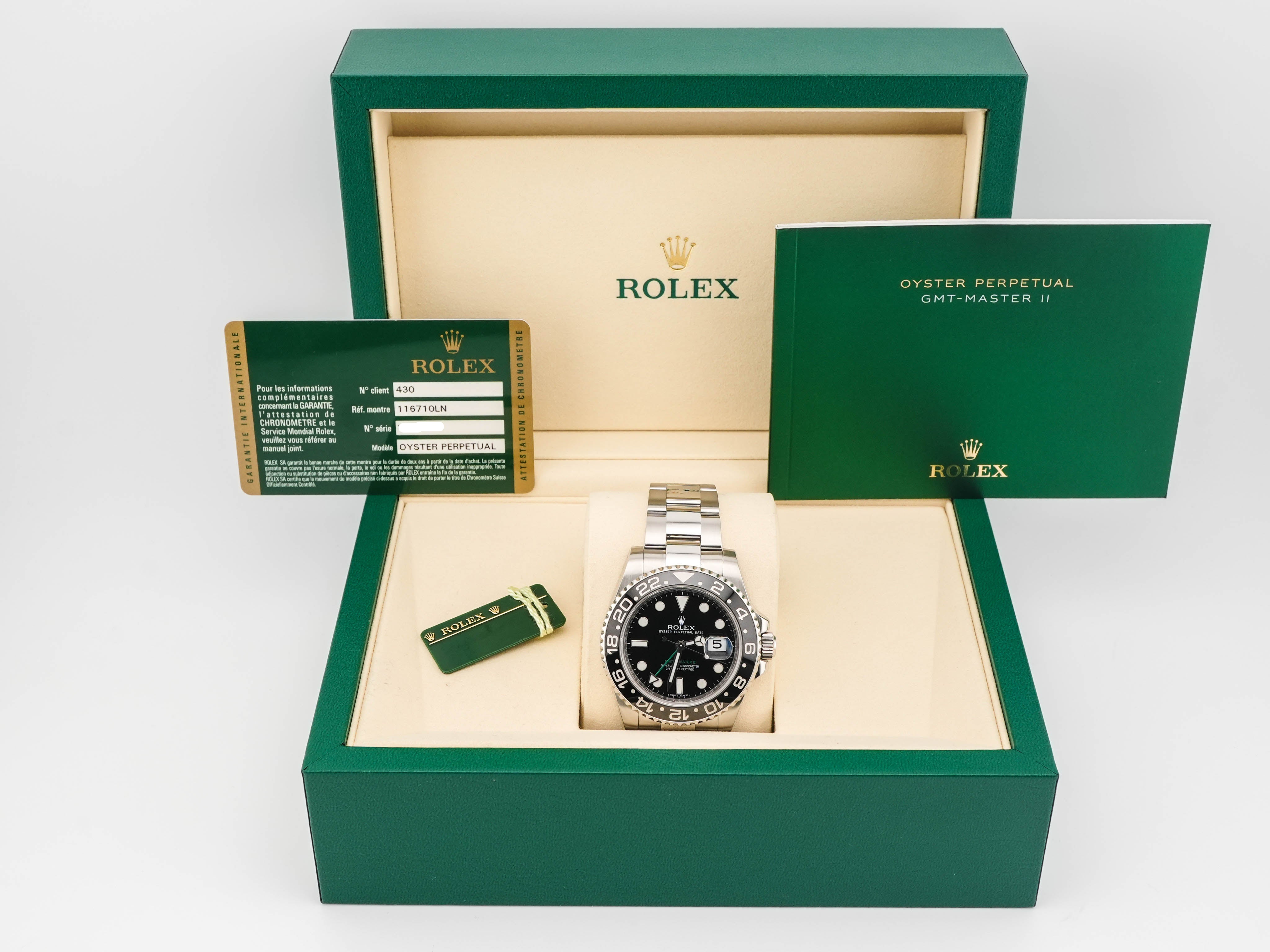 Rolex 116710LN GMT-Master II 40 mm Ceramic Bezel Black Dial Oyster Bracelet Box and Papers 2010