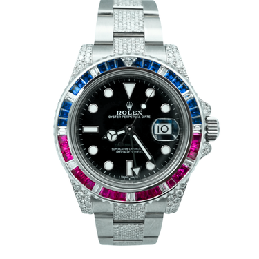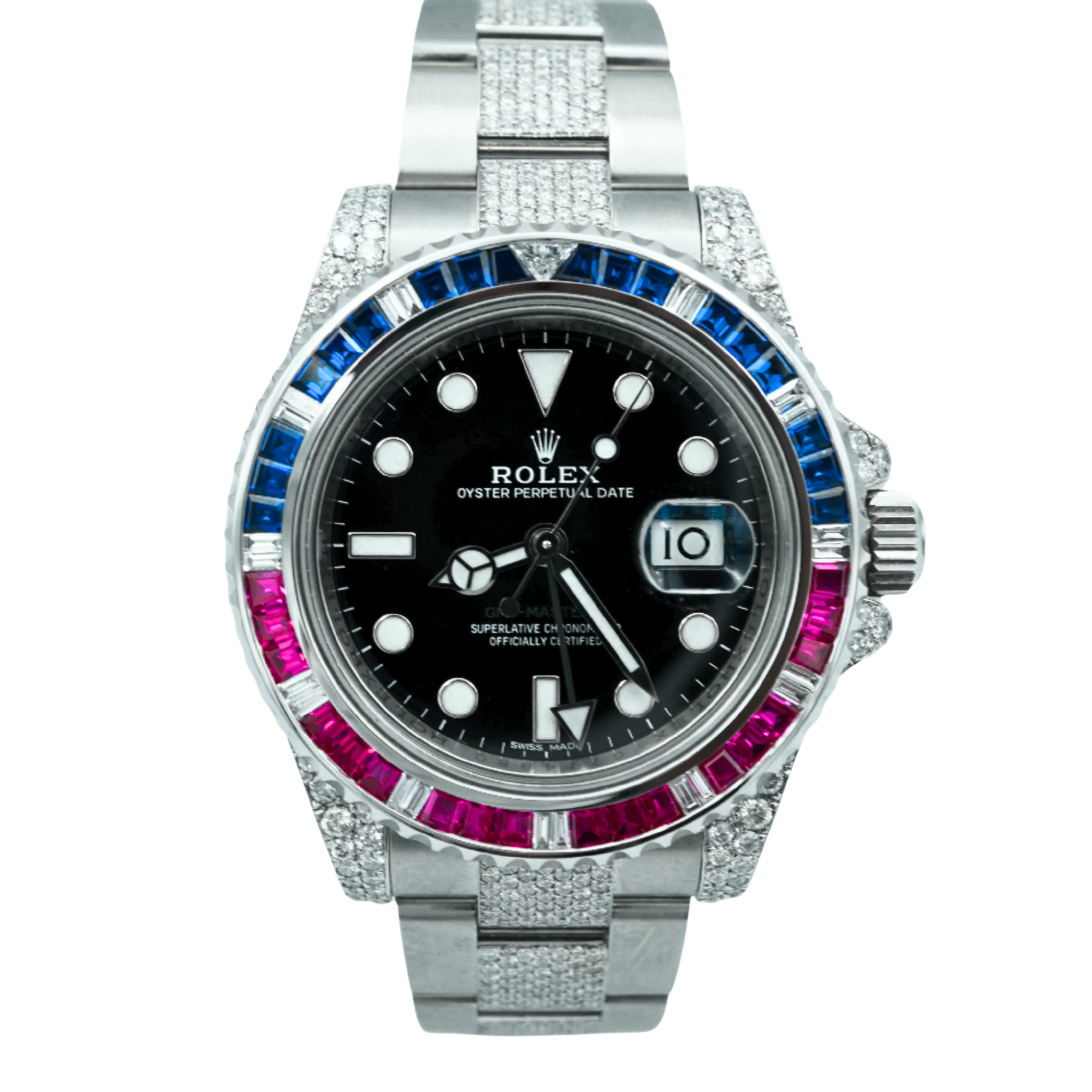 Rolex 116710LN GMT-Master II 40 mm Custom Diamond Bezel Black Dial Oyster Pave Bracelet Complete Set 2017