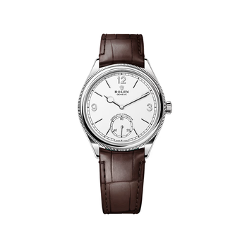 Current production Rolex 1908 models reflect the brand’s dedication to precision, heritage, and craftsmanship. Each reference features a slim 39 mm case, an elegant domed and fluted bezel, and a minimalist dial with Arabic numerals at 3, 9, and 12. The small seconds complication adds a traditional touch, while the exhibition caseback reveals the advanced caliber inside — a first for modern Rolex dress watches.