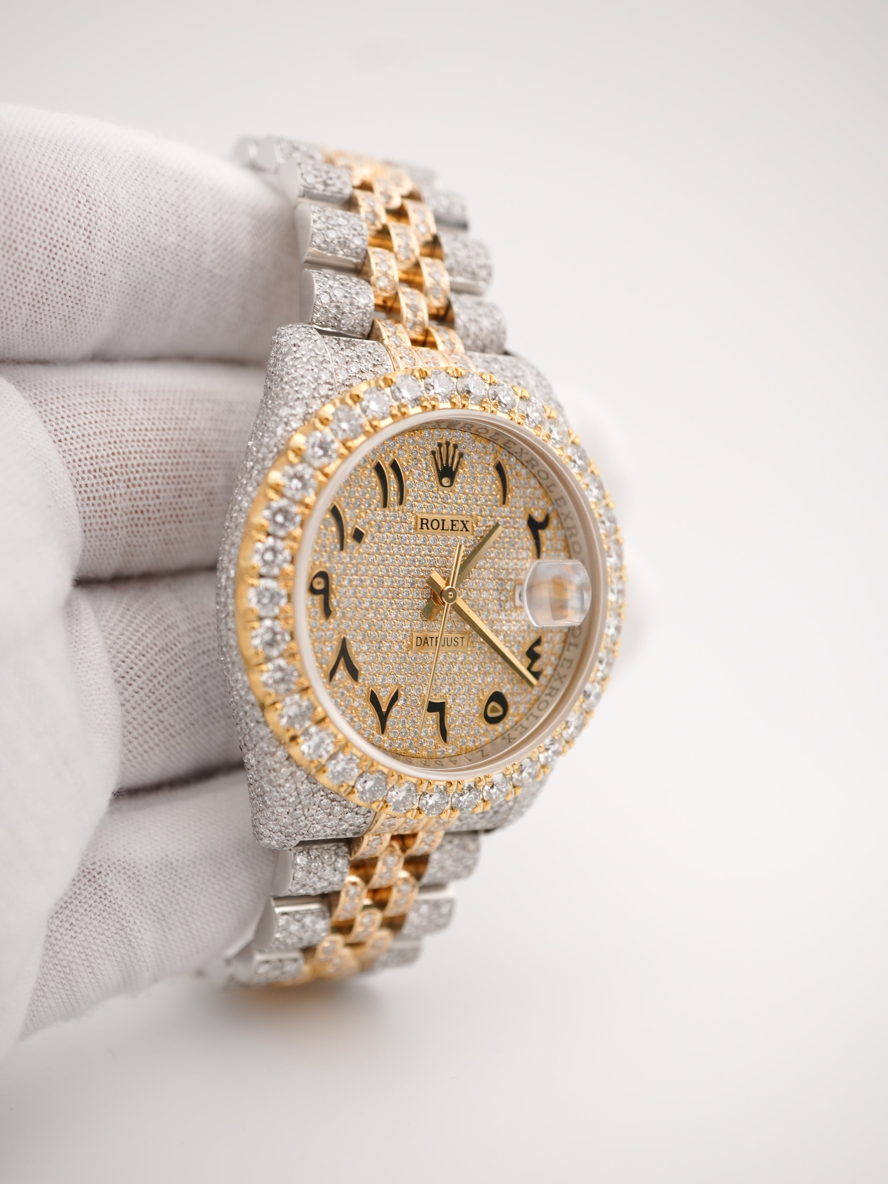 Rolex 116233 Datejust 36 mm Diamond Bezel Custom Pave Diamonds Arabic Dial Jubilee Bracelet 2008