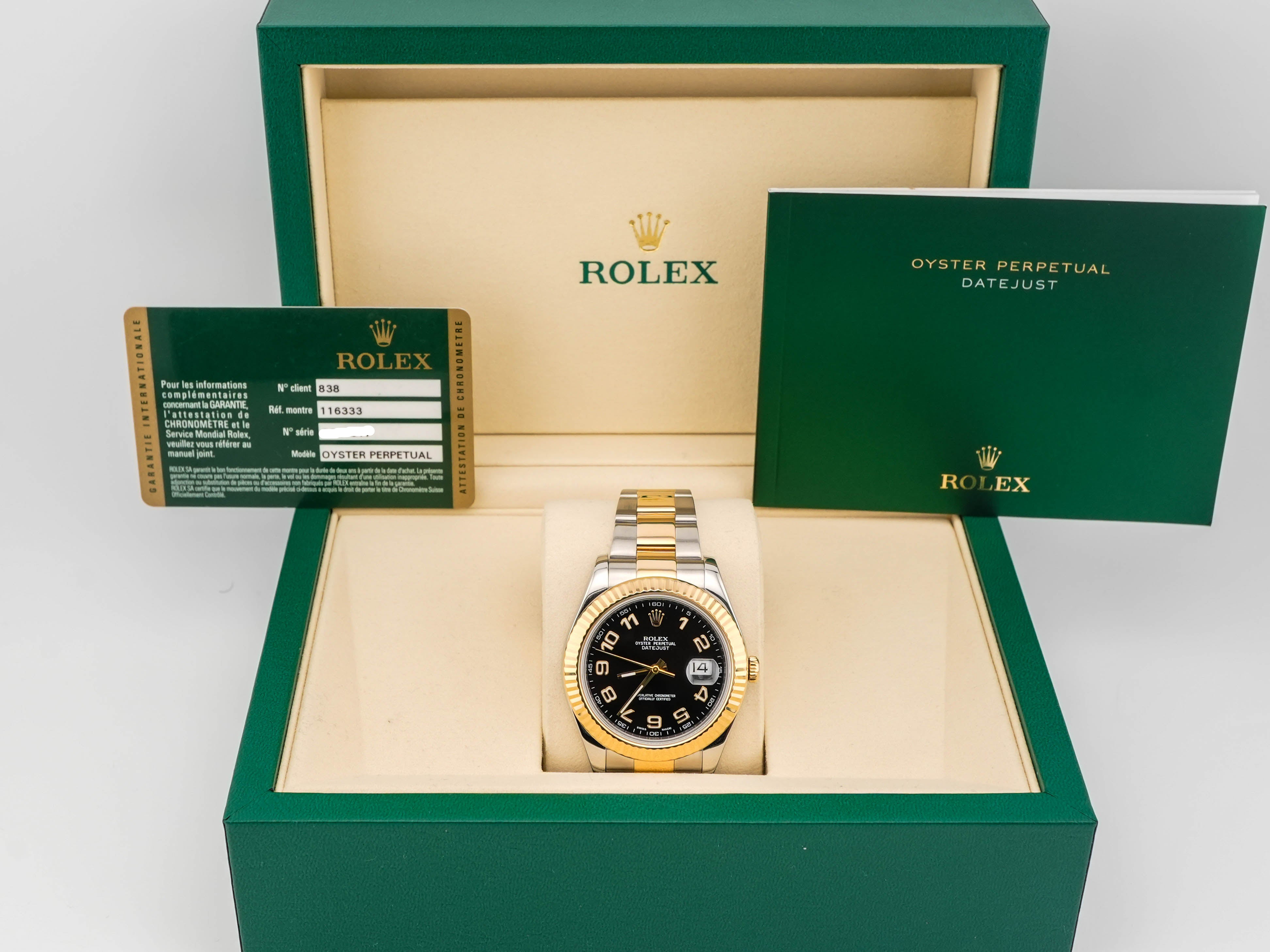 Rolex 116333 Datejust II 41mm Fluted Bezel Black Arabic Dial Oyster Bracelet Box and Papers 2013