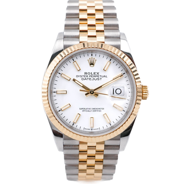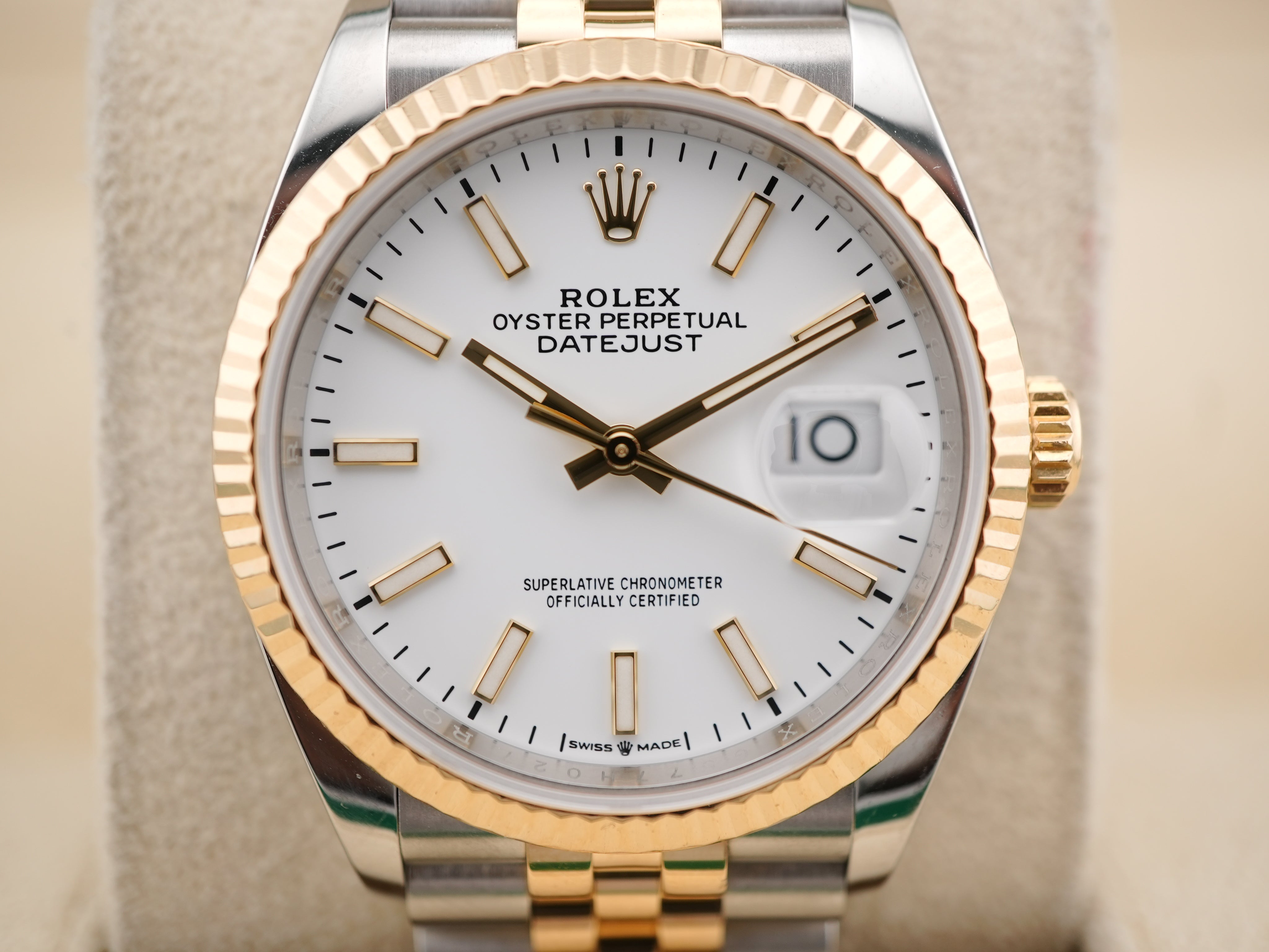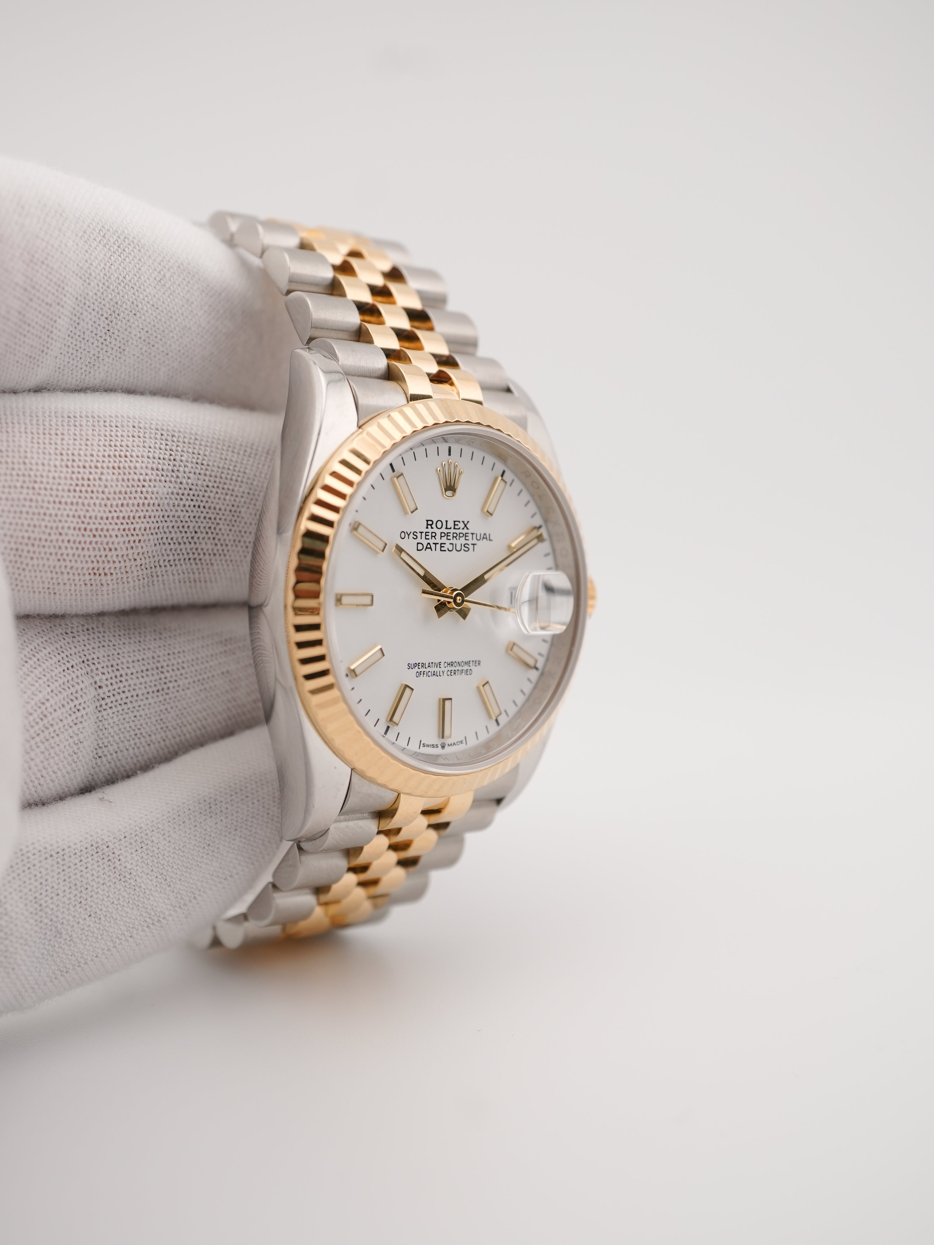 Rolex 126233 Datejust 36 mm Fluted Bezel 18K Yellow Gold White Index Dial Jubilee Bracelet 2017