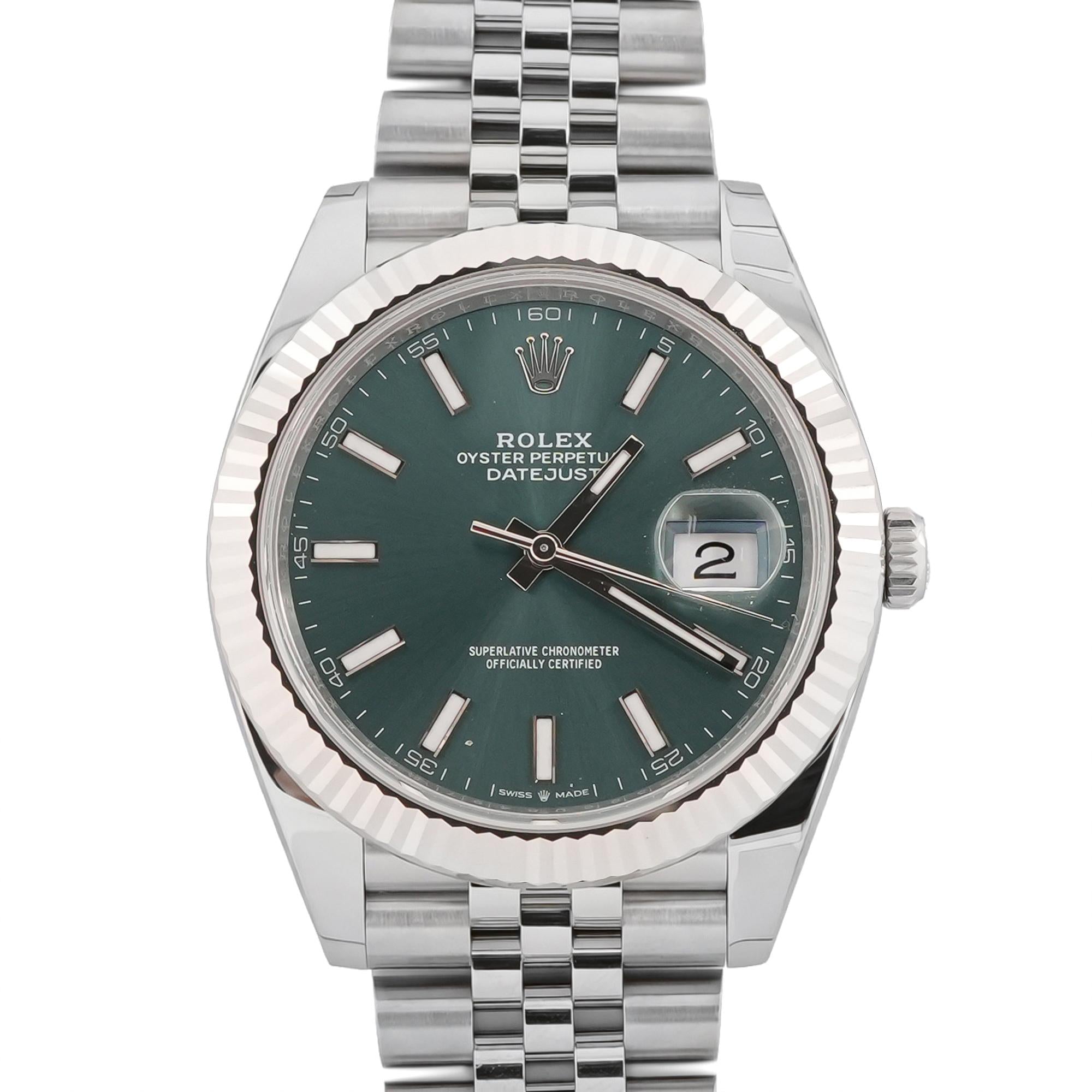 Rolex 126334 Datejust 41 mm 18k White Gold Mint Green Dial Jubilee Bracelet Box and Papers 2026