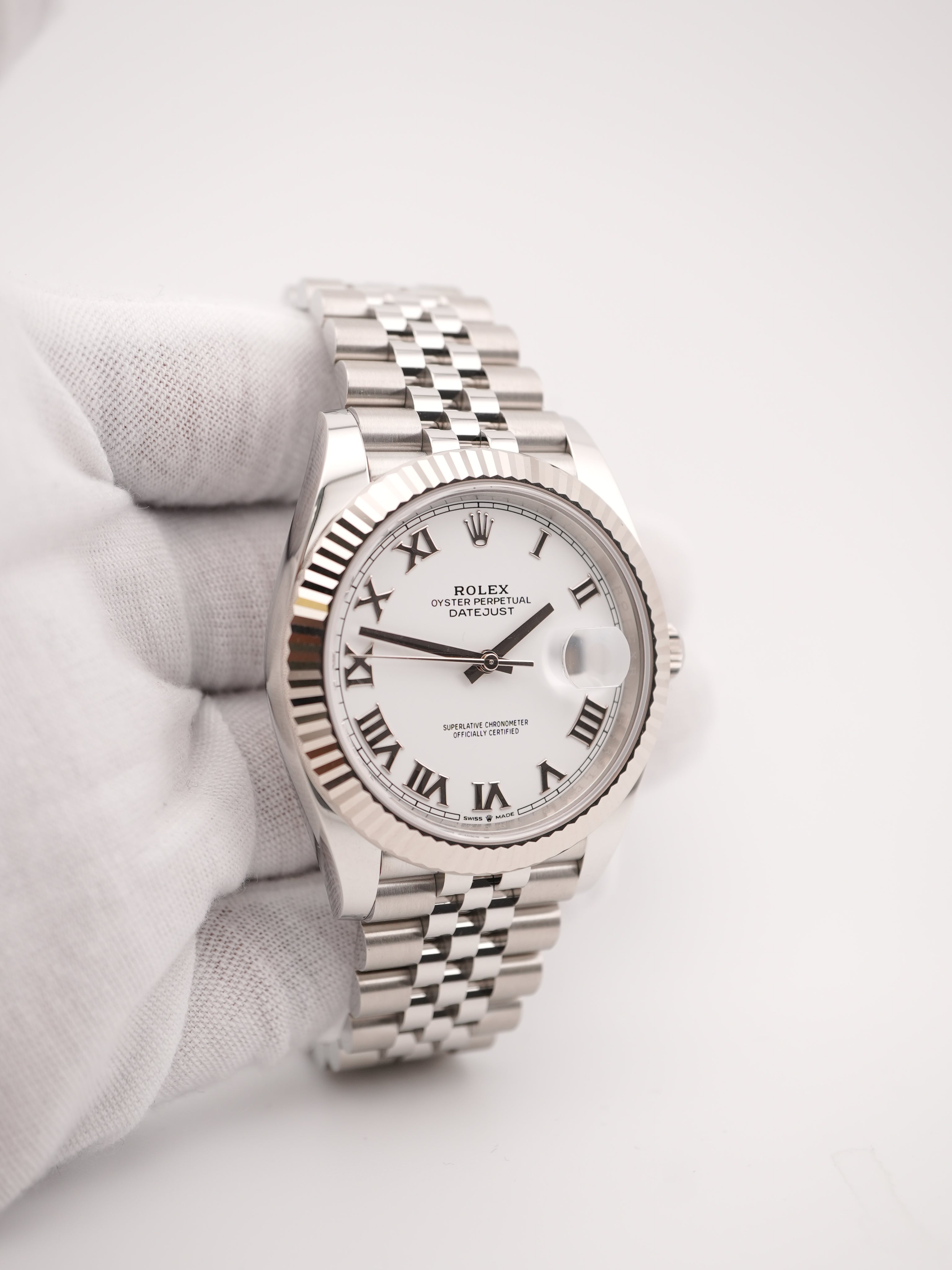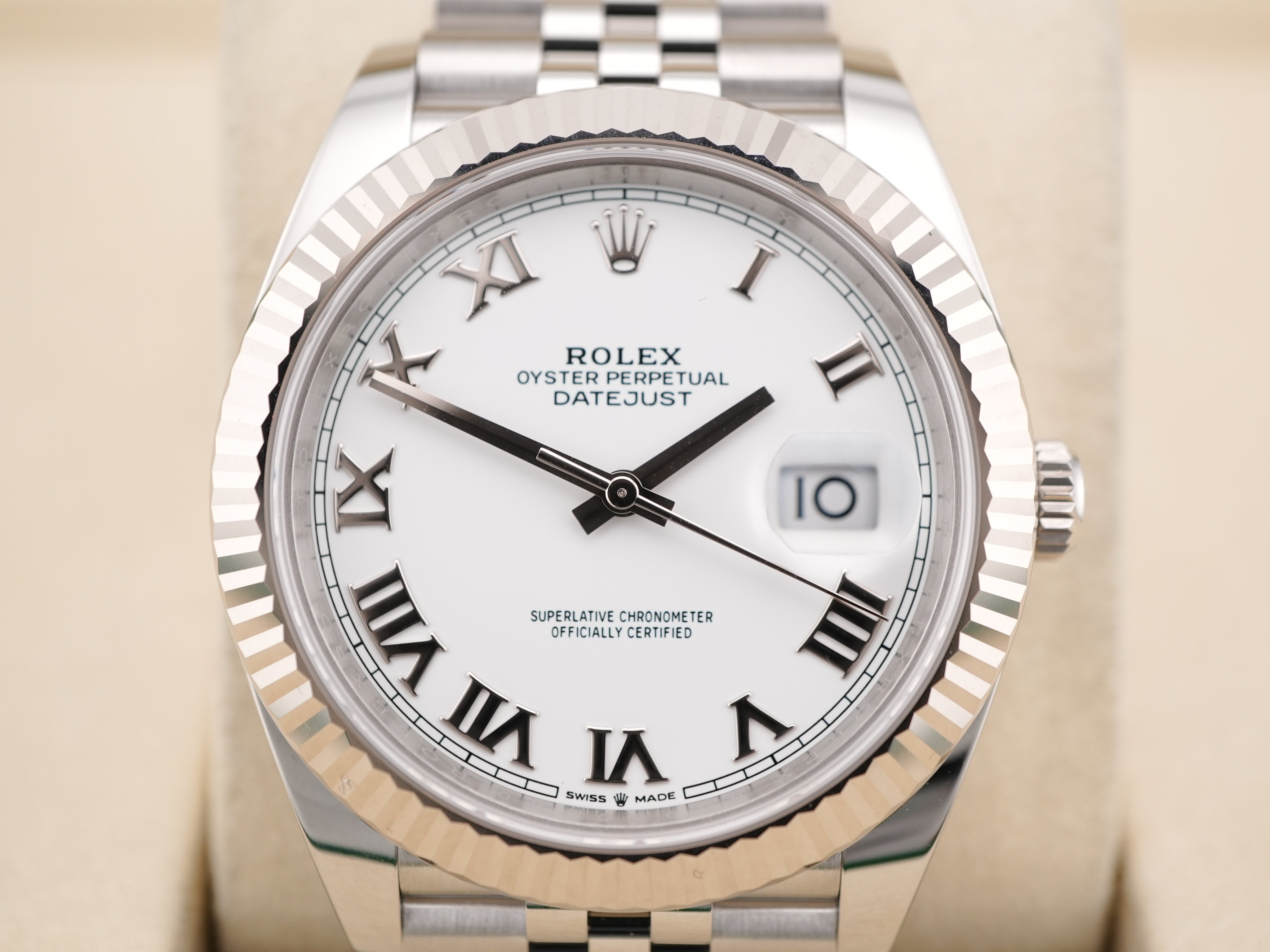 Rolex 126334 Datejust 41 mm Fluted Bezel White Roman Dial Jubilee Bracelet Box and Papers 2025