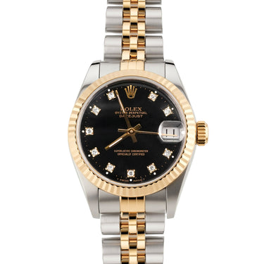 Rolex 68273 Datejust 31 mm Fluted Bezel Black Diamond Dial Jubilee Bracelet Box and Papers 1991