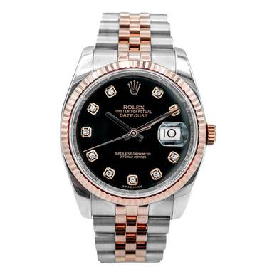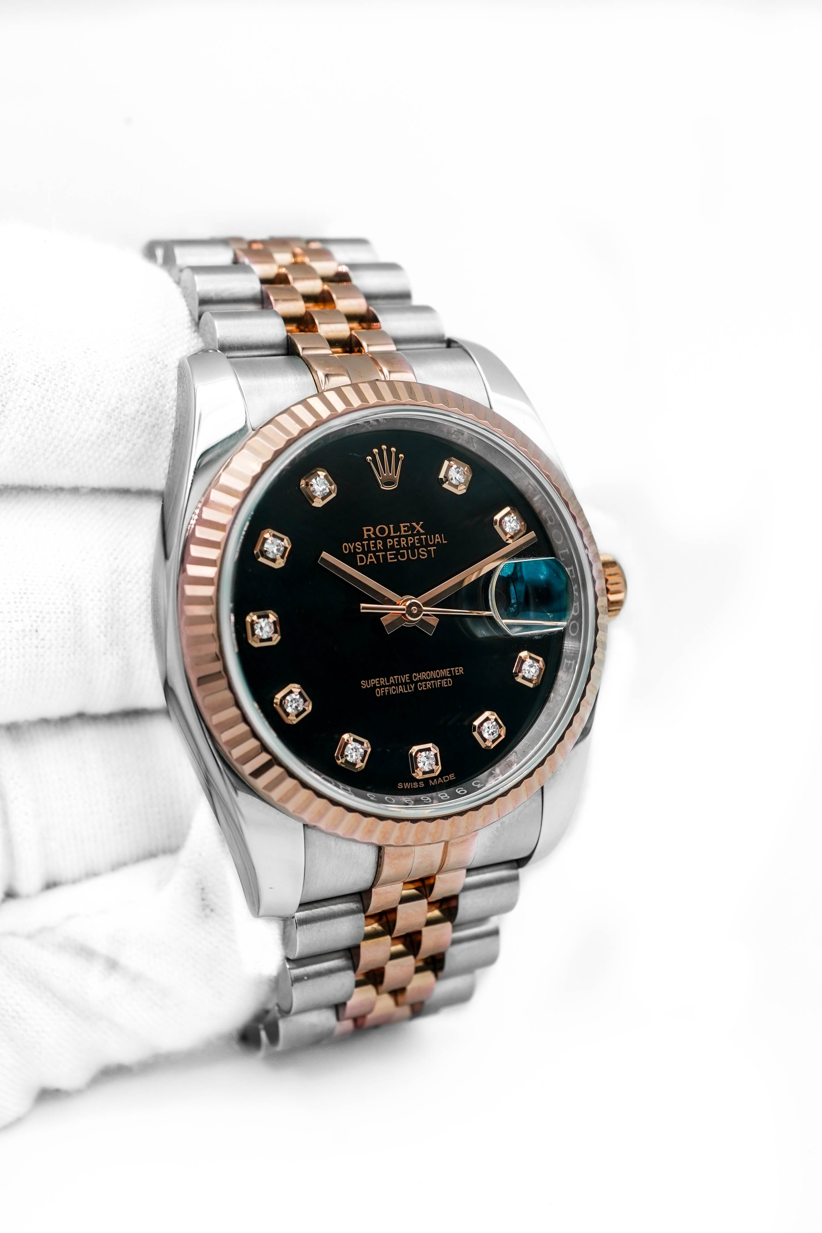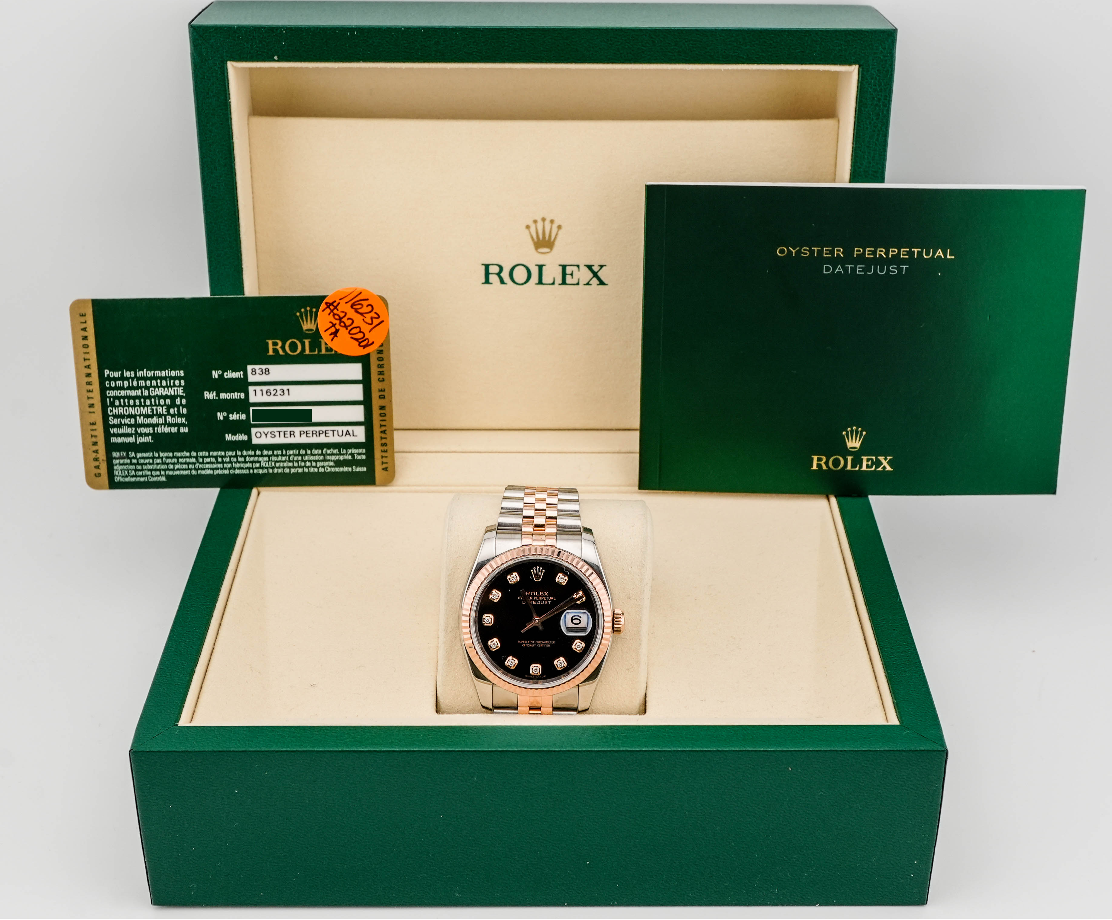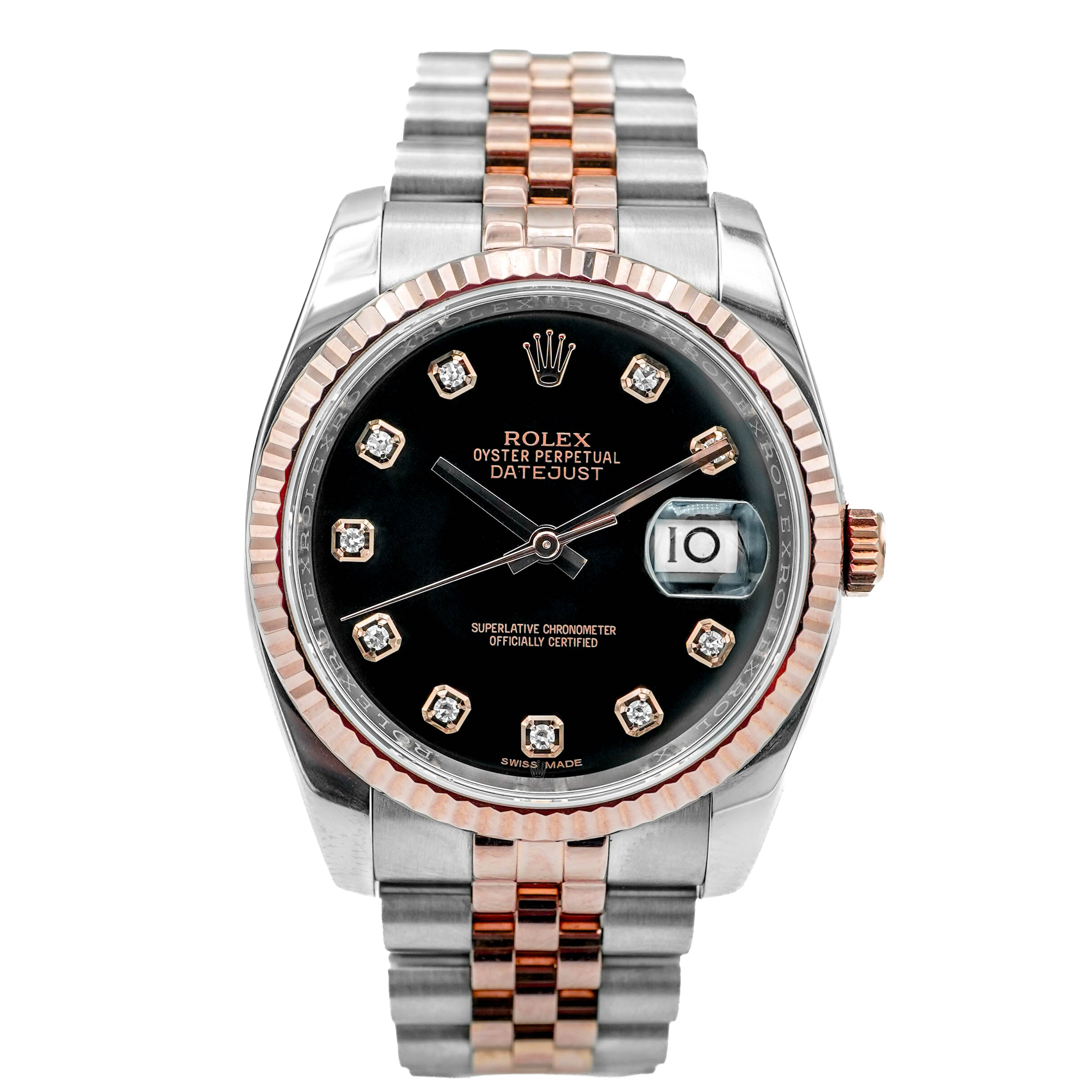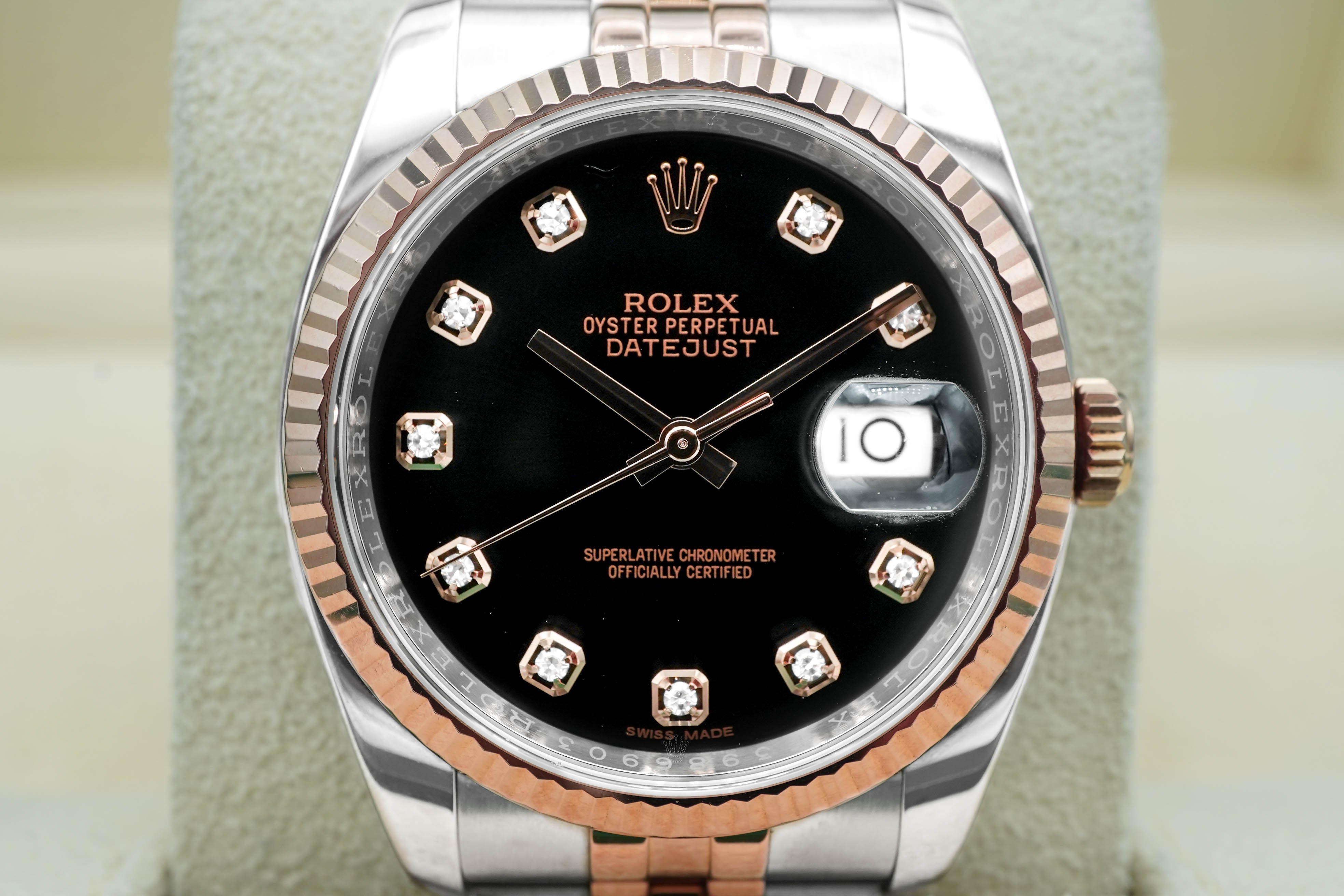 Rolex Datejust 36 116231 Datejust 36mm 18K Rose Gold Black Diamond Dial Jubilee Bracelet Box and Papers 2010
