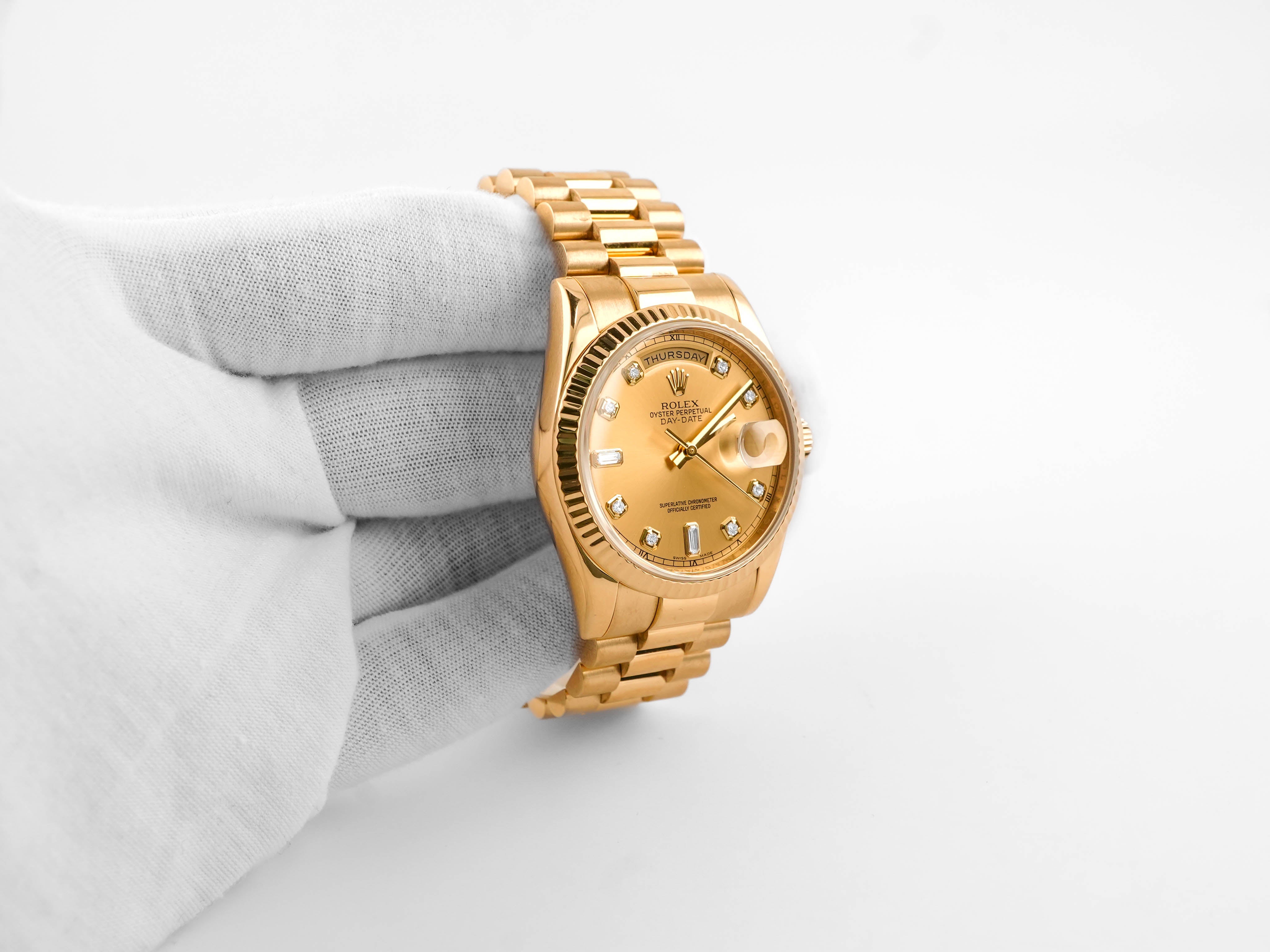 Rolex 118238 Day-Date "President" 36 mm 18K Yellow Gold Champagne Dial Box and Papers 2008