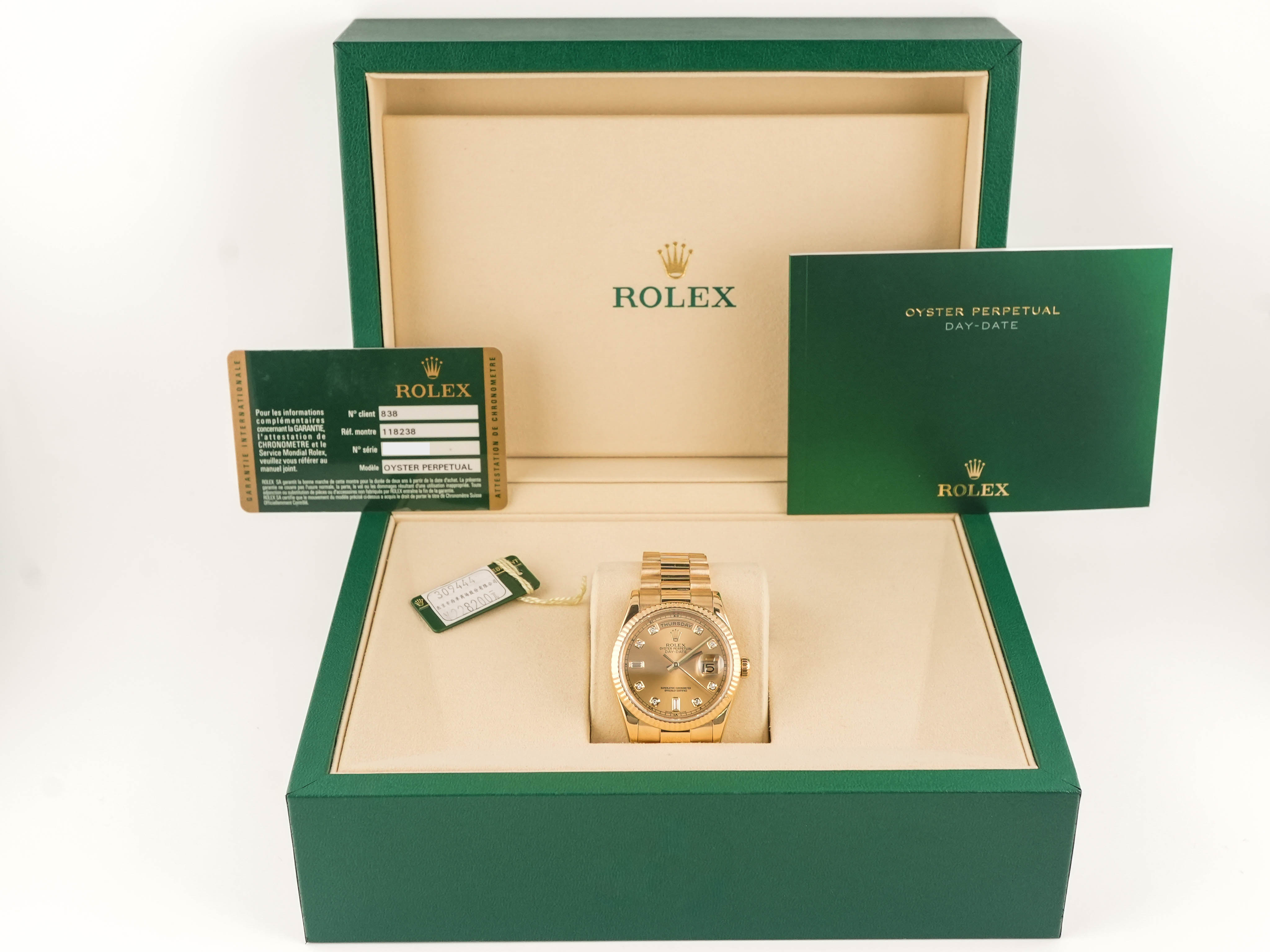 Accessories: Original Rolex Box, Original Rolex Warranty Card & Original Rolex Day-Date Manual