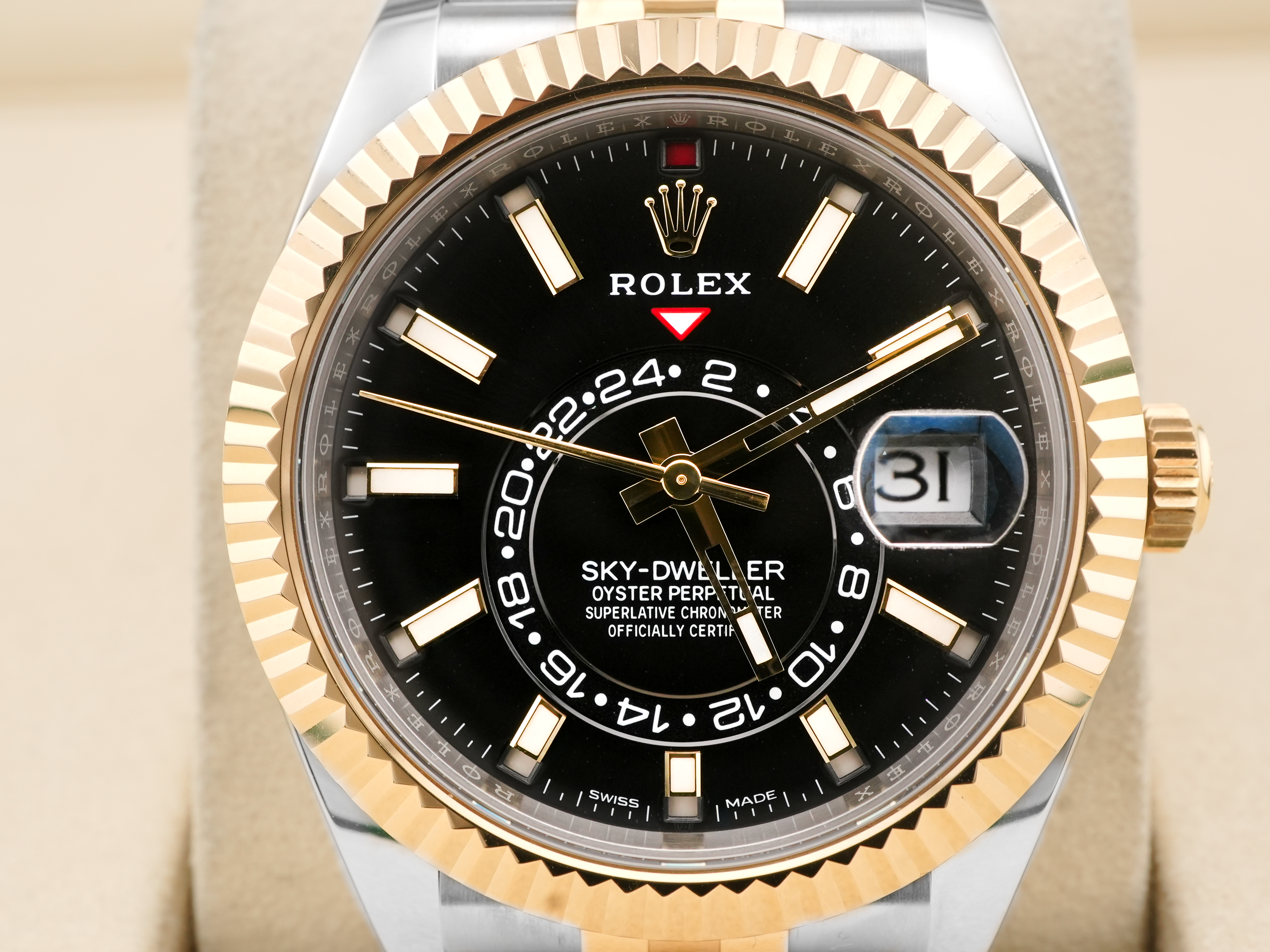 Rolex 326933 Sky-Dweller Fluted Bezel 42 mm Black Dial Jubilee Bracelet Box and Papers 2022
