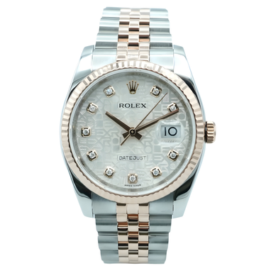 Rolex 116231 Datejust 36mm 18K Rose Gold OEM Rolex Silver Jubilee Diamond Dial Box and Papers 2015