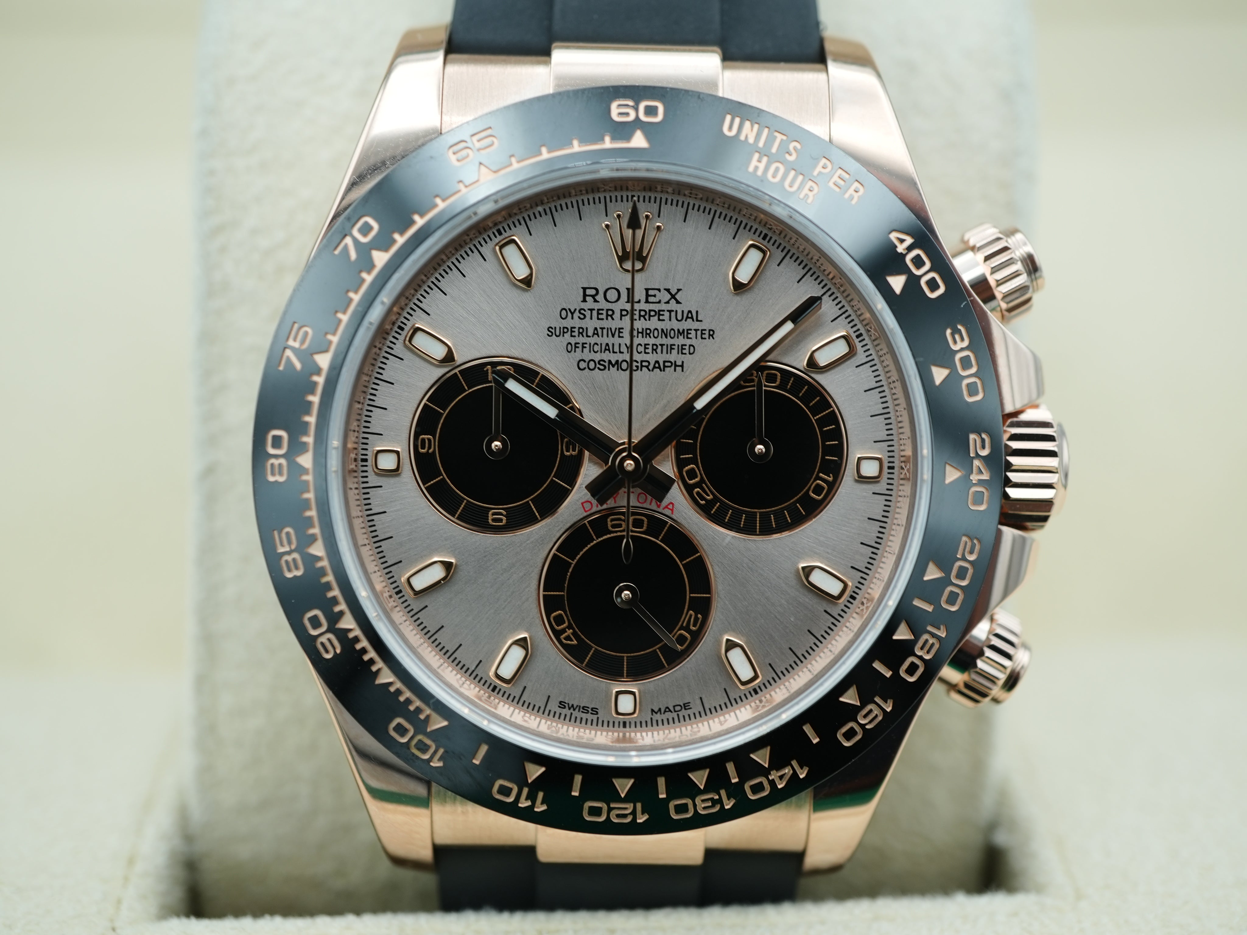 Rolex 116515LN Daytona 18K Rose Gold Sundust Pink Dial Black Ceramic Bezel Complete Set 2022