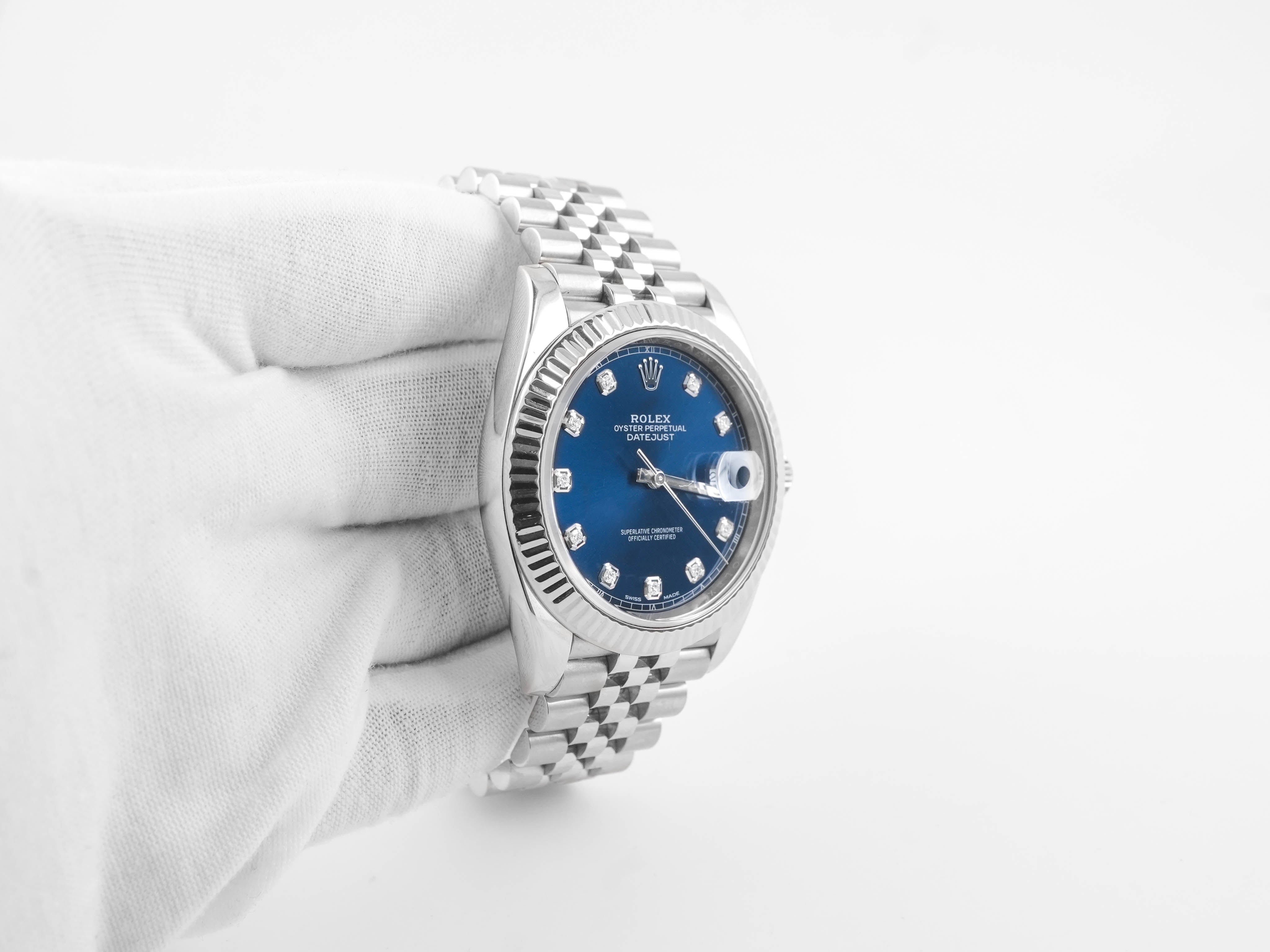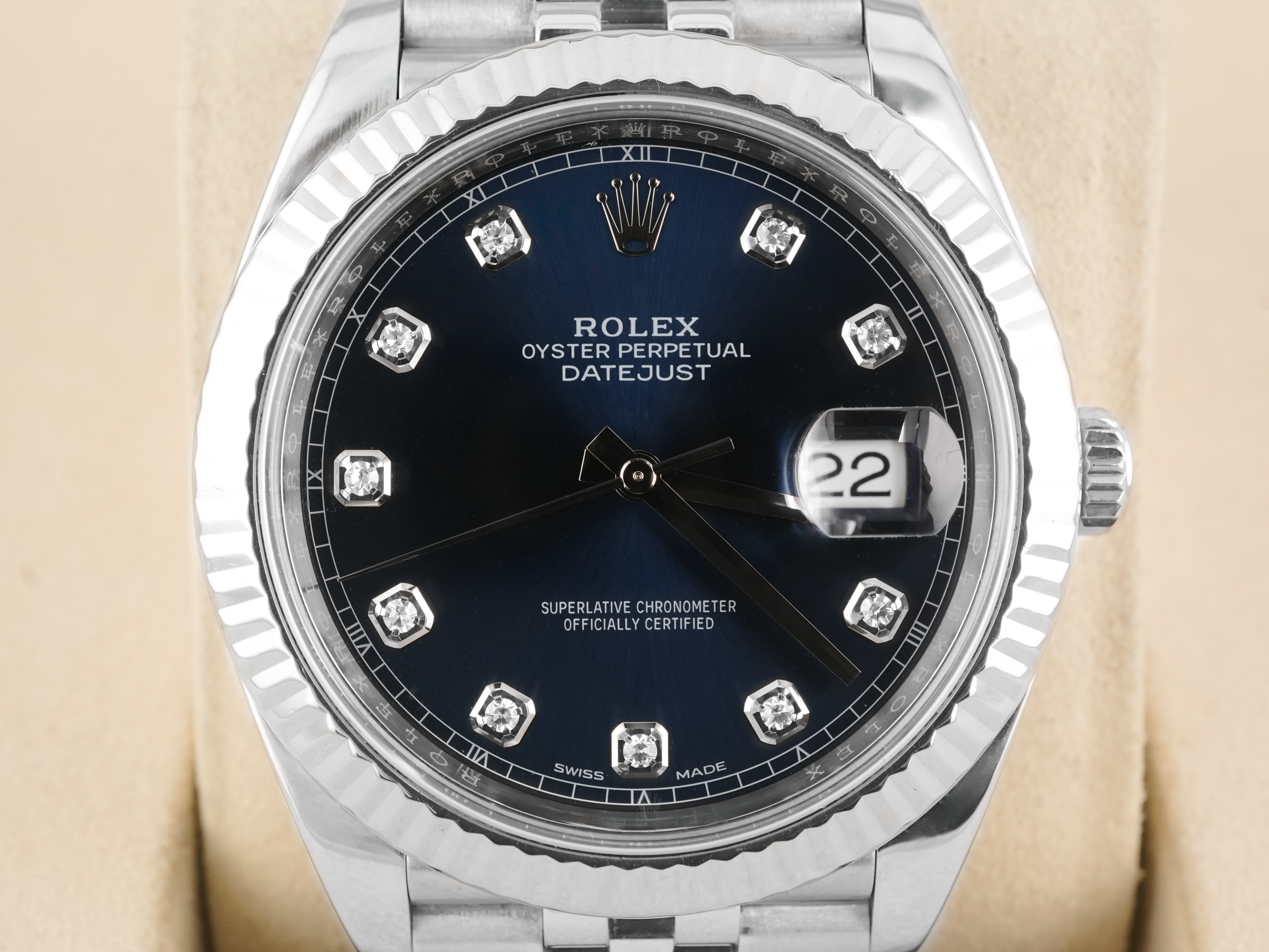 Rolex 126334 Datejust 41 mm Fluted Bezel Blue Diamond Dial Jubilee Bracelet Box and Papers 2018