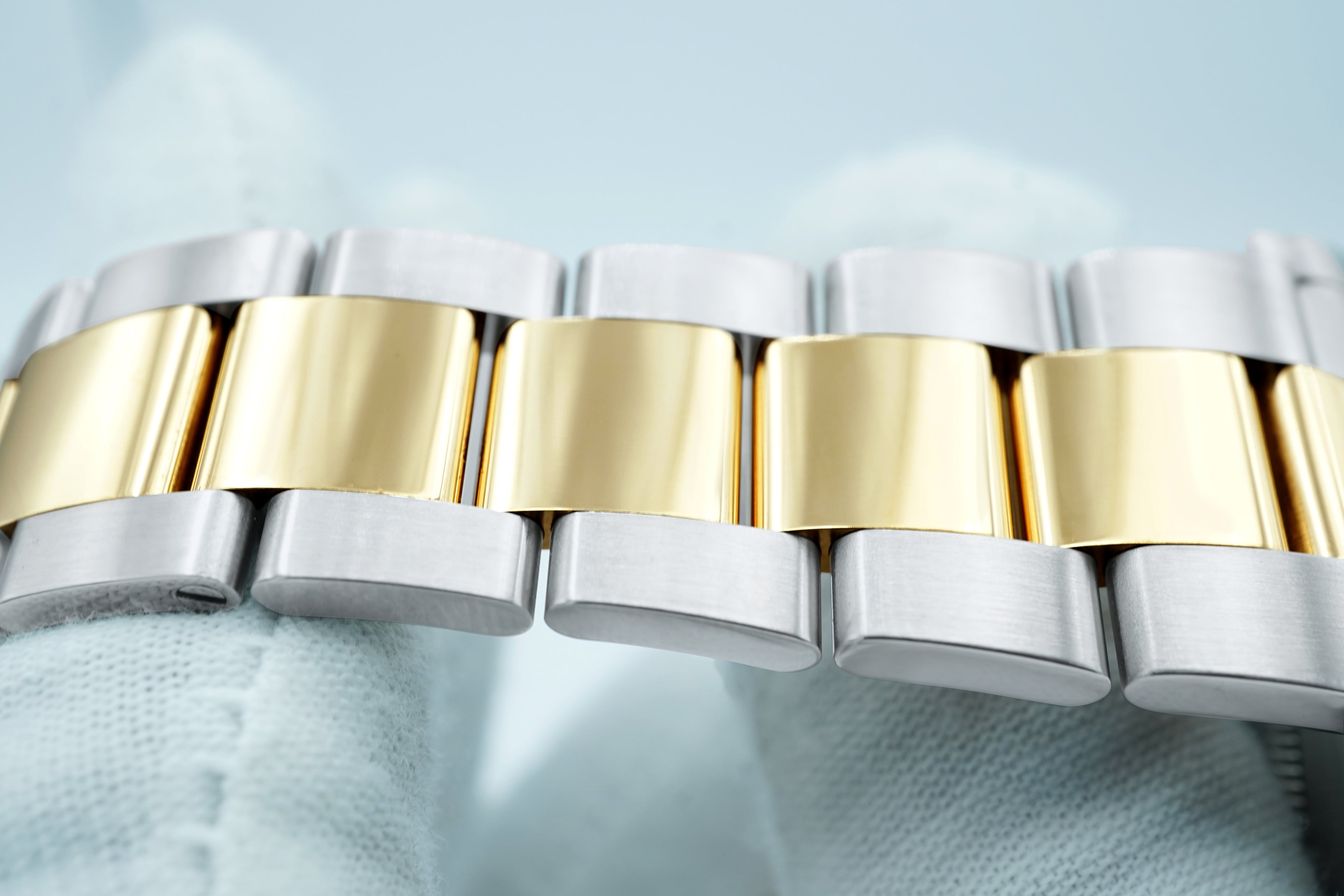 • Bracelet: Brushed 904L Oystersteel Stainless Steel with 18k Yellow Gold Oyster Bracelet