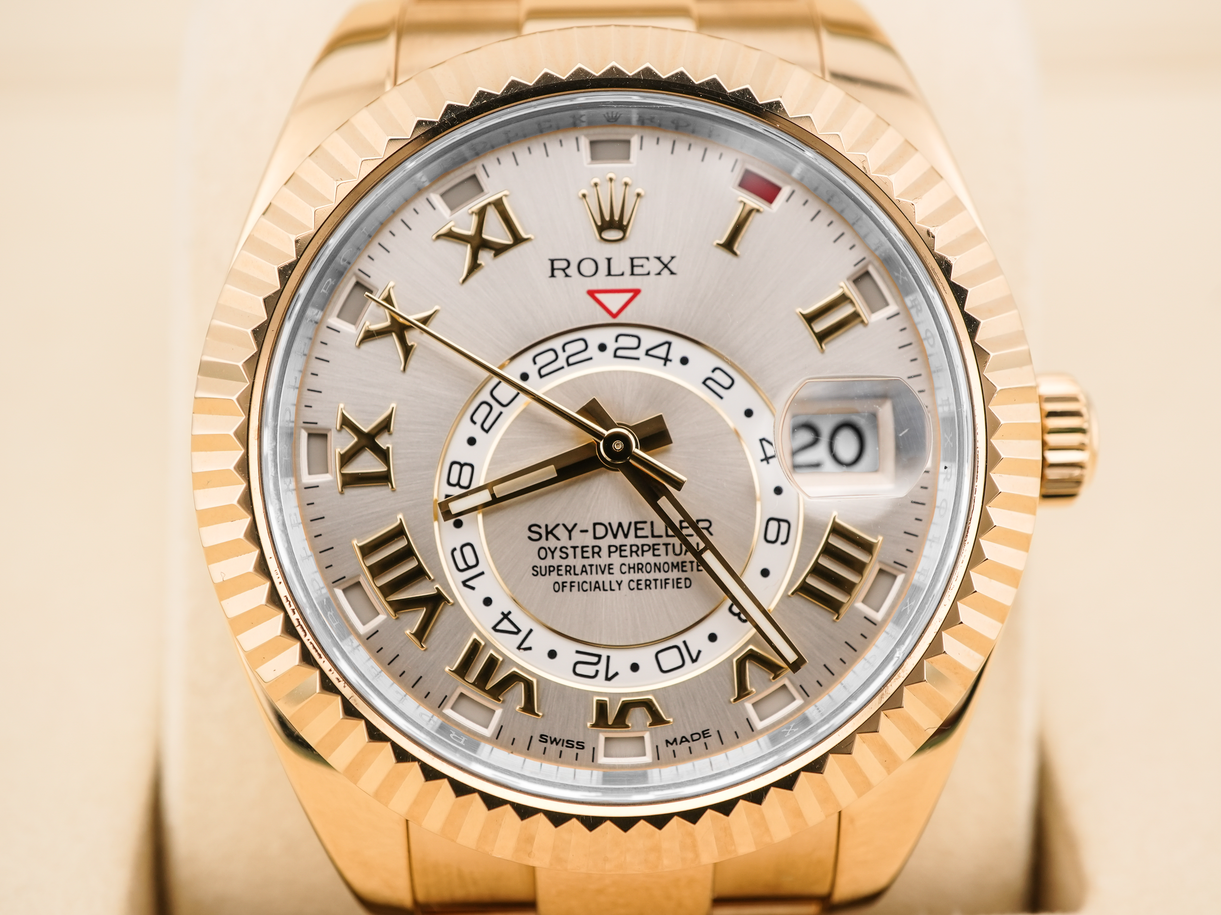 Rolex 326938 Sky-Dweller 42 mm Silver Sunray Roman Dial Oyster Bracelet Box and Papers 2017