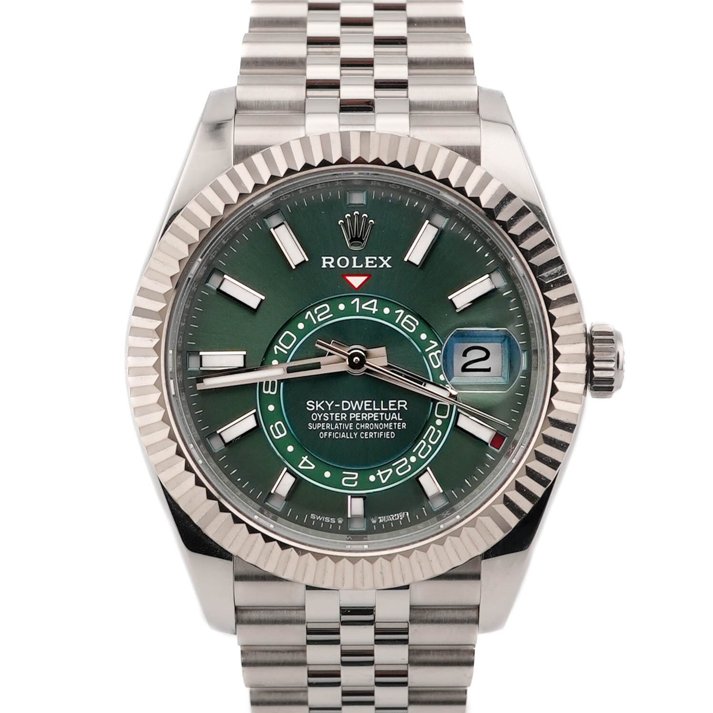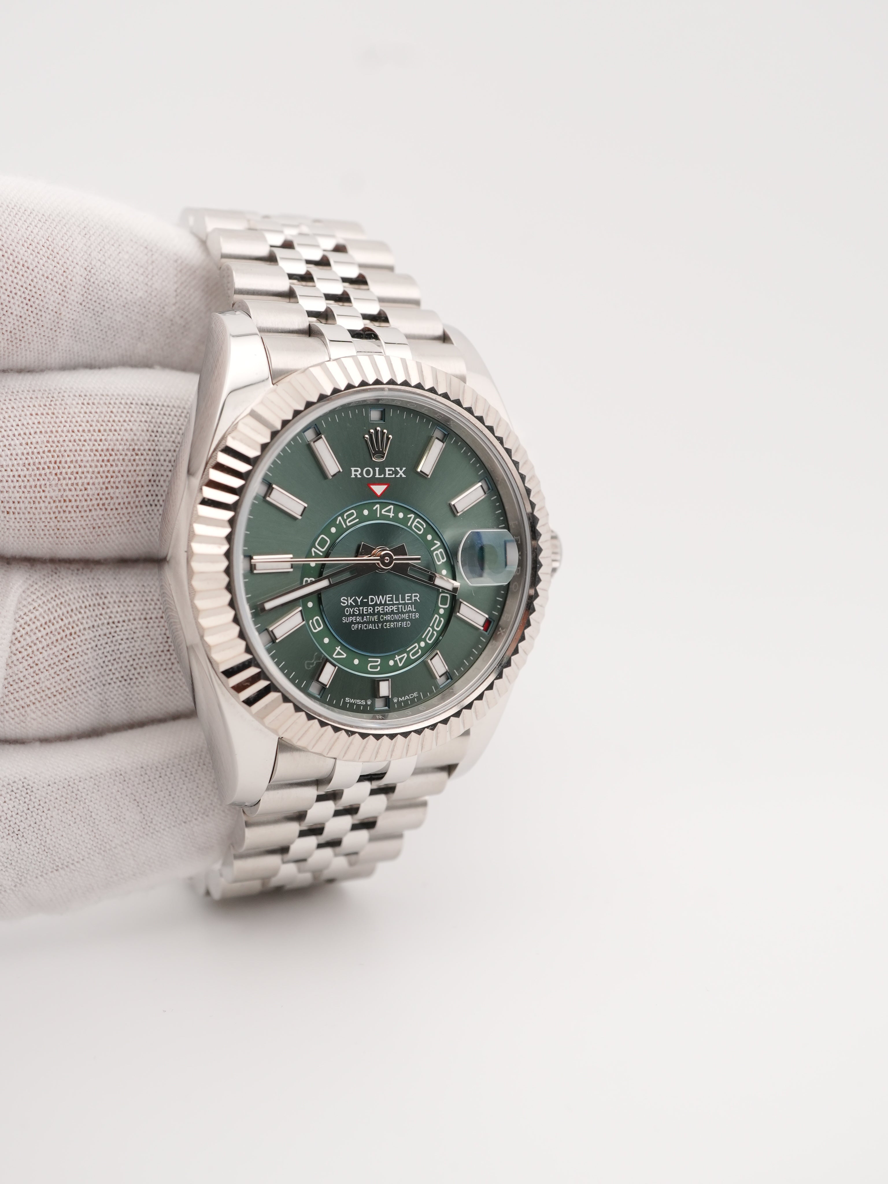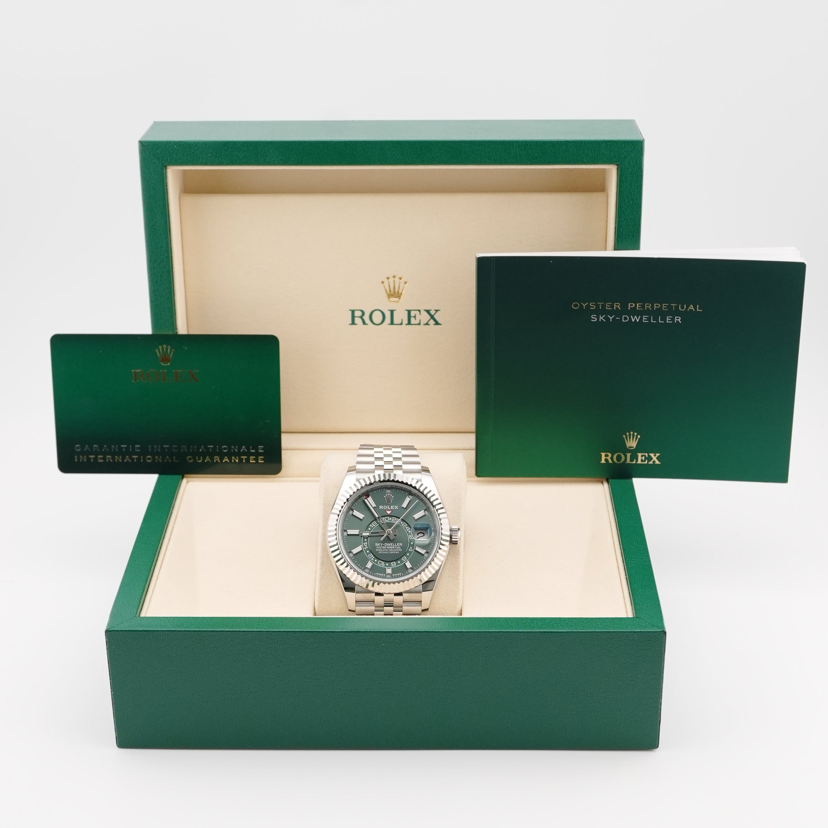 Rolex 336934 Sky-Dweller 42 mm 18k White Gold Mint Green Dial Jubilee Bracelet Complete Set 2025