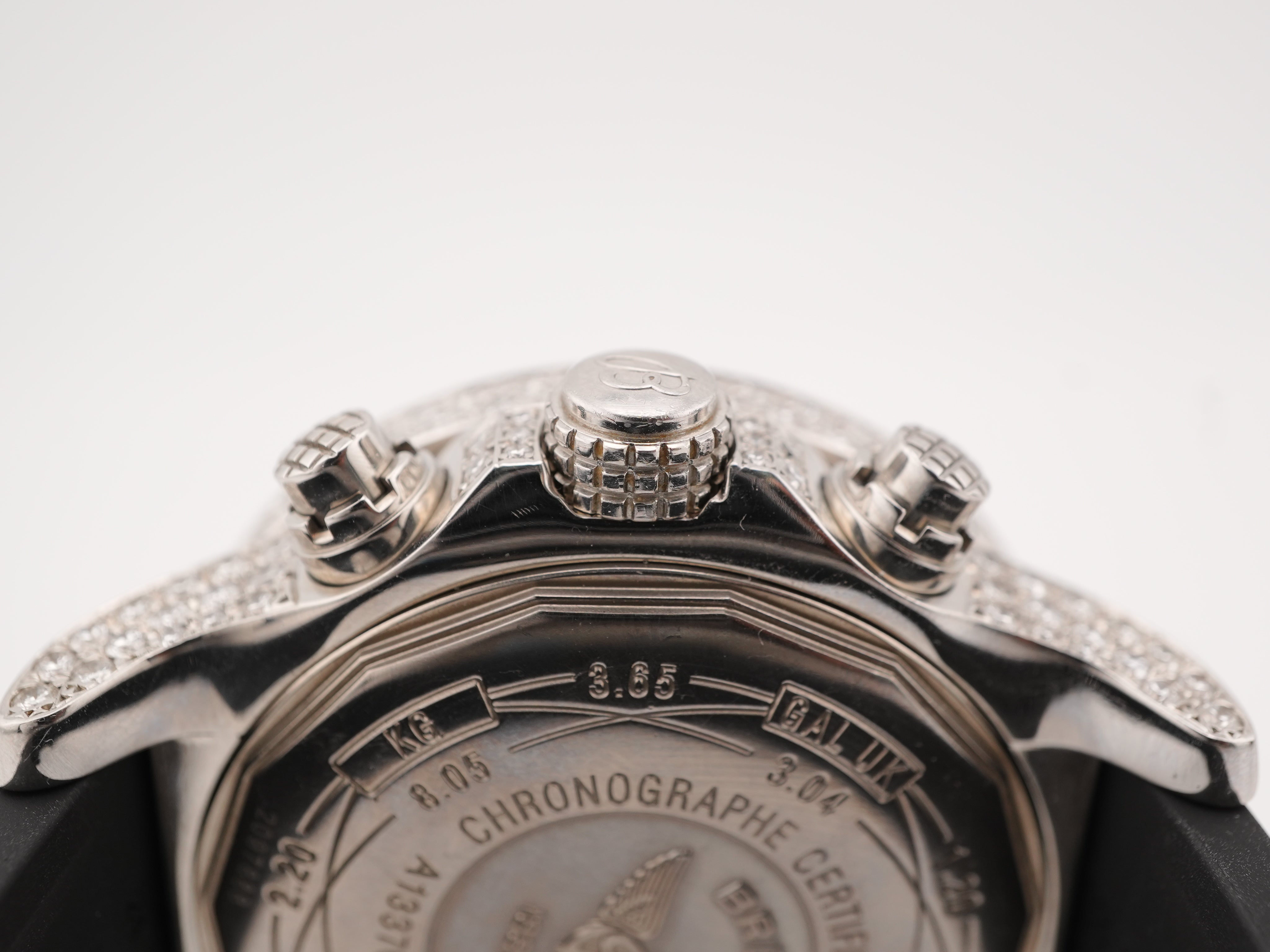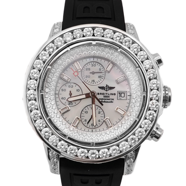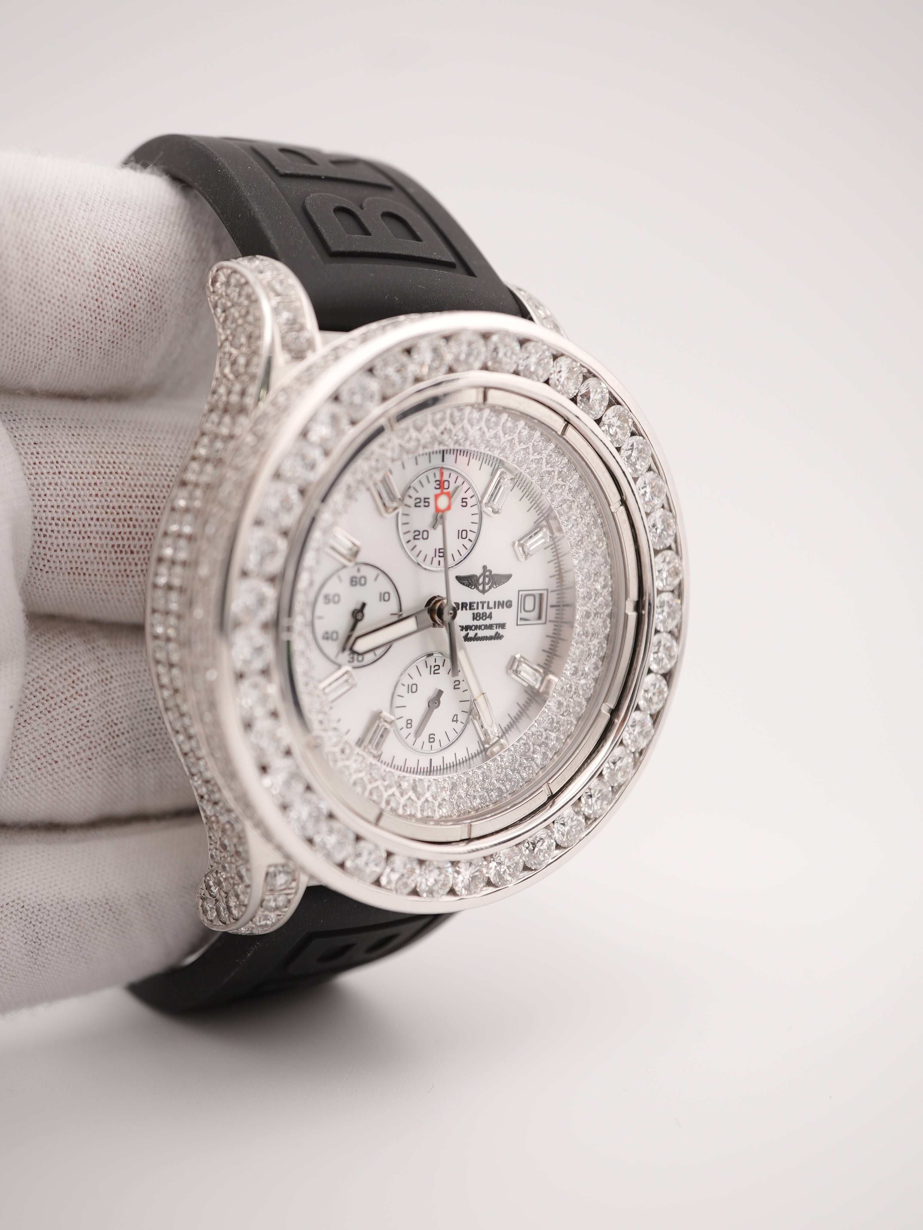 Breitling Super Avenger Chronograph 48 mm White MOP Diamond Dial Custom Diamond Bezel Rubber Strap 2012