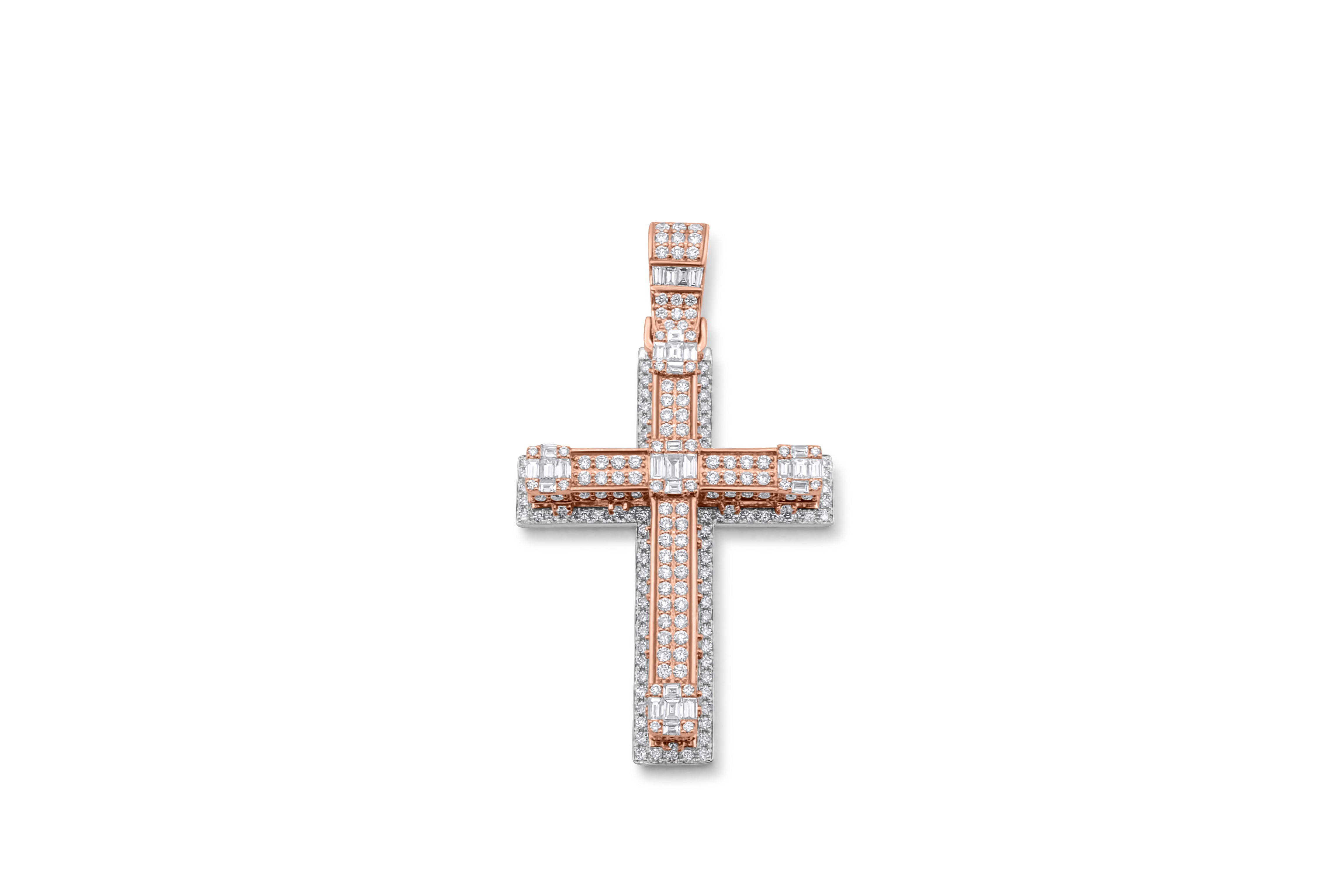 Experience the elegance and beauty of our 14k gold diamond cross pendant. Available in yellow, white, or rose gold, this stunning pendant features 3.81ct of sparkling diamonds, making it a luxurious addition to any outfit.