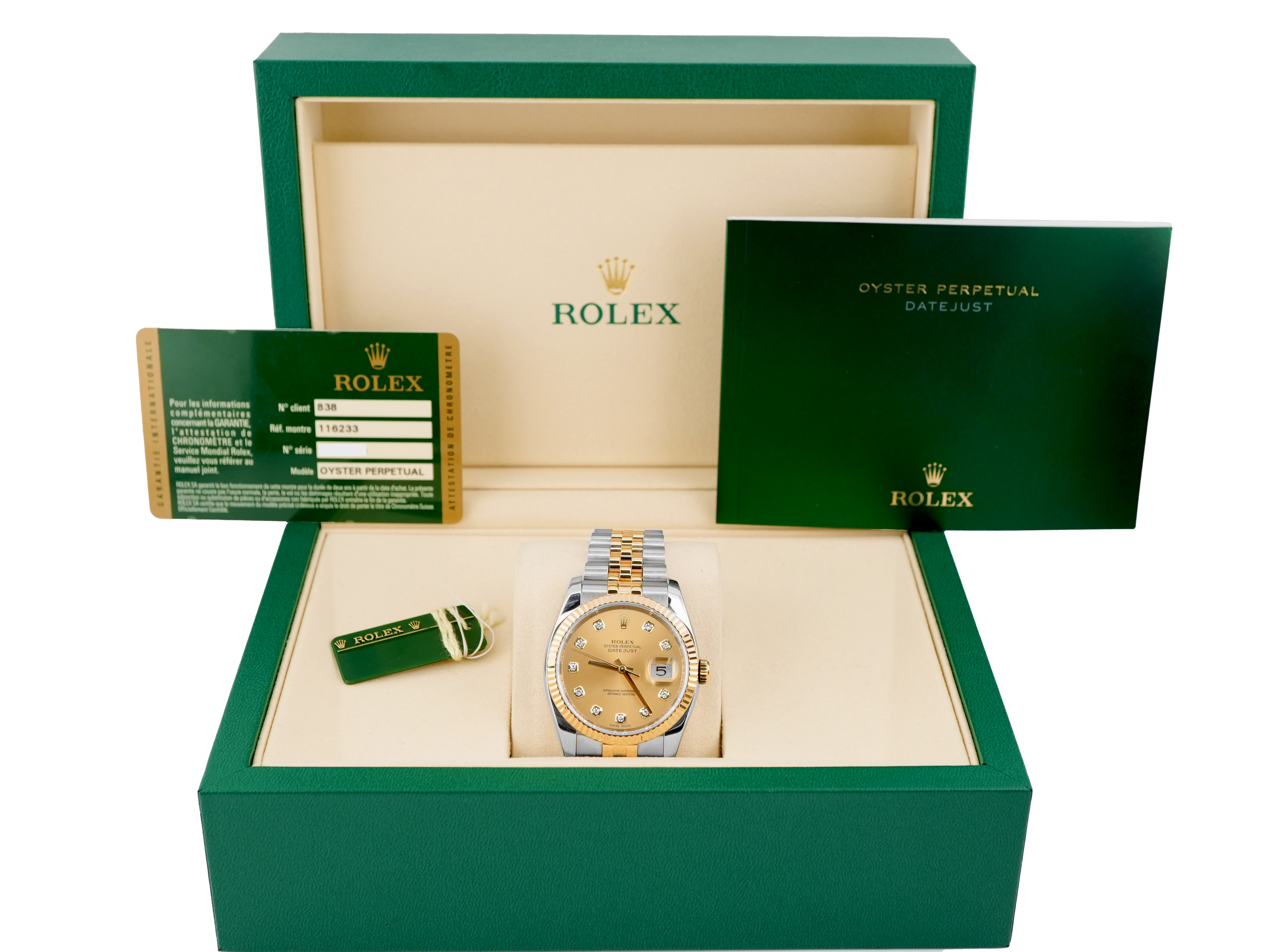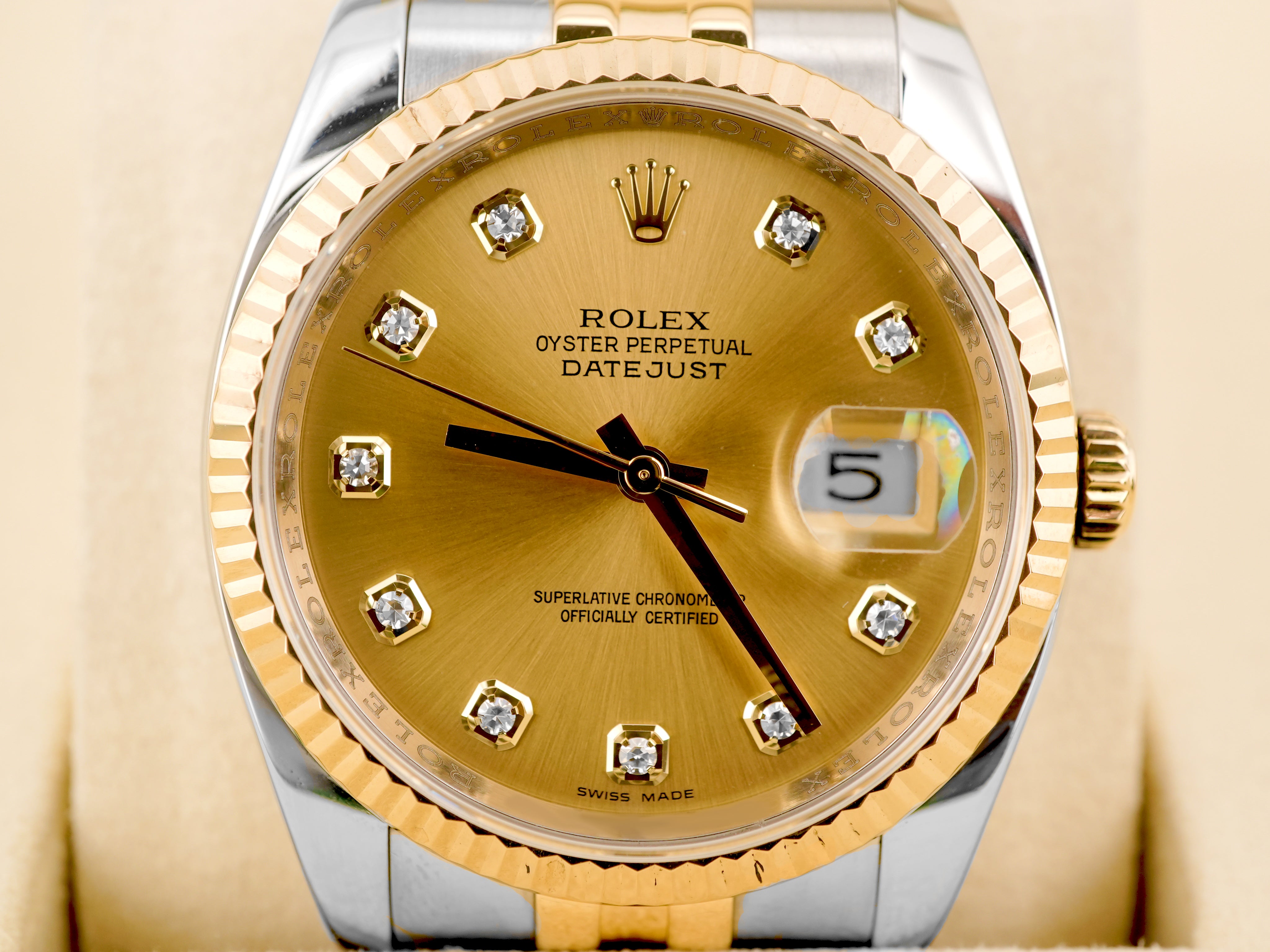 Rolex 116233 Datejust 36 mm Fluted Bezel Champagne Dial Jubilee Bracelet Box and Papers 2011