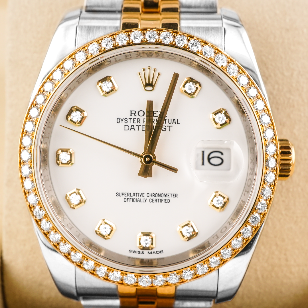 • Bezel Material: 18K Yellow Gold Rolex Factory Diamonds