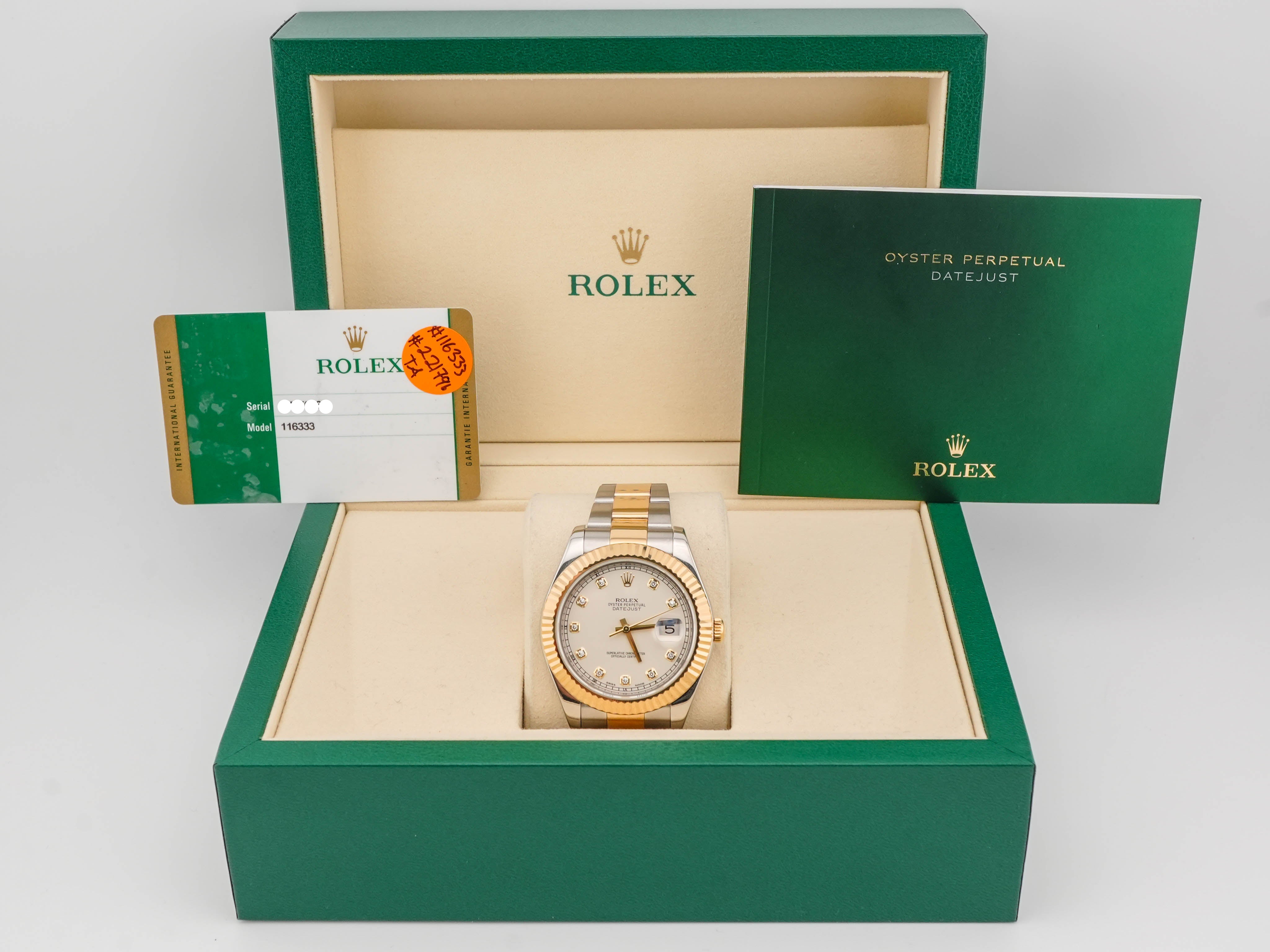 Rolex 116333 Datejust II 41 mm Ivory Diamond Dial Oyster Bracelet Box and Papers 2015