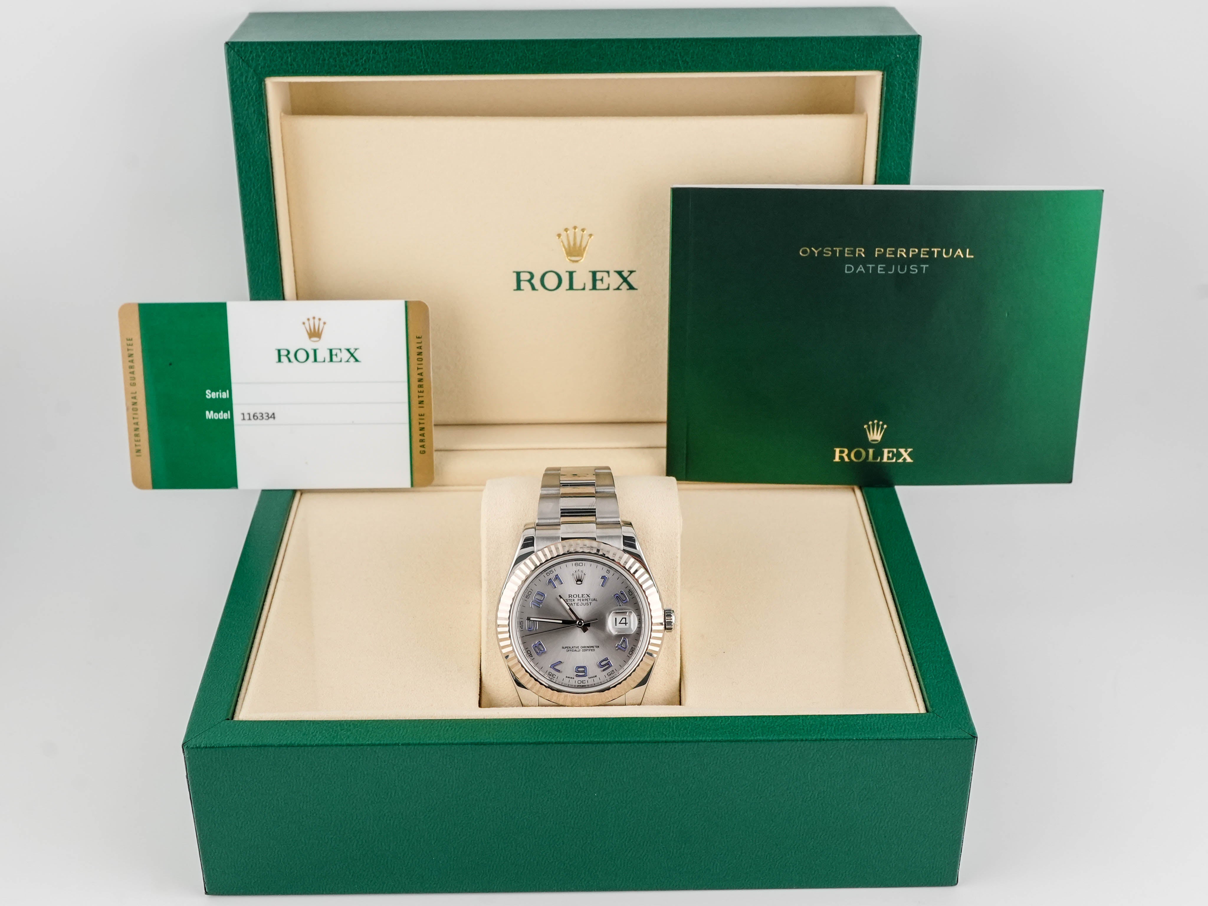 Rolex 116334 Datejust II 41 mm Fluted Bezel Silver Dial Oyster Bracelet Box and Papers 2016