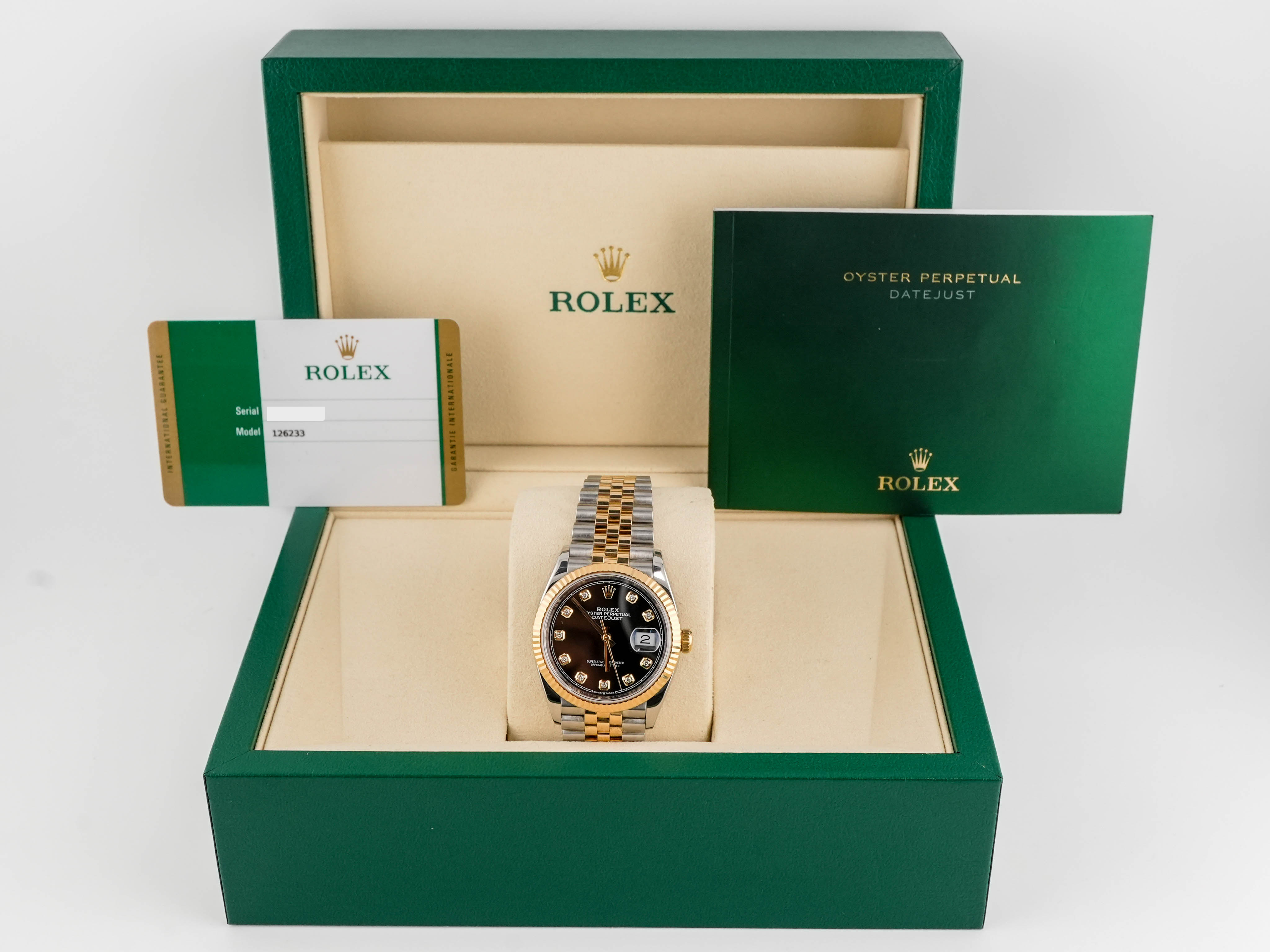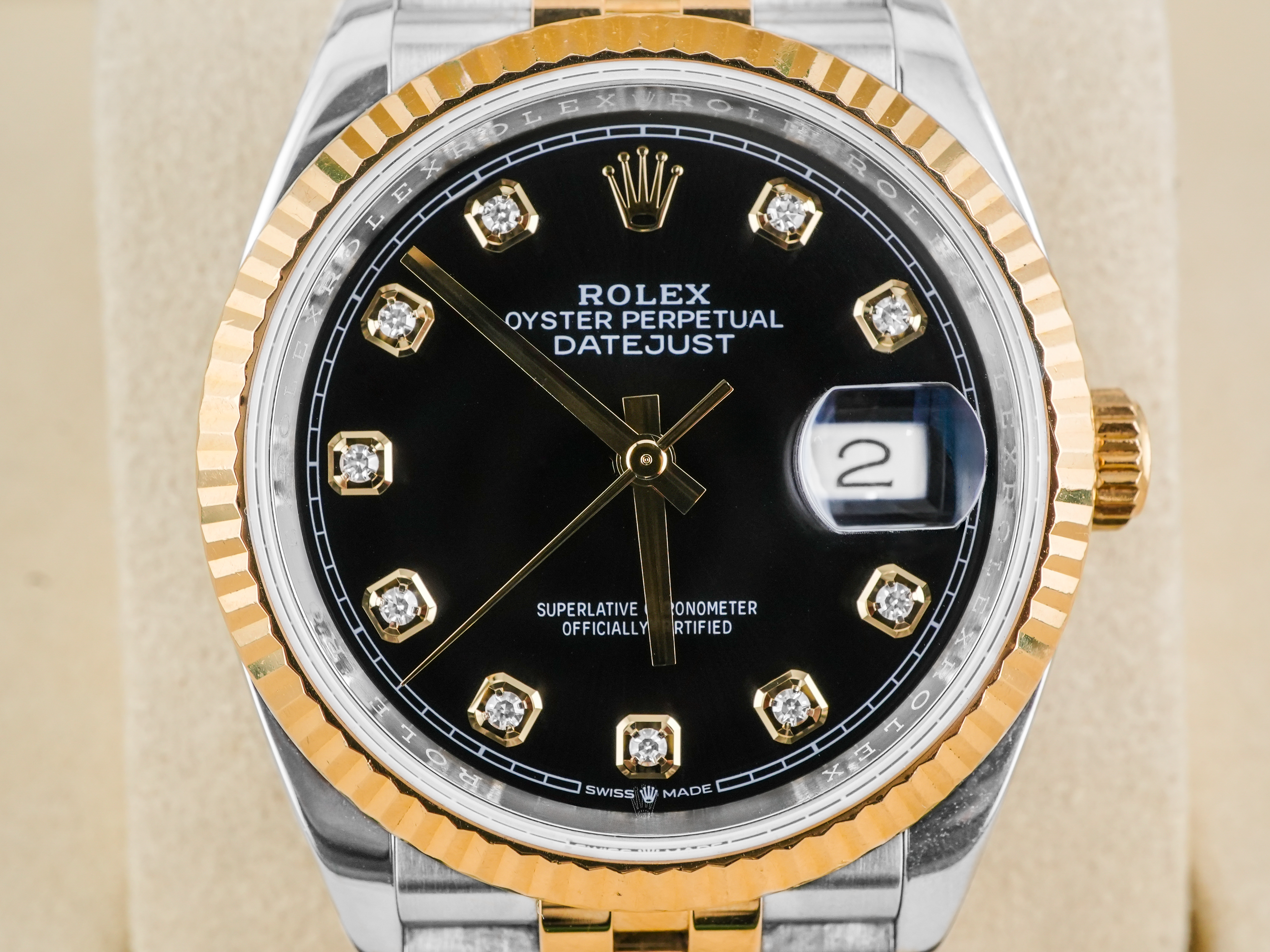 Rolex 126233 Datejust 36 mm Fluted Bezel Black Diamond Dial Jubilee Bracelet Box and Papers 2020
