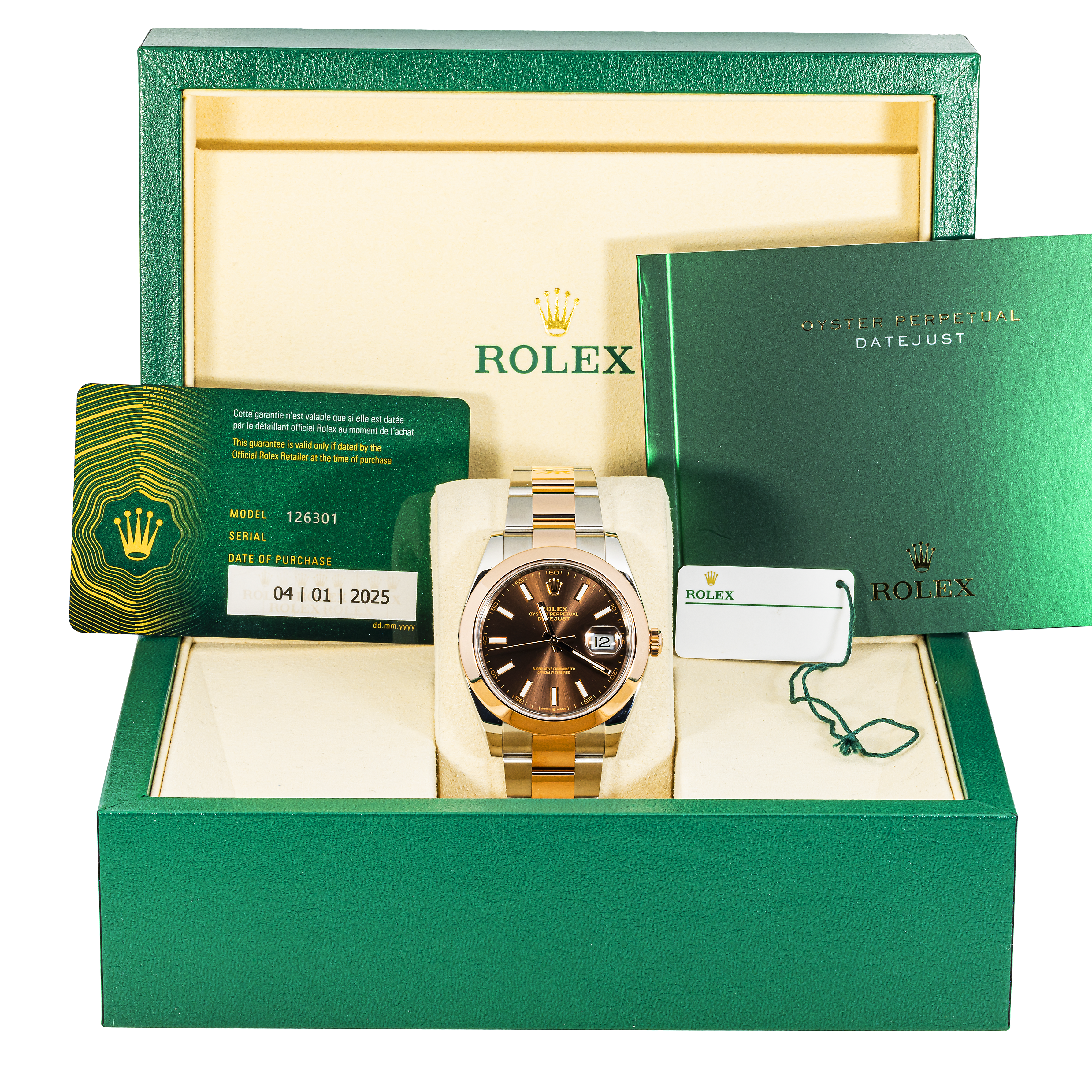 Rolex 126301 Datejust 41 mm 18K Rose Gold Brown Index Dial Oyster Bracelet Complete Set 2025