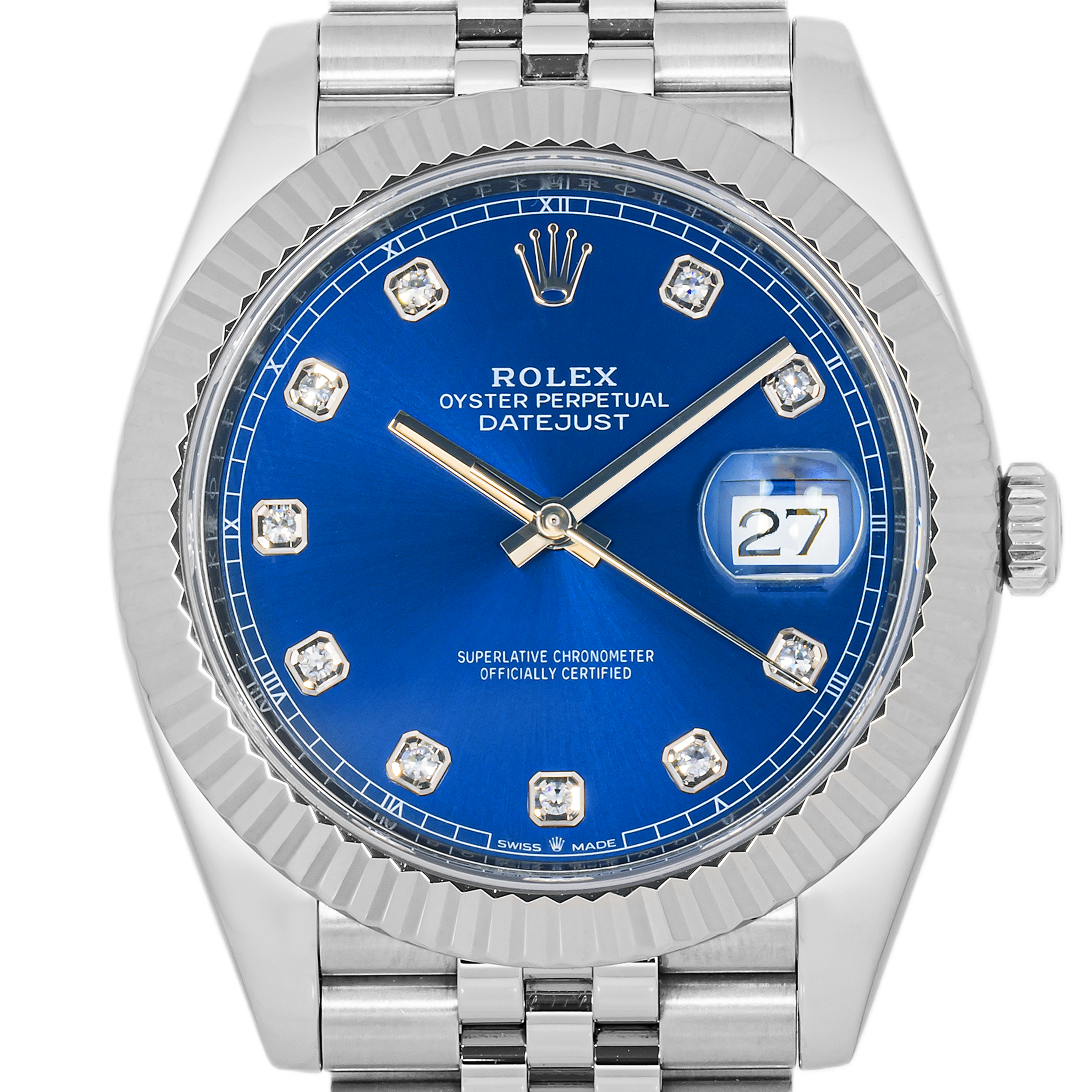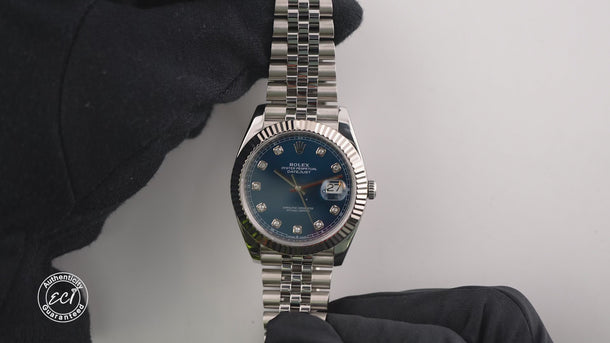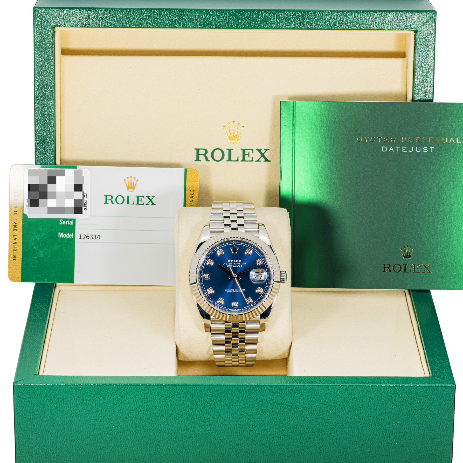 Rolex 126334 Datejust 41 mm Fluted Bezel Blue Diamond Dial Jubilee Bracelet Box and Papers 2019