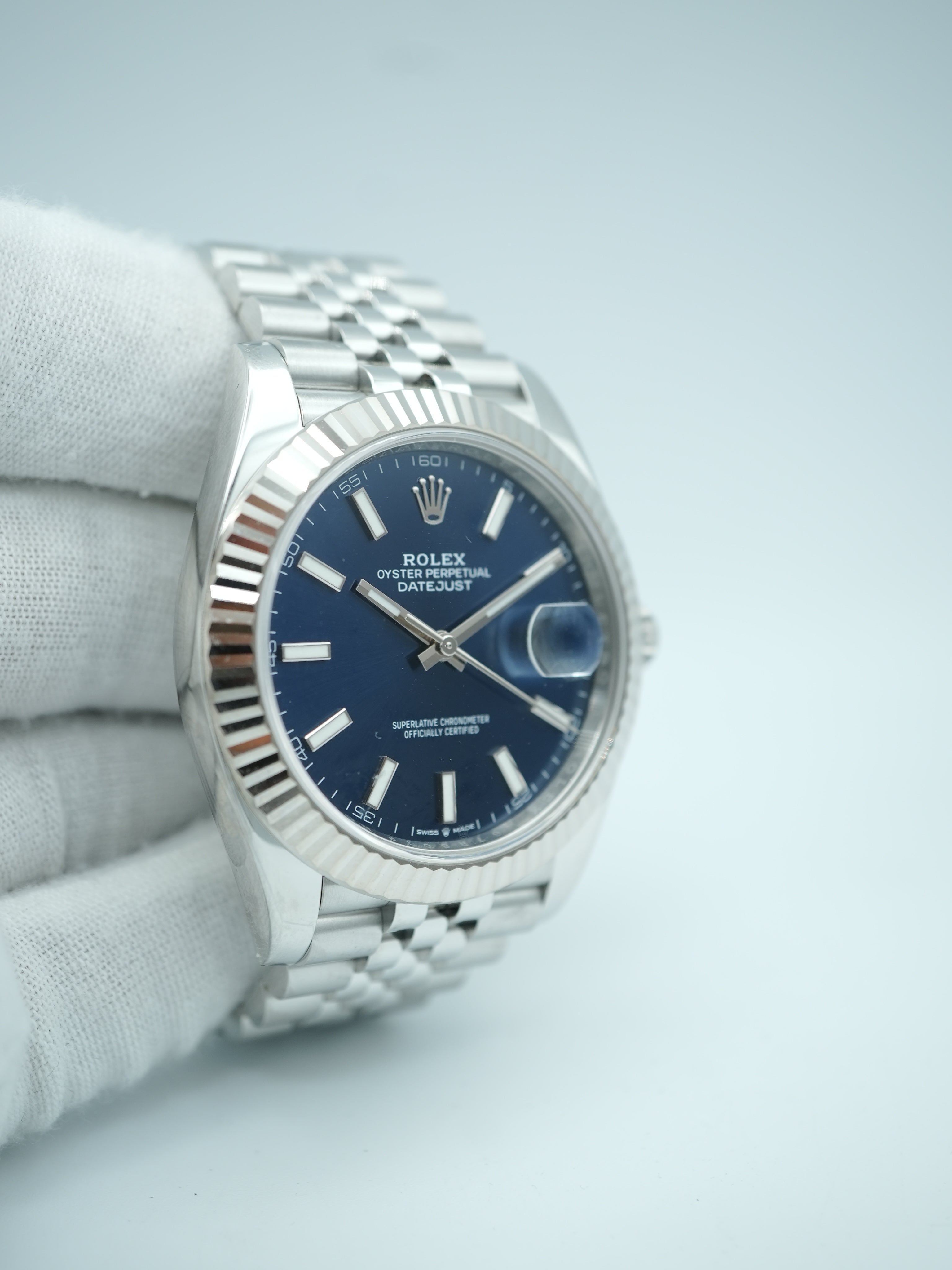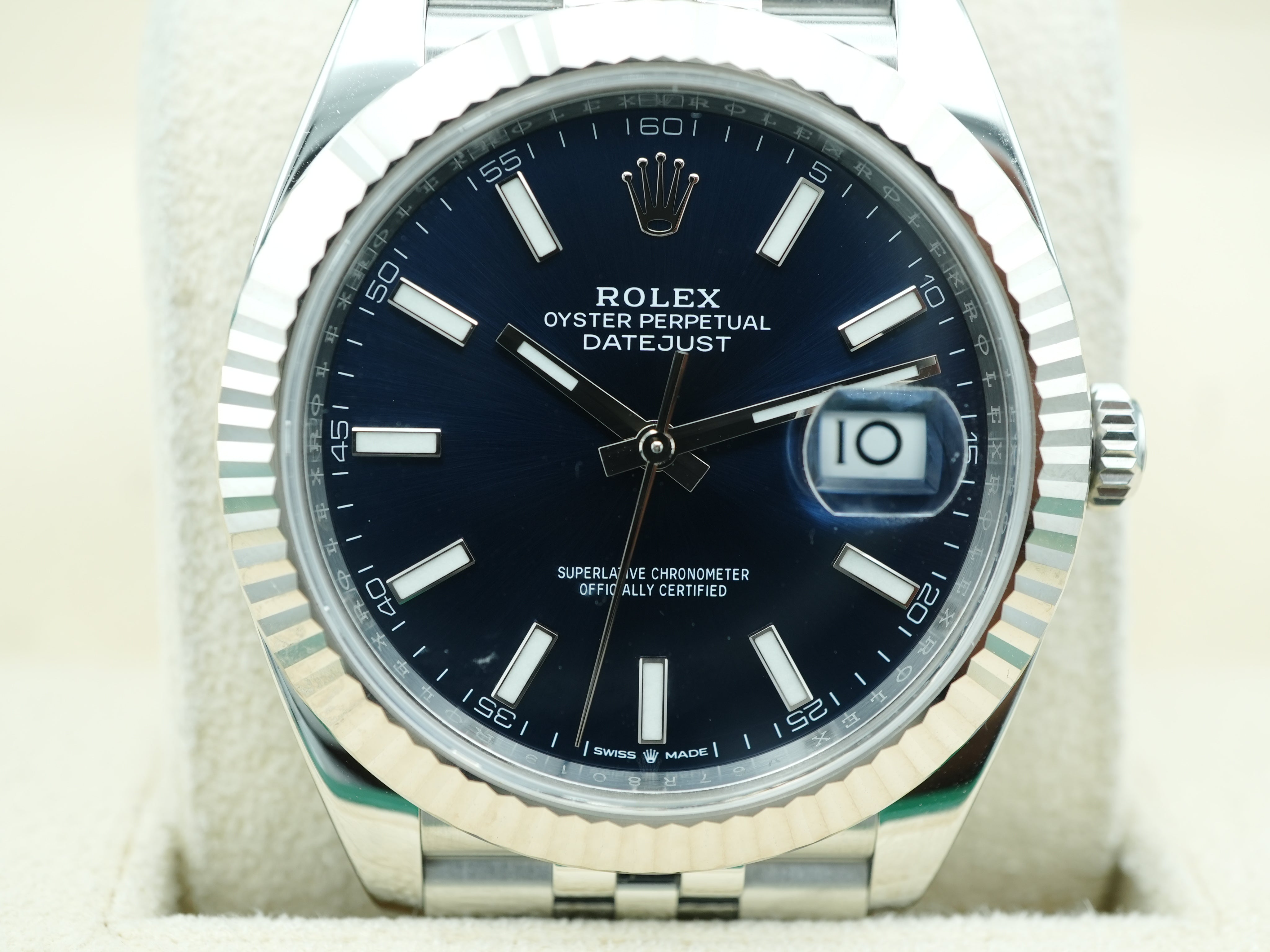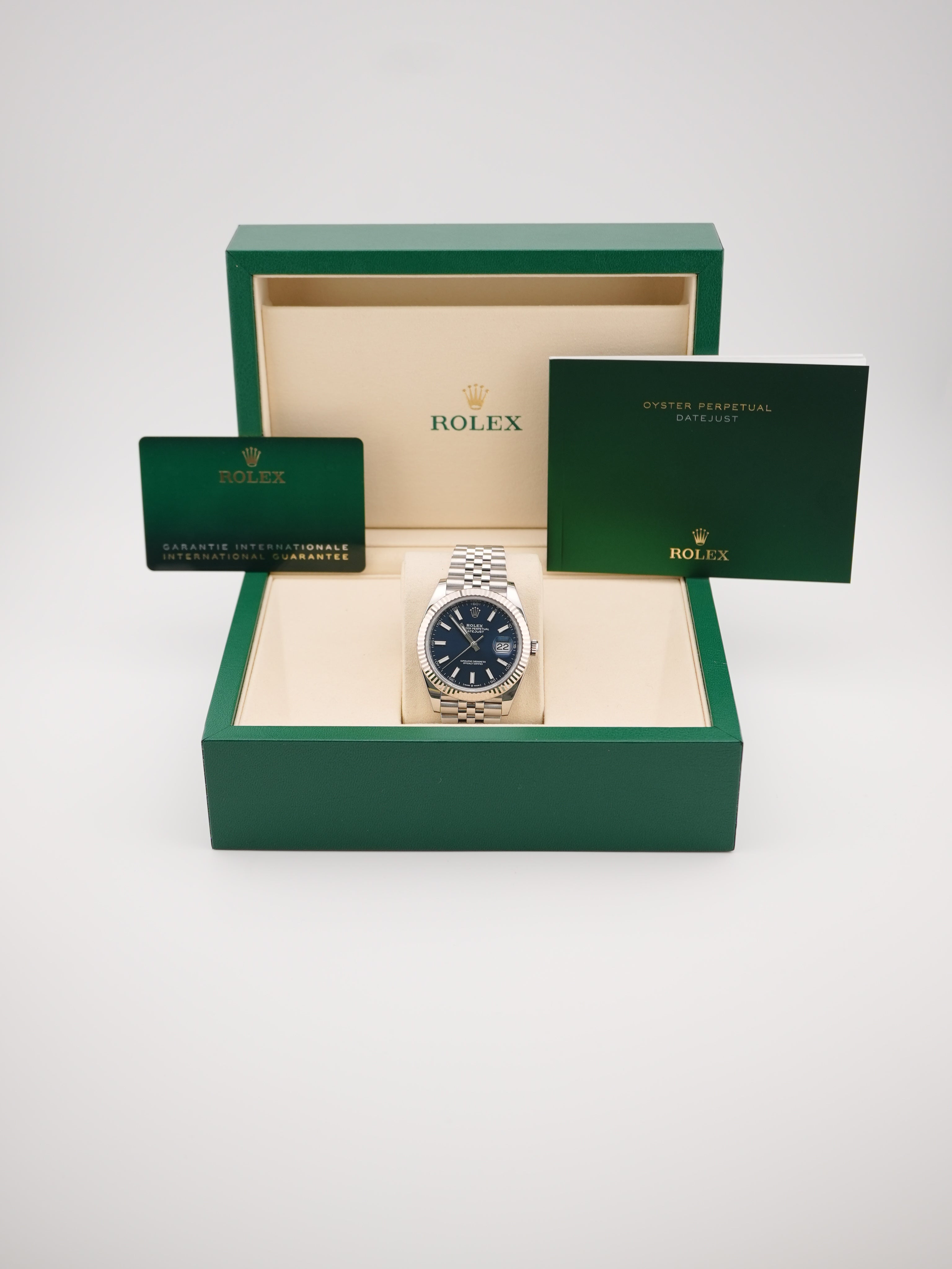 Rolex 126334 Datejust 41 mm Fluted Bezel Blue Index Dial Jubilee Bracelet Box and Papers 2025