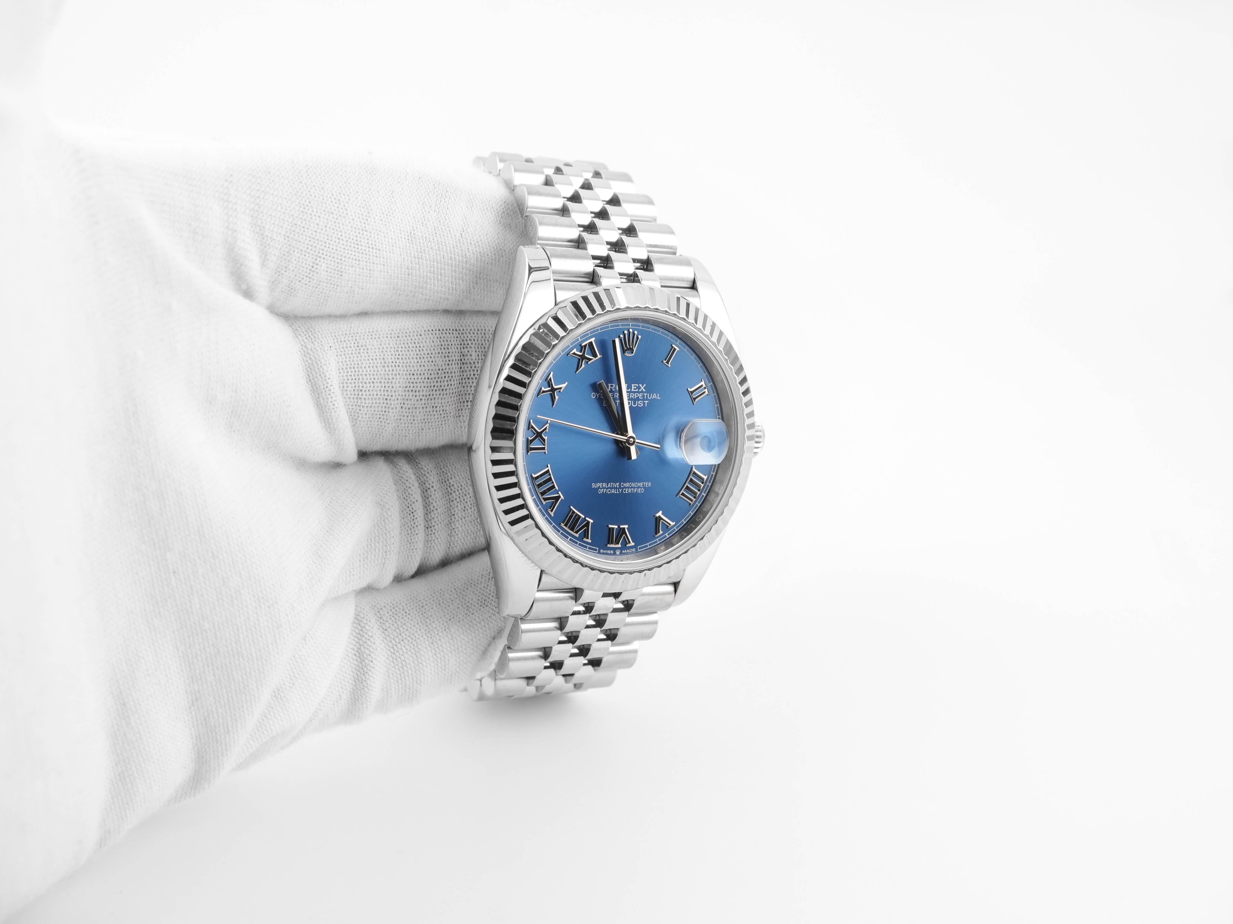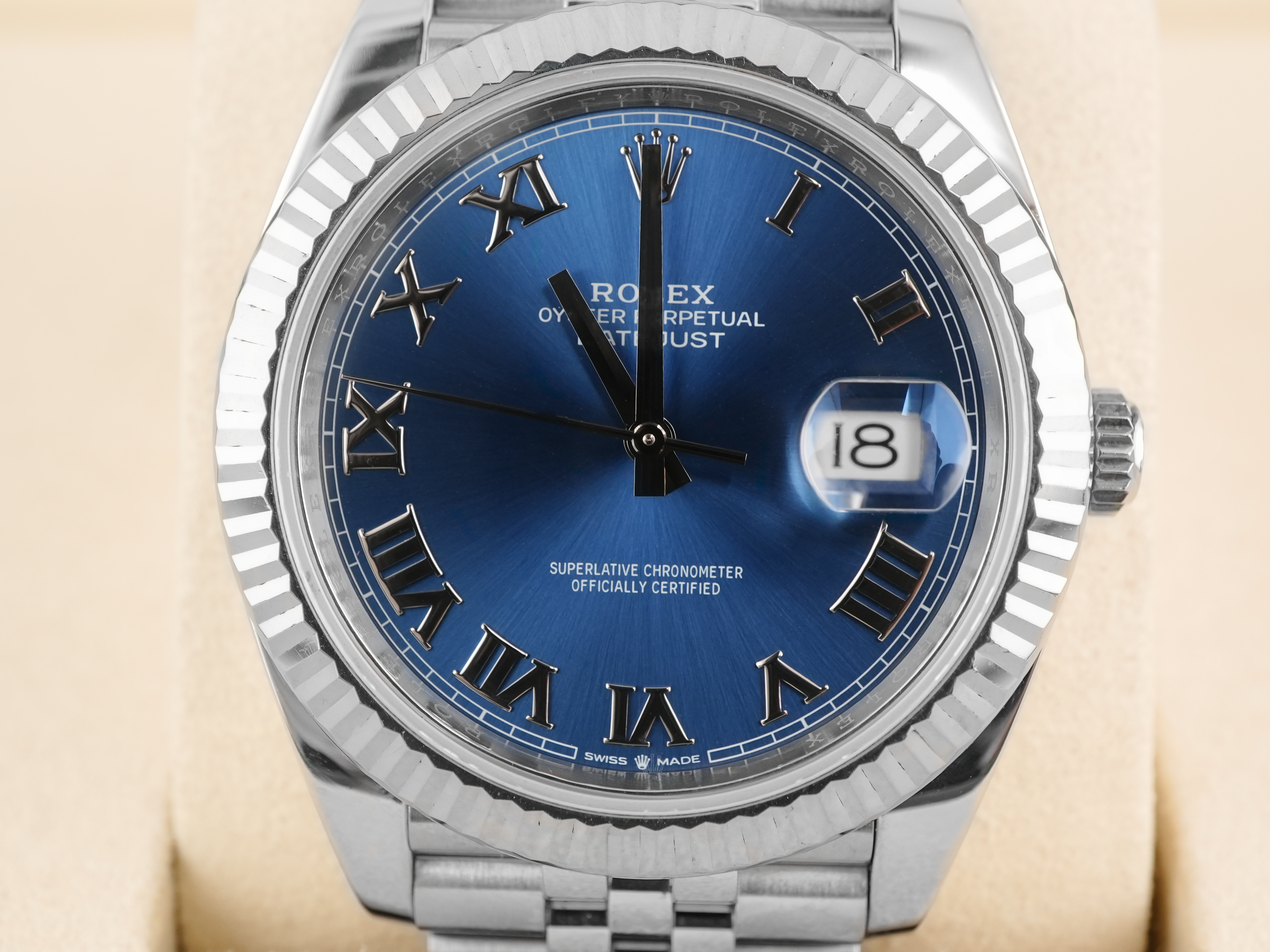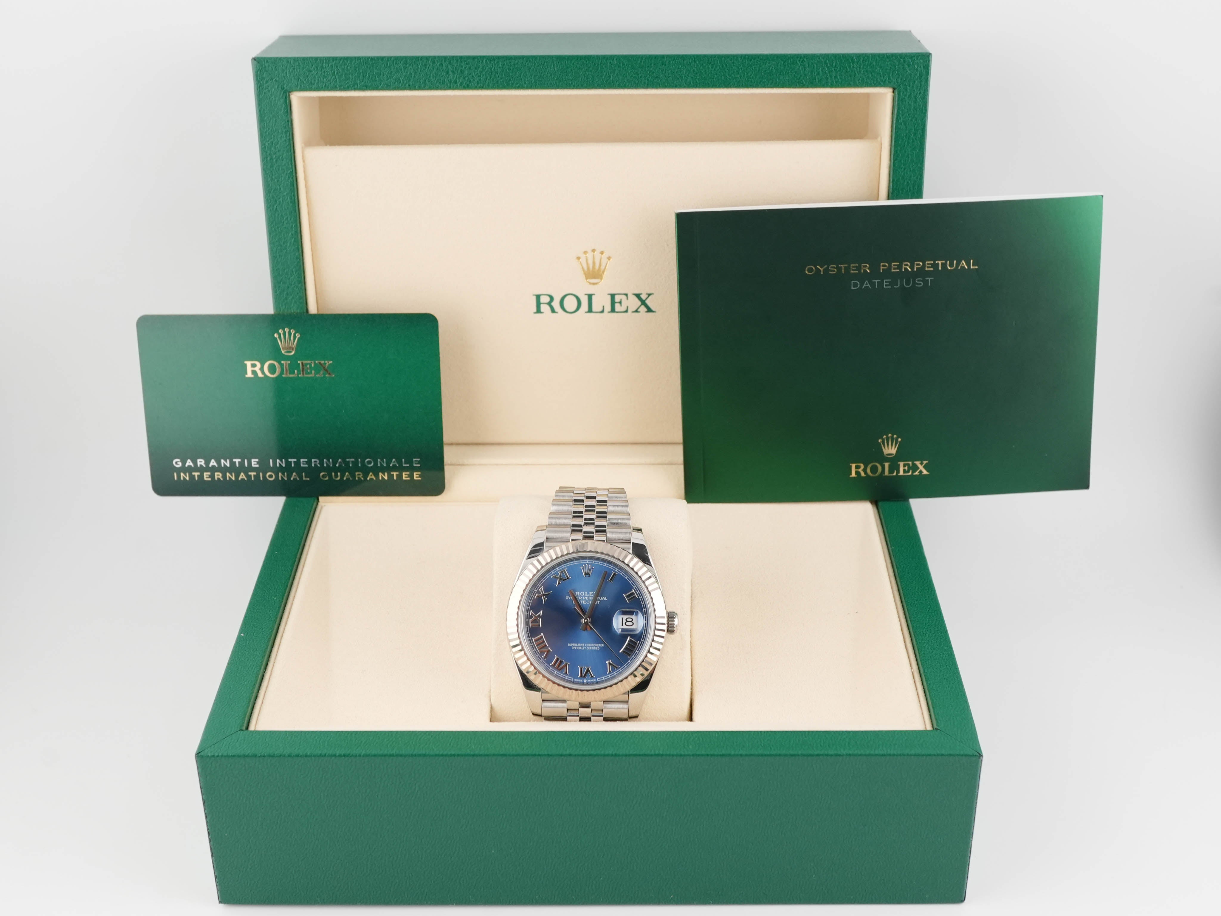Rolex 126334 Datejust 41 mm Fluted Bezel Blue Roman Dial Jubilee Bracelet Box and Papers 2024