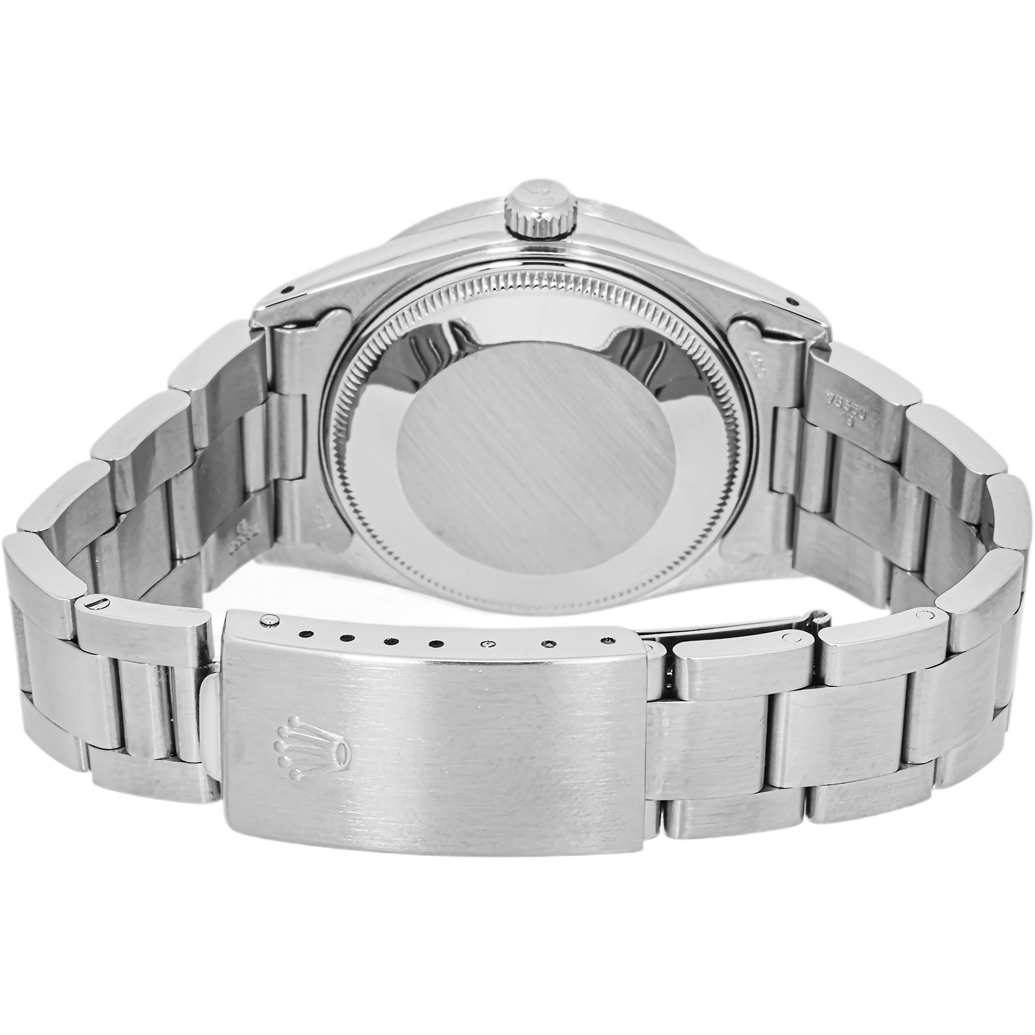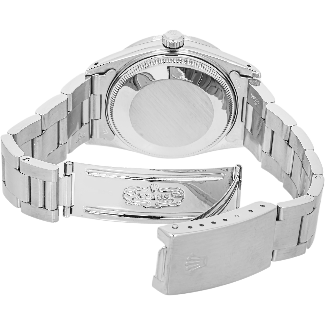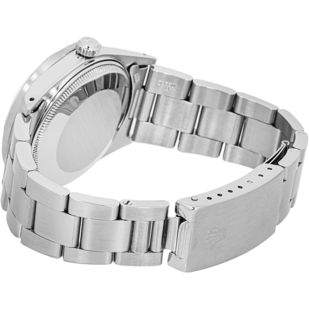 This Rolex Oyster Perpetual Date 34 is a vintage timepiece and is in excellent condition for its age. It has been professionally serviced and shows no scratches. This pre-owned watch includes the watch only, as shown in the photos. It is in stock and ready to ship immediately with free, fully insured shipping. All watches are guaranteed 100% authentic, giving you complete trust and confidence with your purchase.