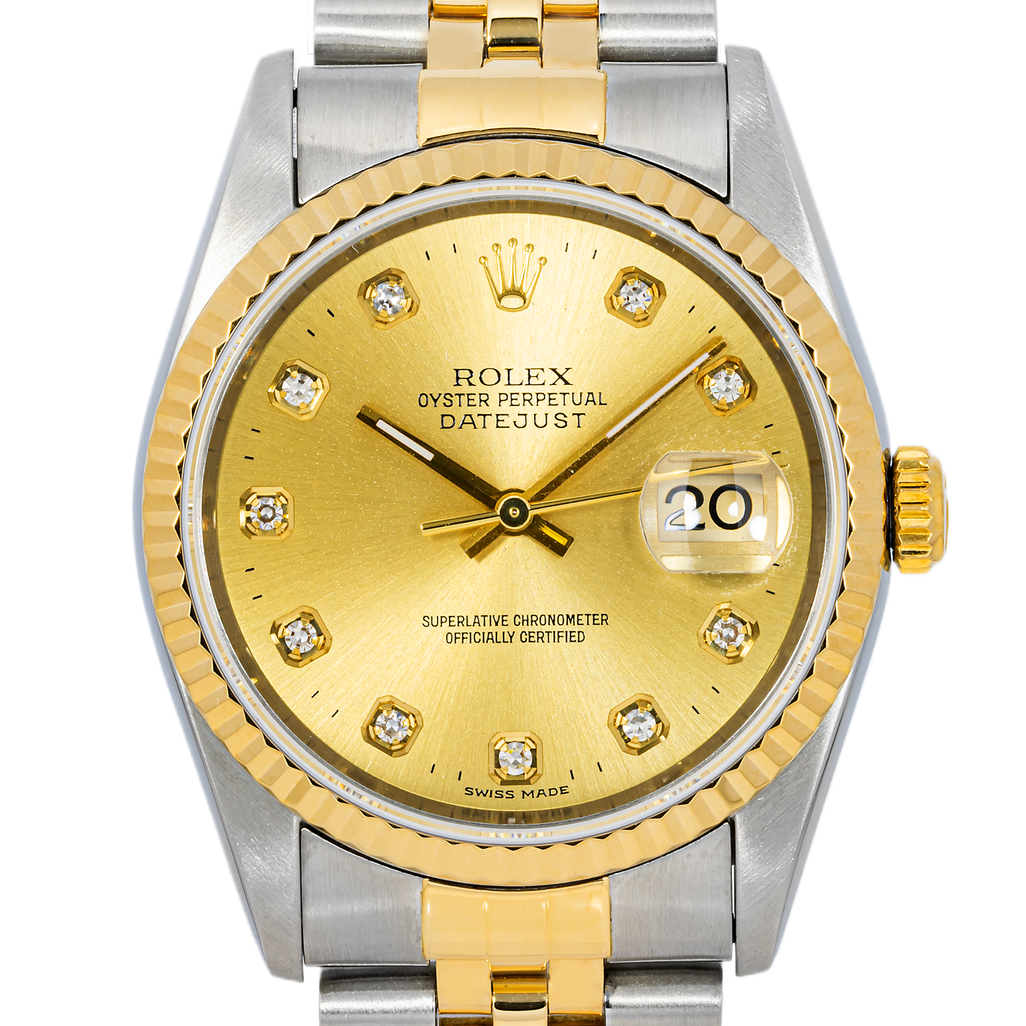 Rolex 16233 Datejust 36 mm Fluted Bezel Champagne Diamond Dial Jubilee Bracelet Box 1994