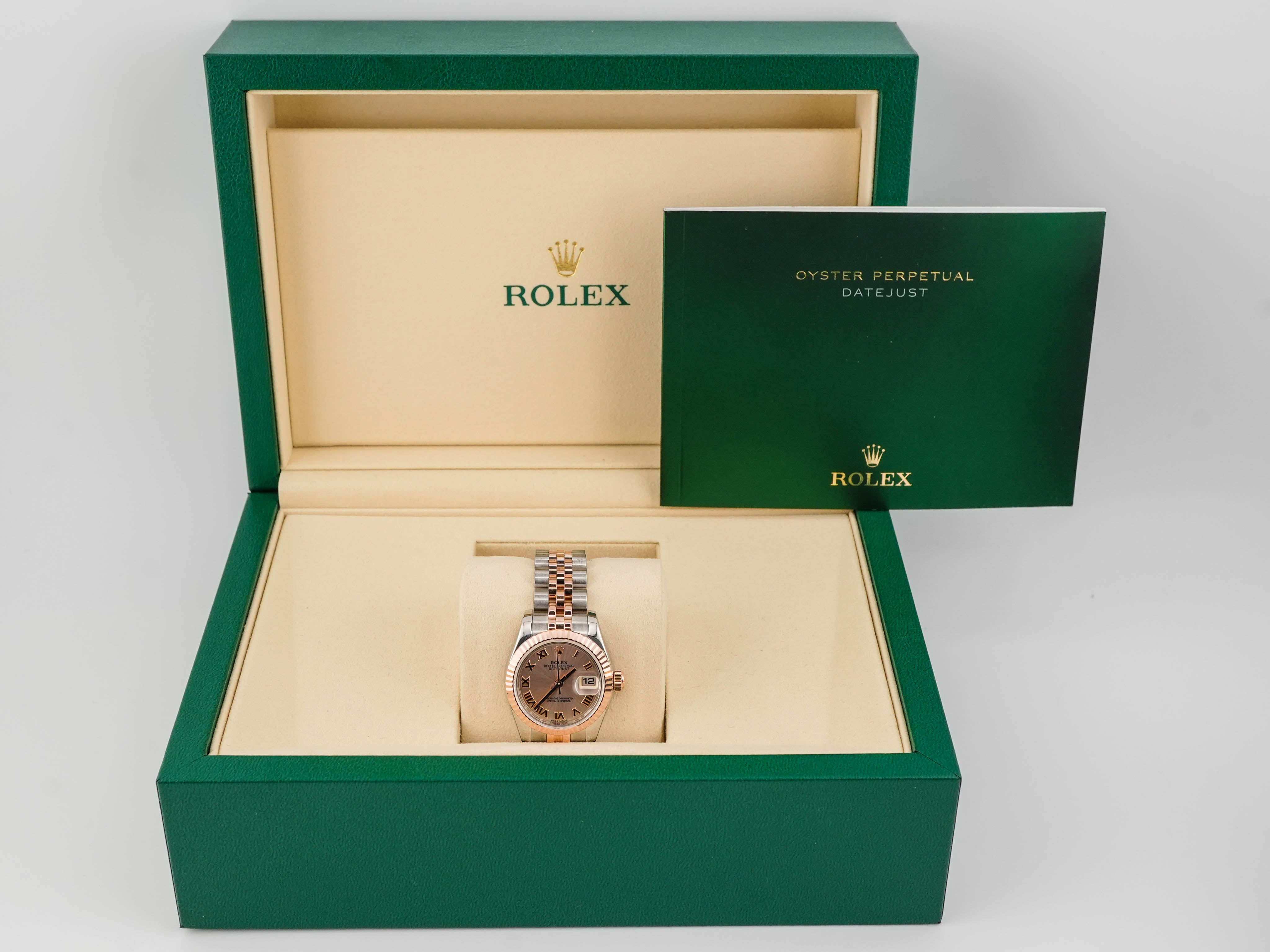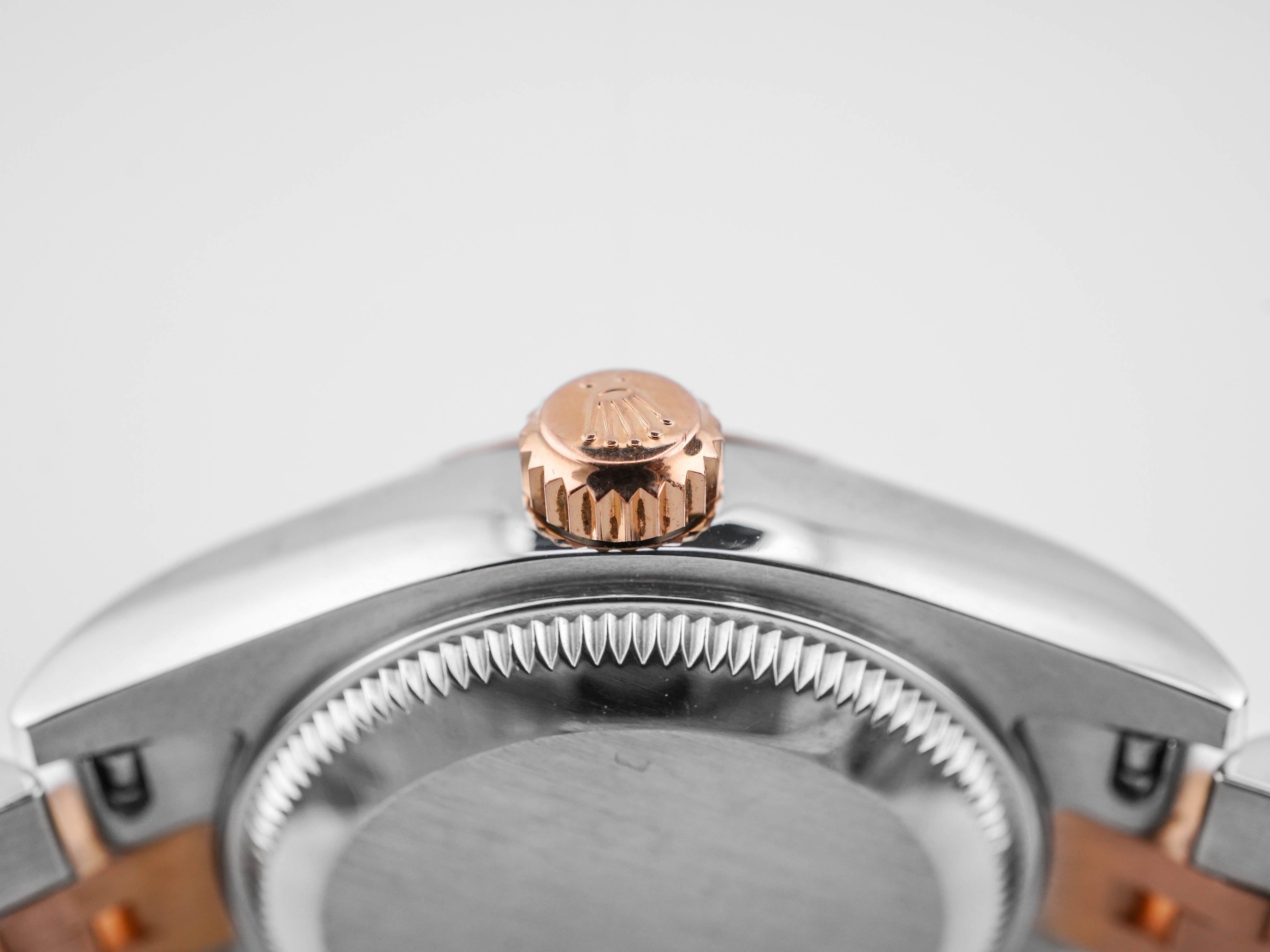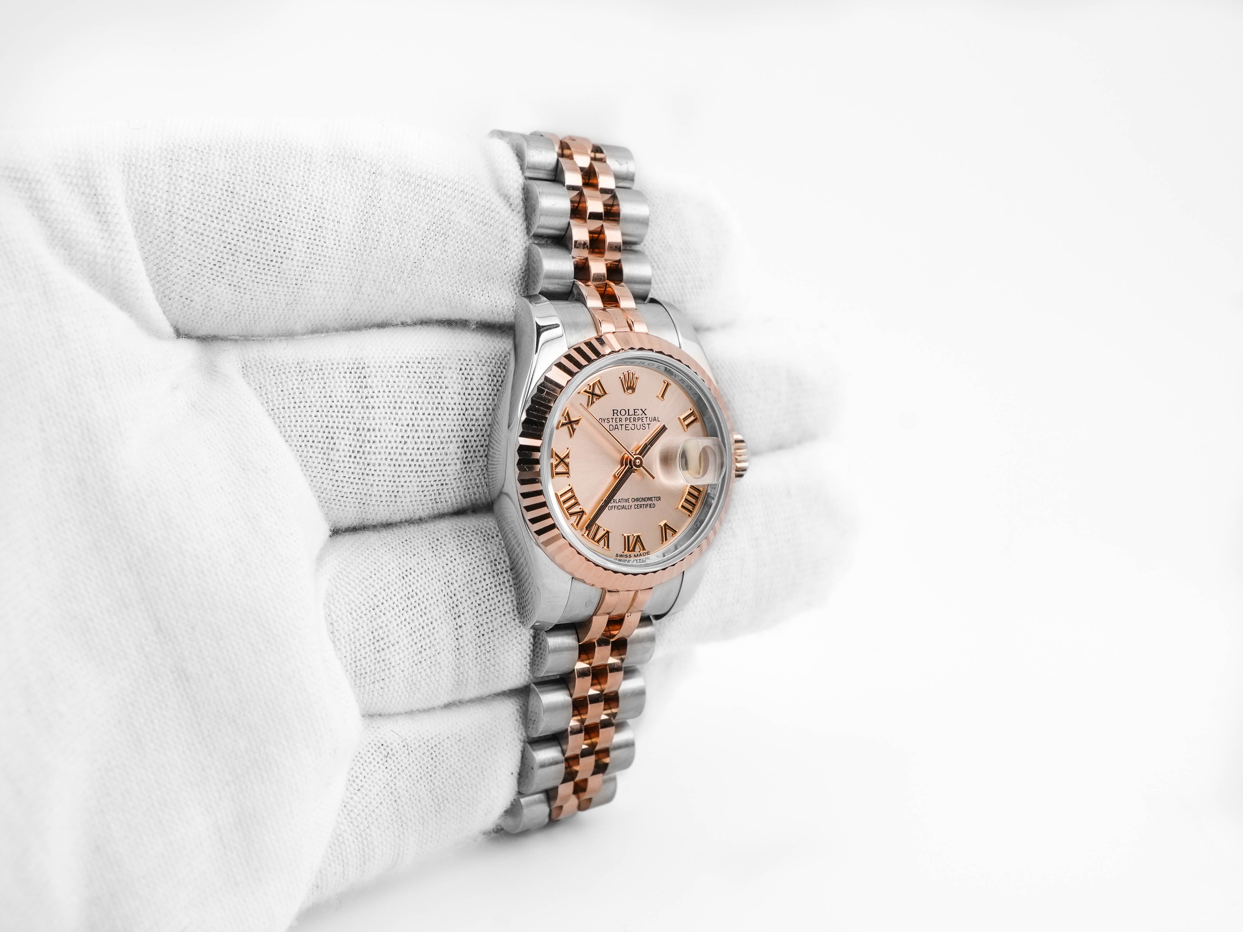 Rolex 179171 Lady-Datejust 26 mm 18k Rose Gold Fluted Bezel Pink Roman Dial Jubilee Bracelet 2015