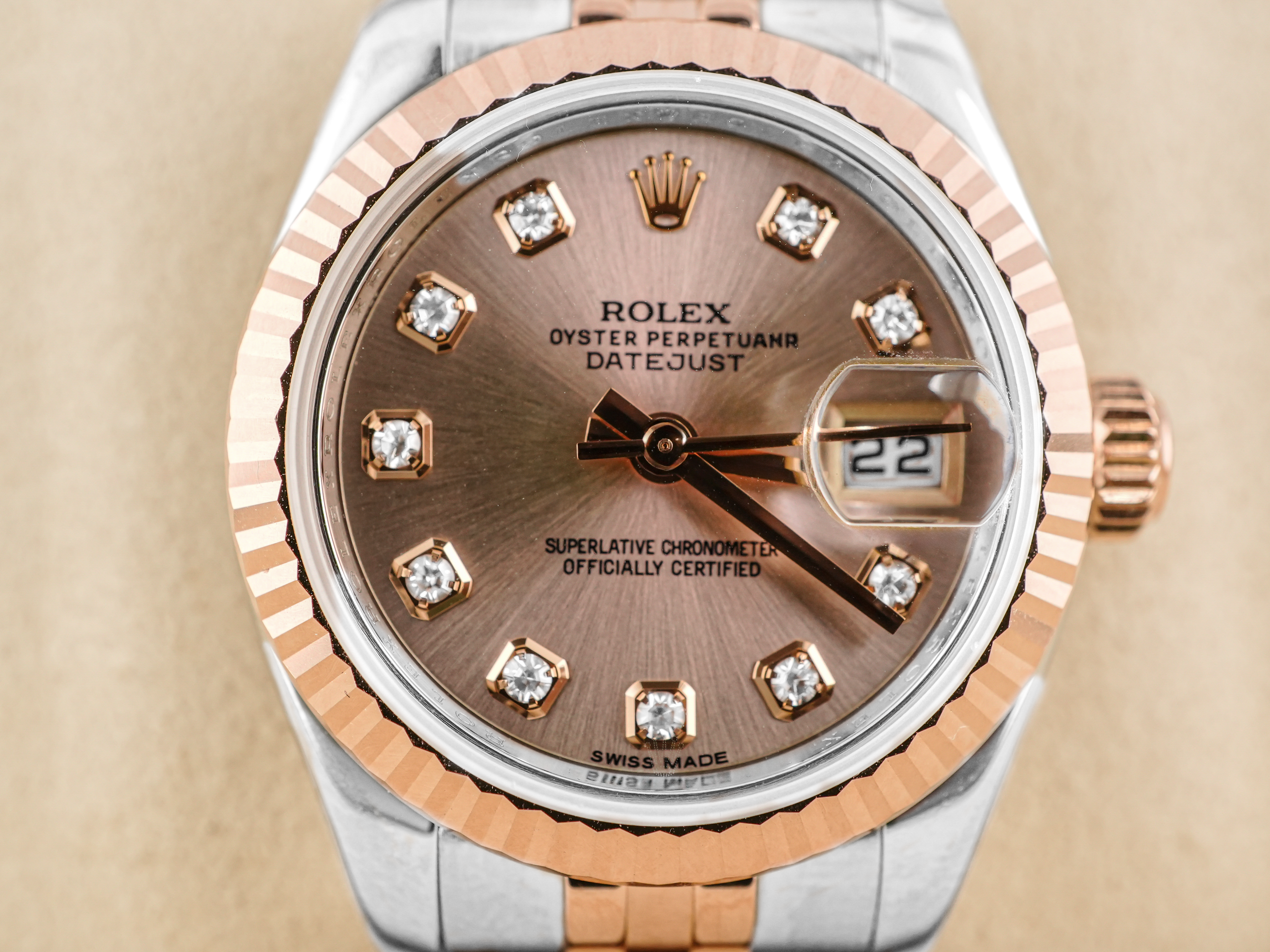 • Bracelet: 18K Rose Gold / OysterSteel Stainless Steel Jubilee Bracelet