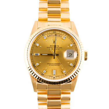 Rolex 18238 Day-Date 36 mm Champagne Diamond Dial President Bracelet Box and Papers 1995