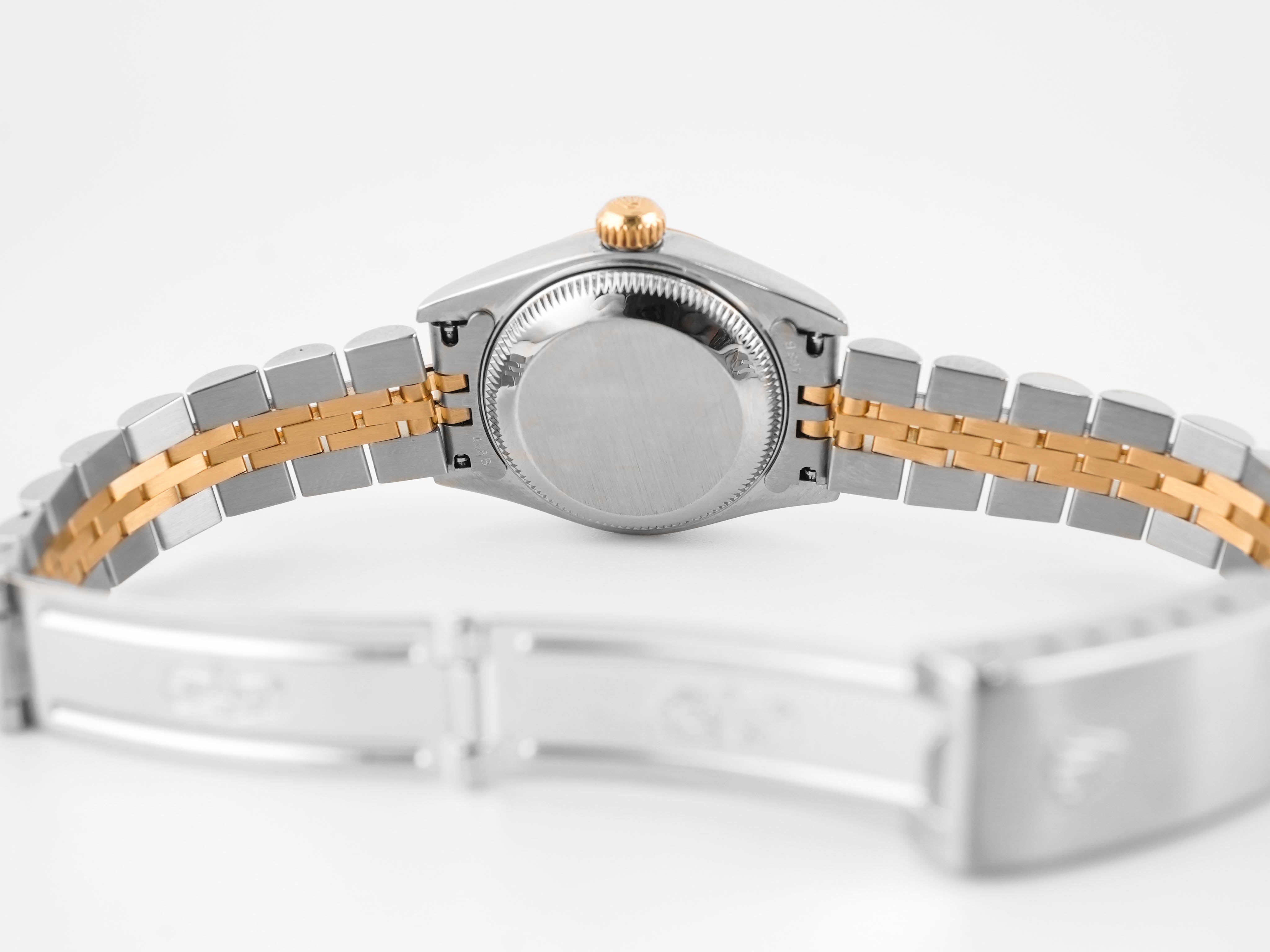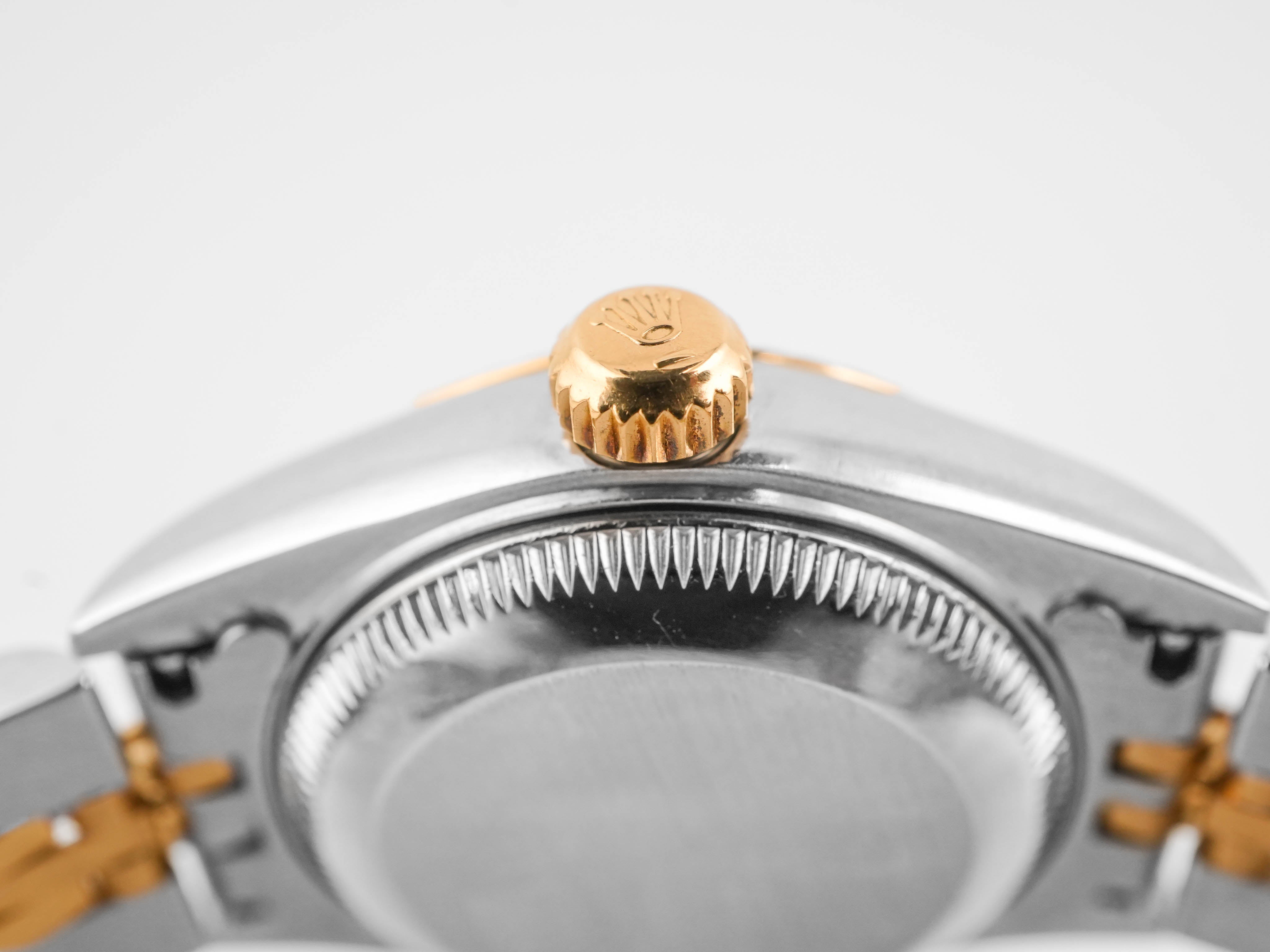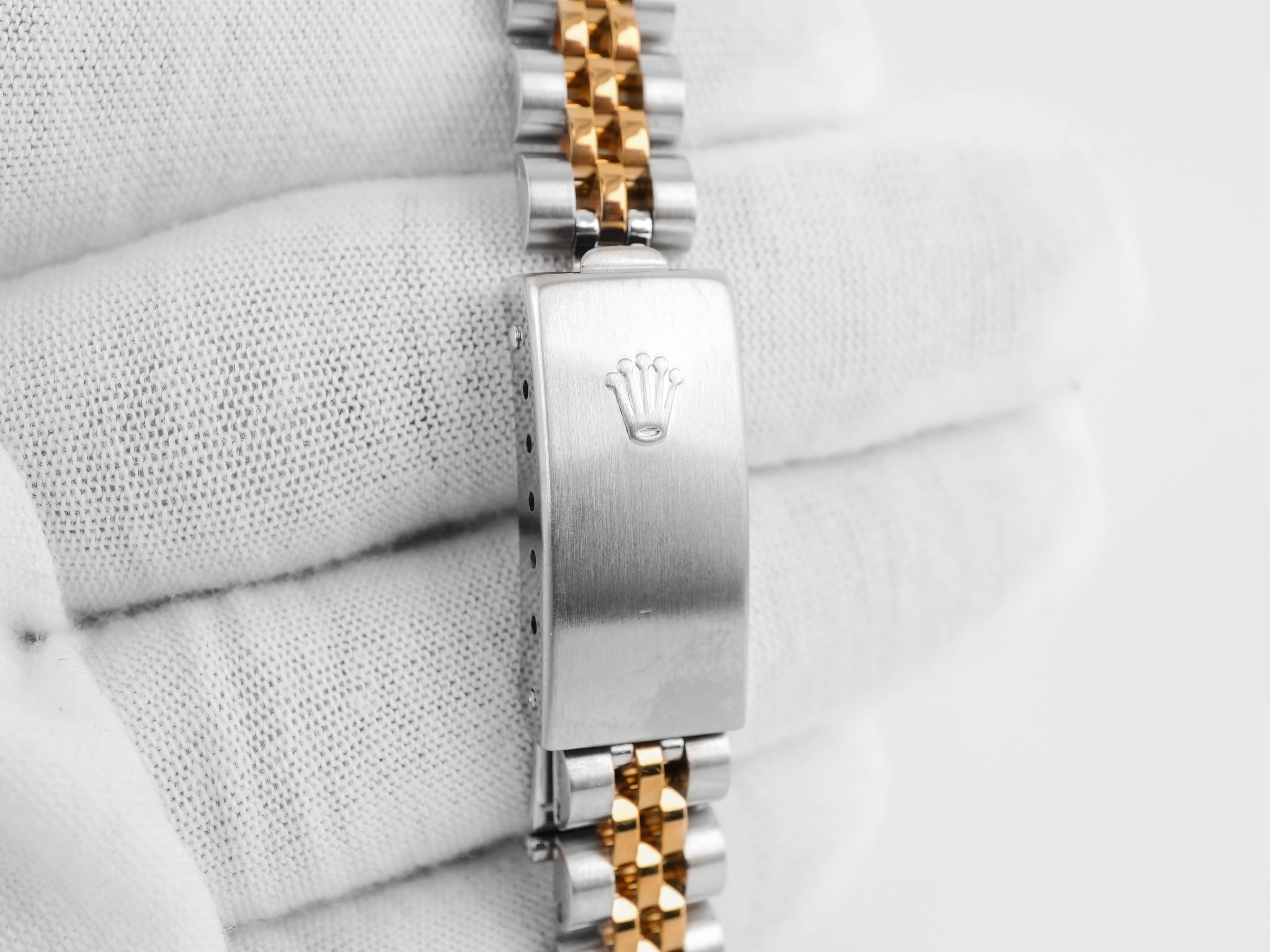 Discover timeless elegance with this exceptional Rolex 69173 Lady-Datejust from 1999. Featuring a refined 26mm case, this vintage timepiece showcases a sophisticated champagne dial with applied index markers that catch the light beautifully. The iconic Jubilee bracelet, synonymous with luxury and comfort, completes the classic aesthetic. Accompanied by its original box and papers, this well-preserved example represents a significant piece of horological history. A testament to Rolex's unwavering commitment to precision and craftsmanship, this Lady-Datejust remains a coveted collector's item and a versatile companion for any occasion.