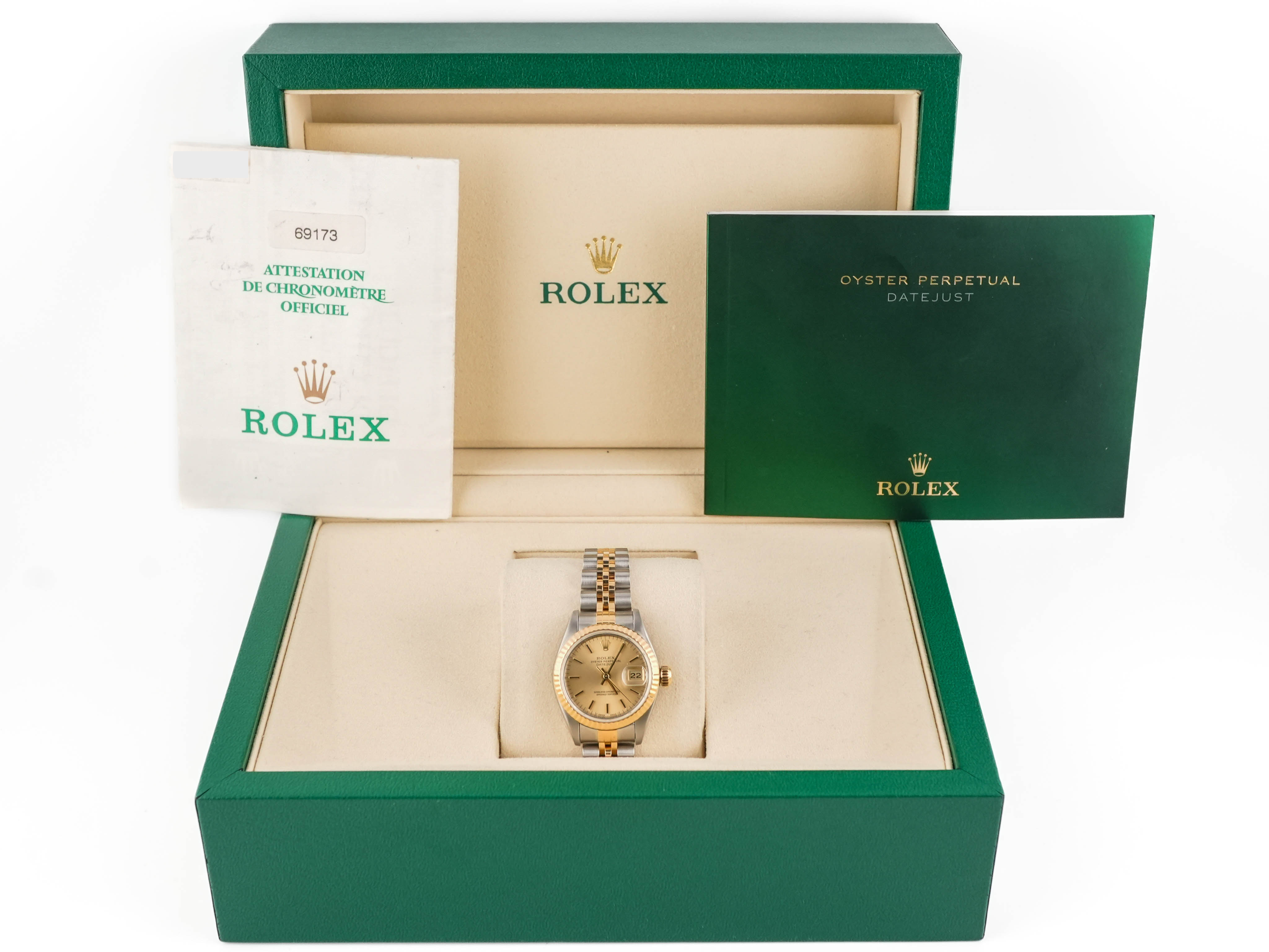Rolex 69173 Lady-Datejust 26 mm Champagne Index Dial Jubilee Bracelet Box and Papers 1999