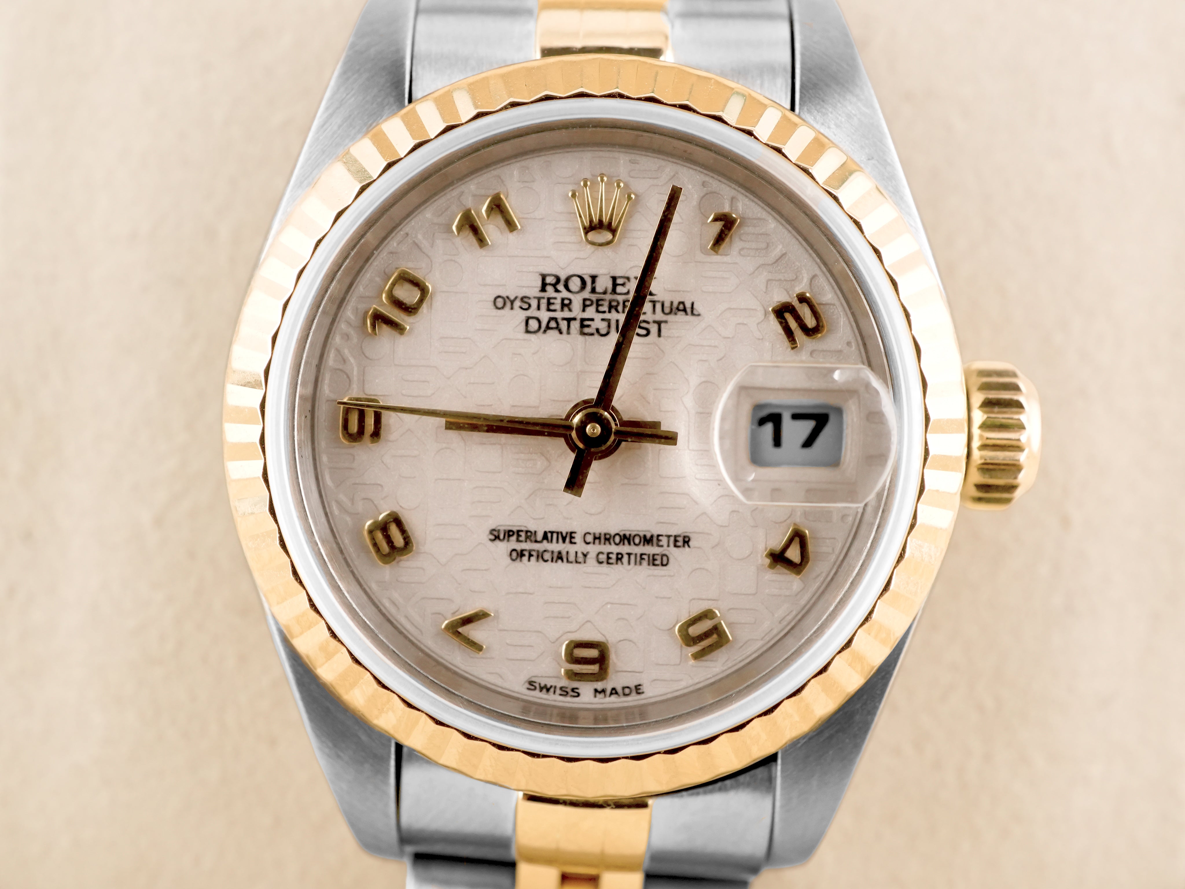 Rolex 69173 Lady-Datejust 26 mm Ivory Arabic Dial Jubilee Bracelet Box and Papers 1999
