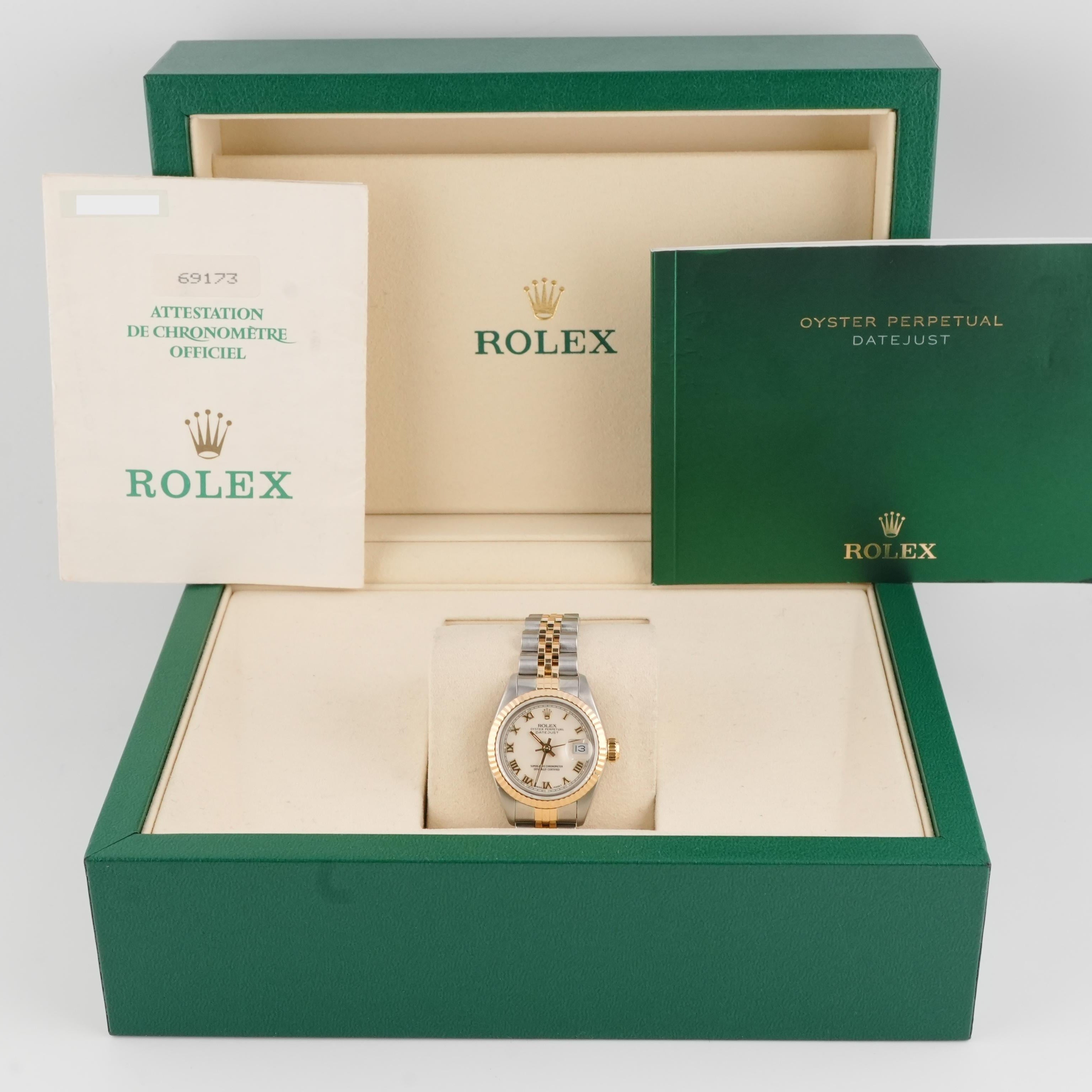 Rolex 69173 Lady-Datejust 26 mm Linen Roman Dial Jubilee Bracelet Box and Papers 1990