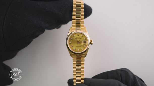 Rolex 69178 Lady-Datejust 26 mm Champagne Diamond Dial President Bracelet Box 1988